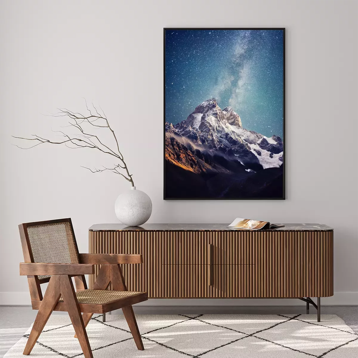 Poster: Foto eines Berges vor dem Hintergrund der Sterne