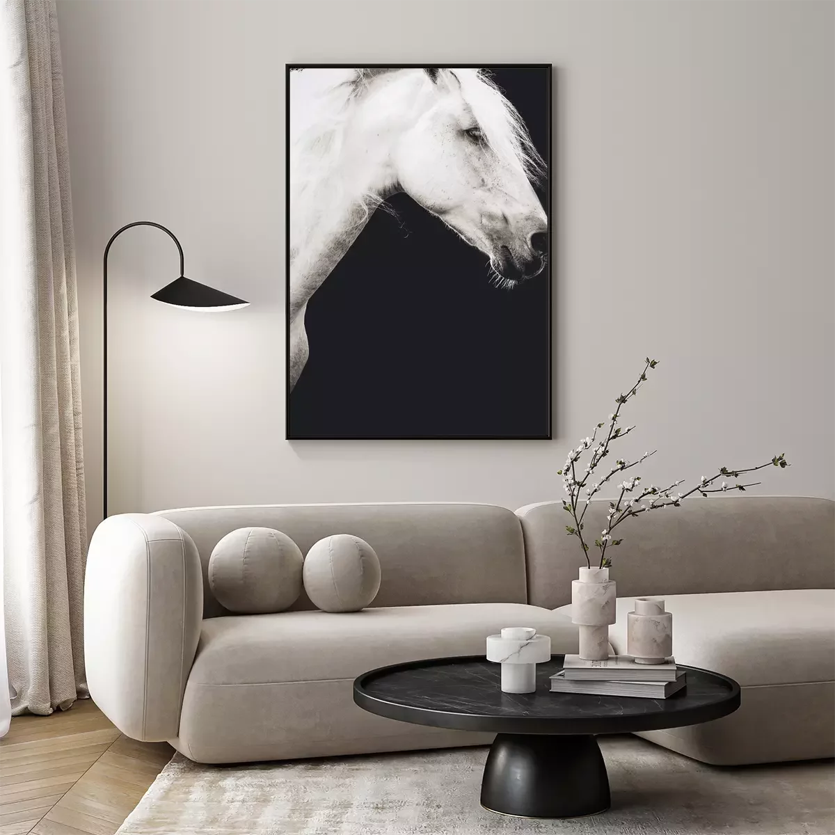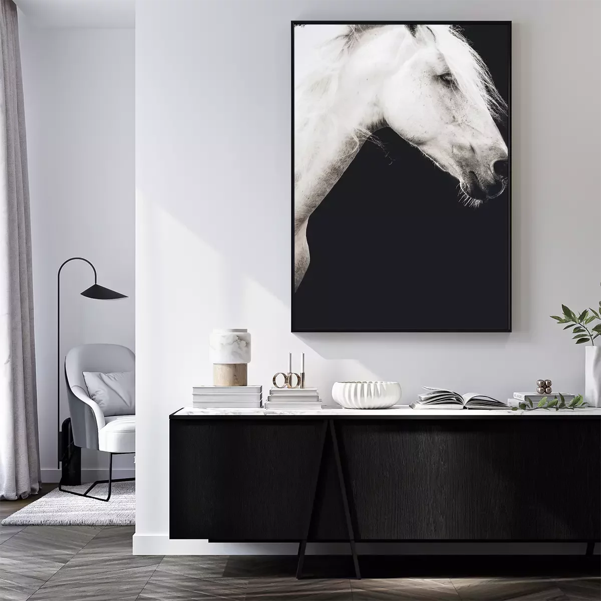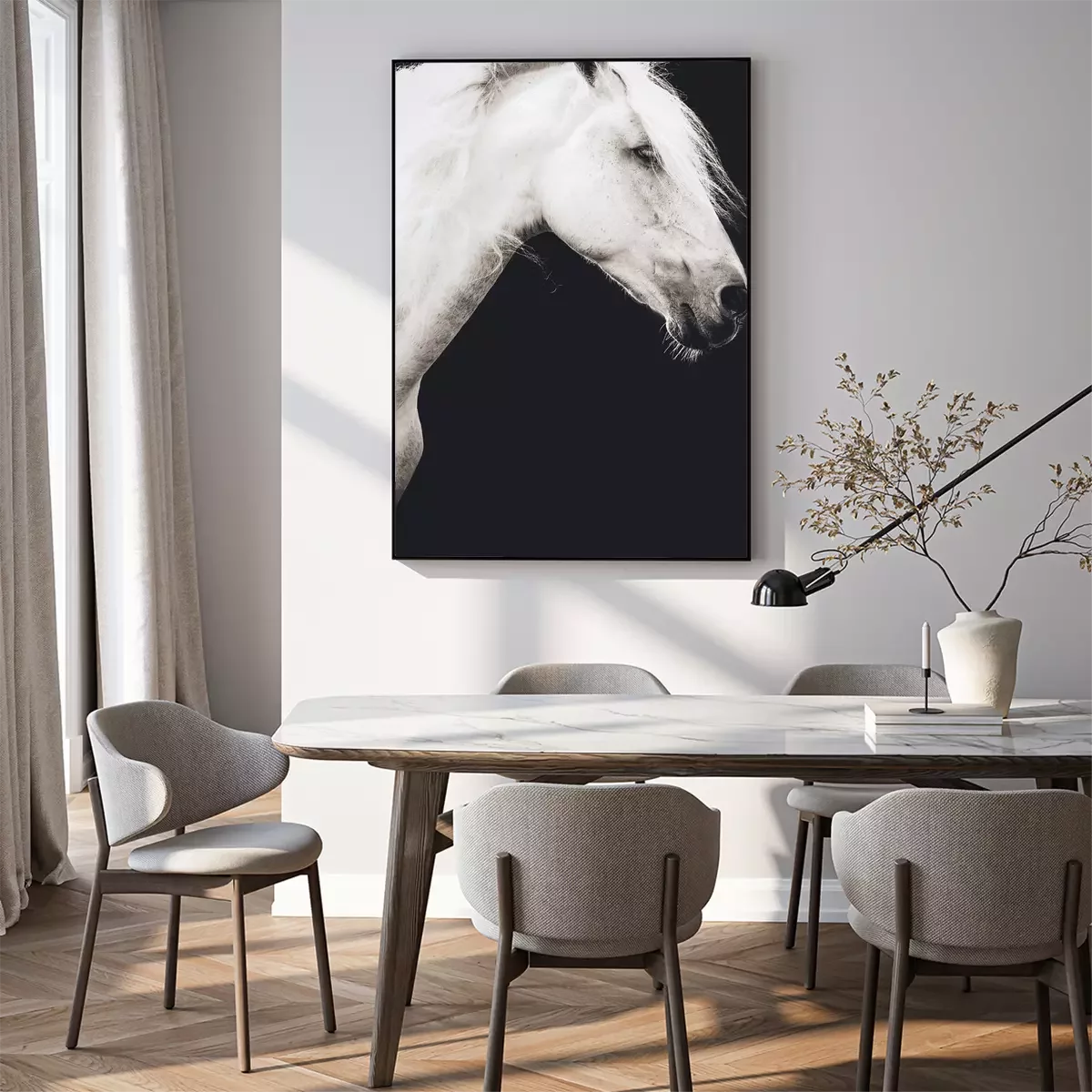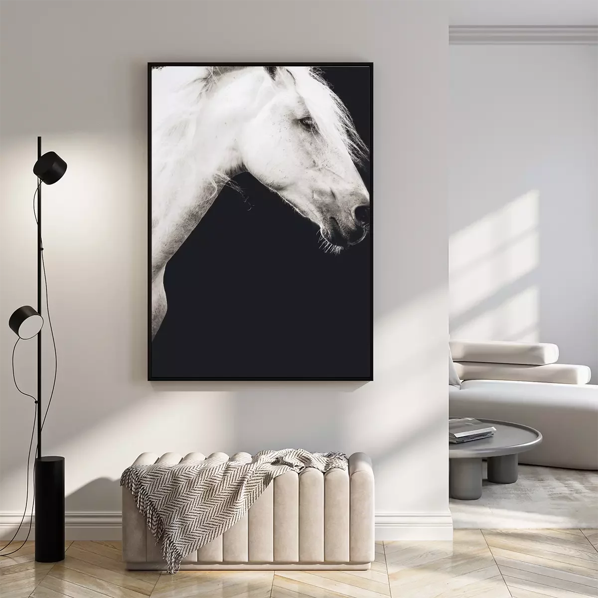 Poster: Foto eines weißen Pferdes