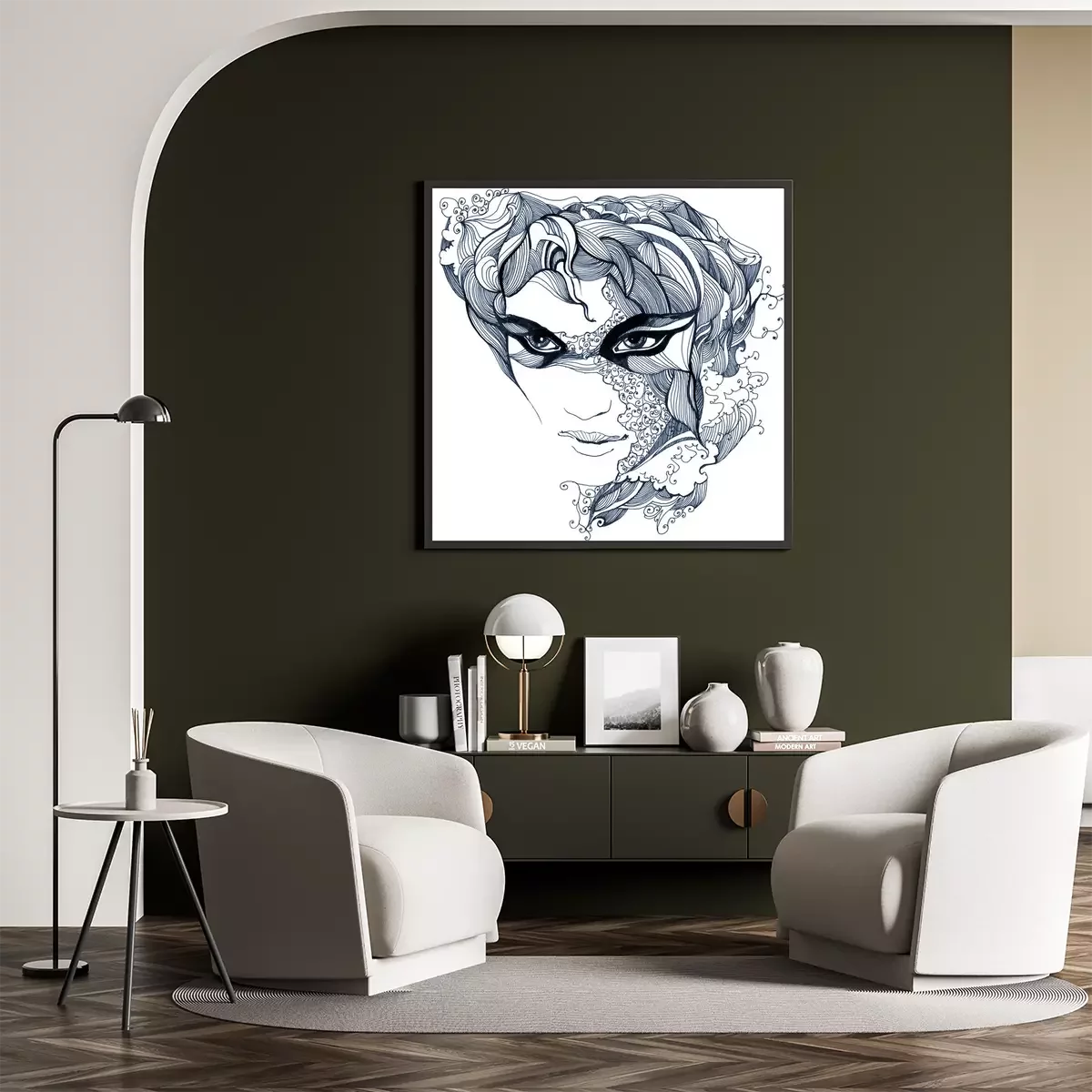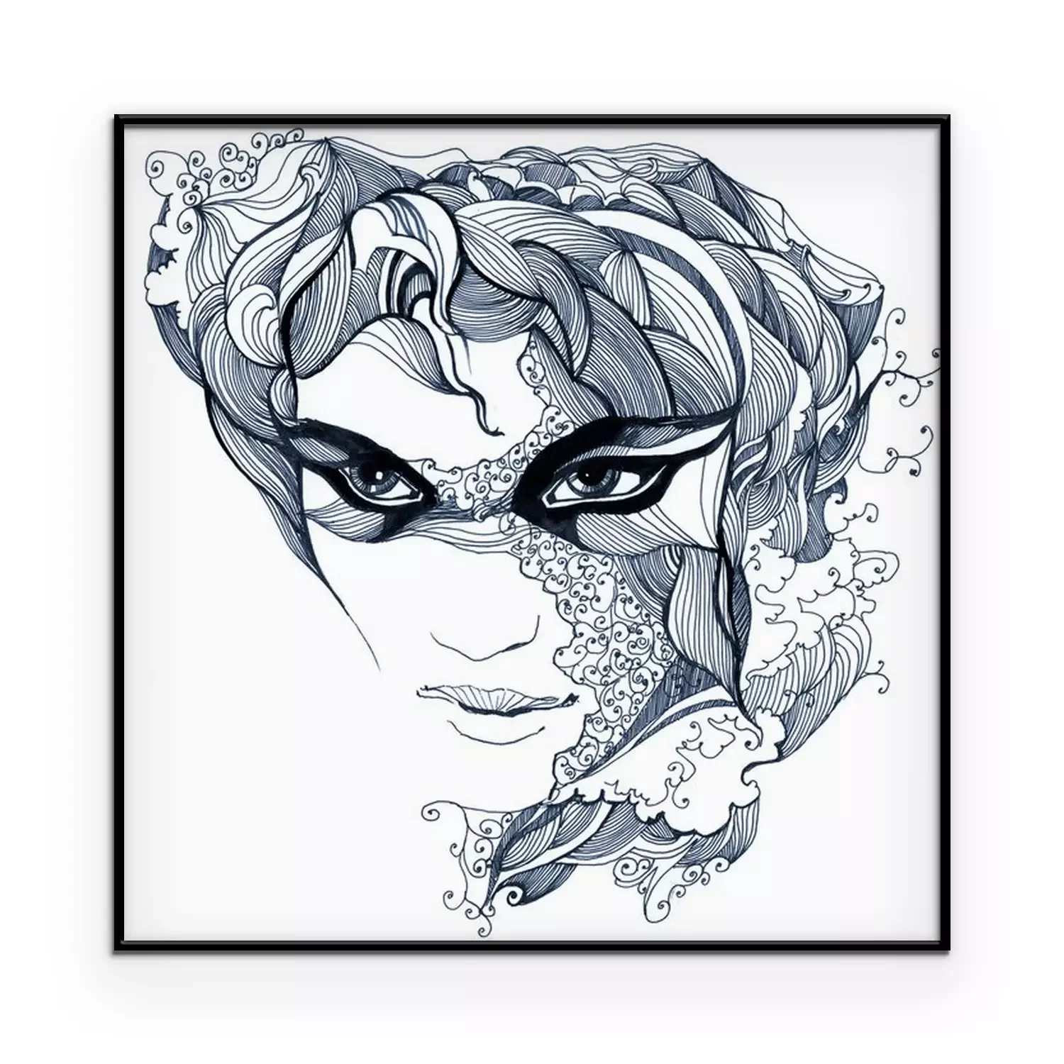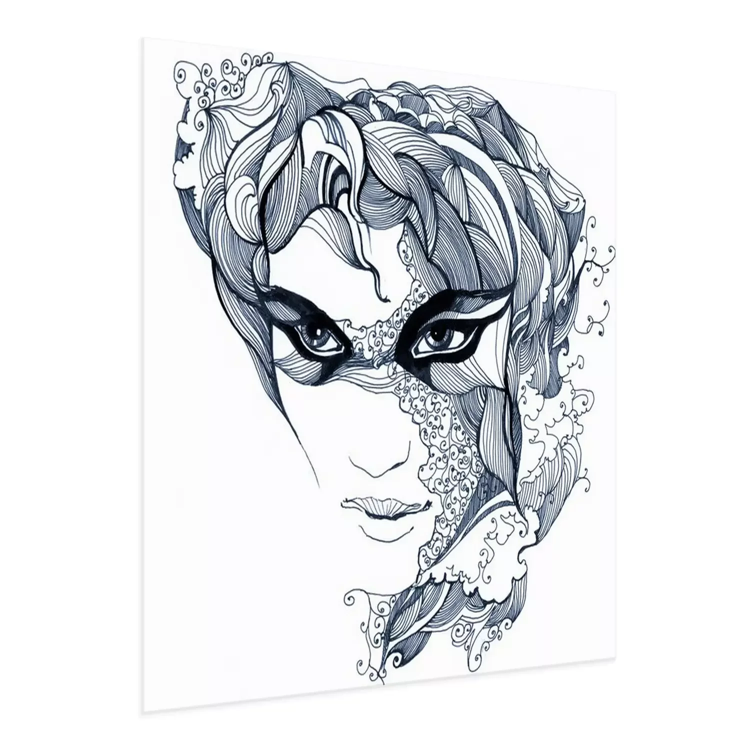 Zeichnung einer Frau mit der abstrakten Maske