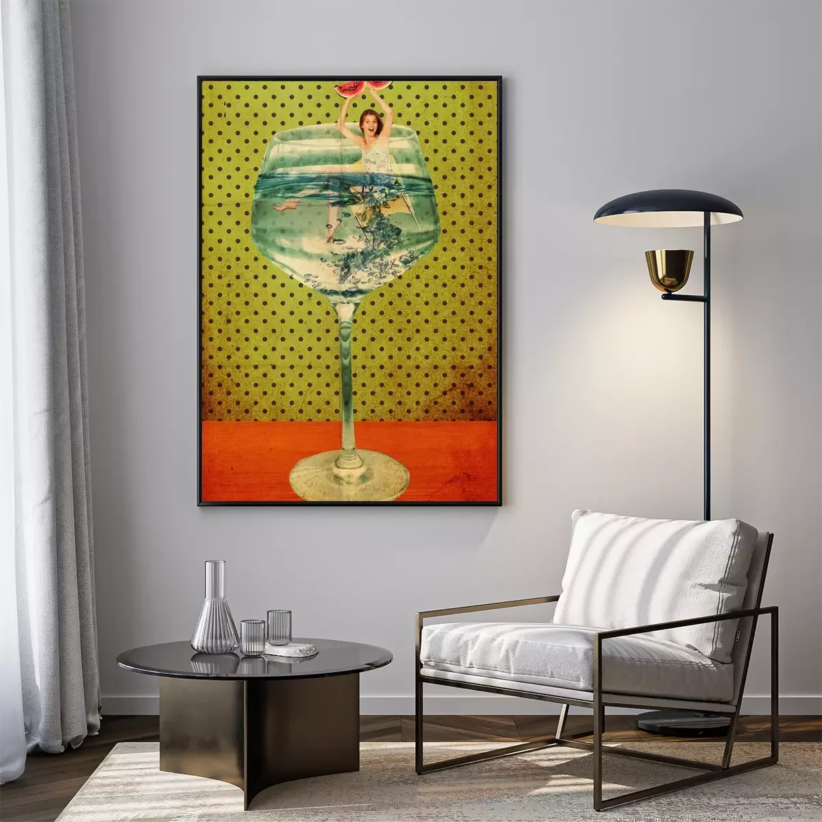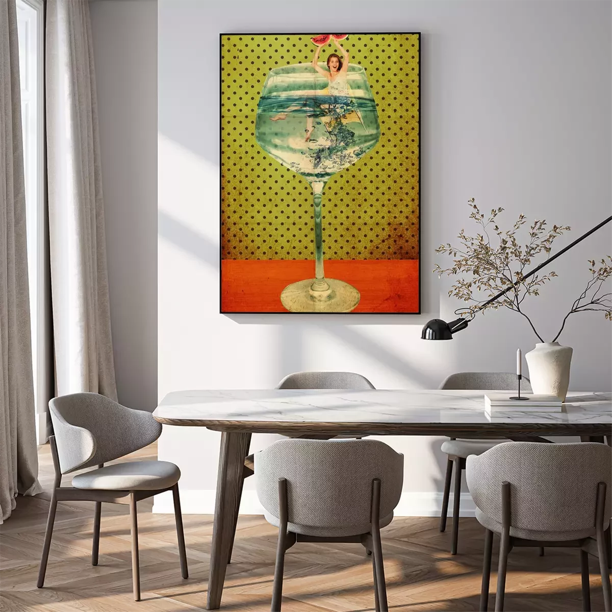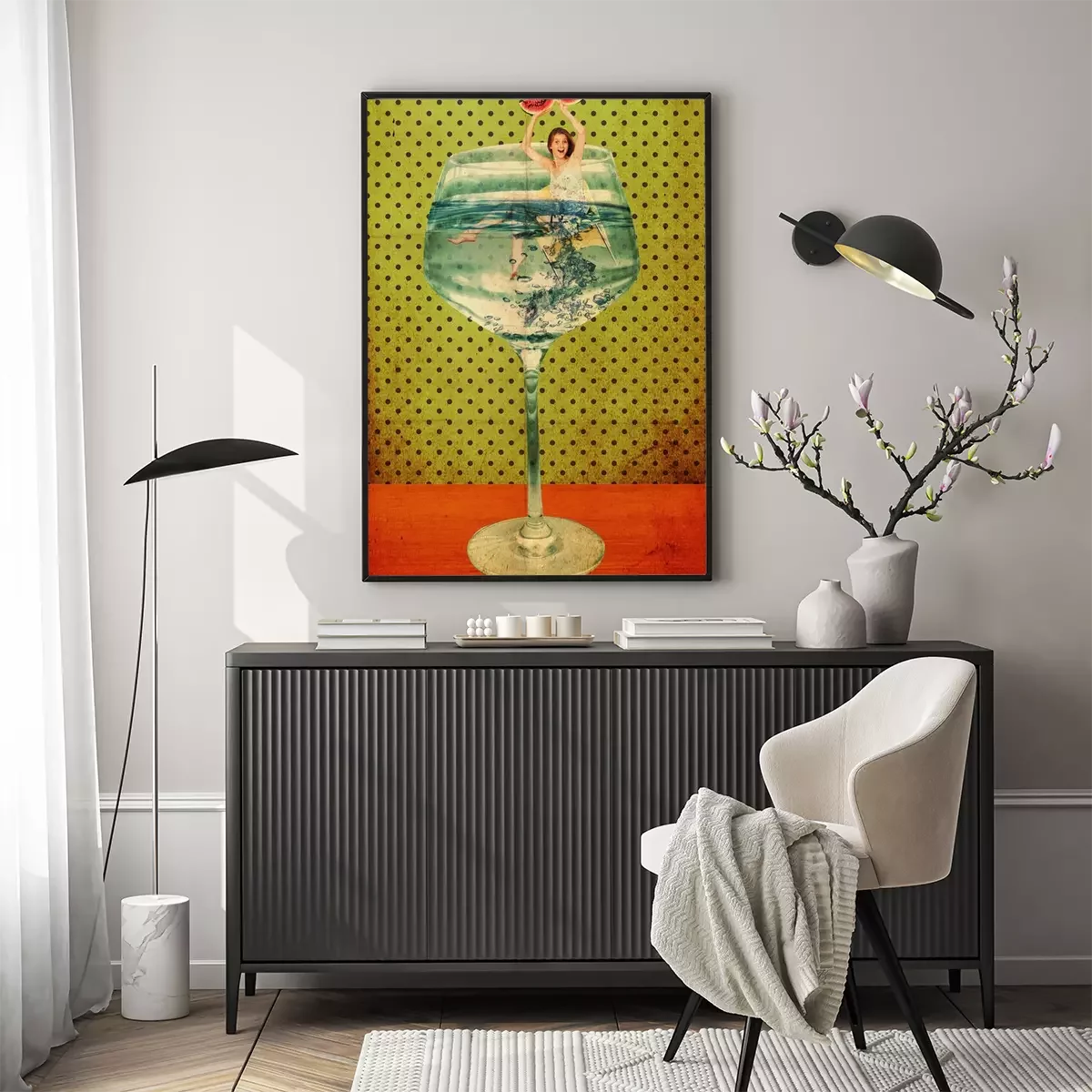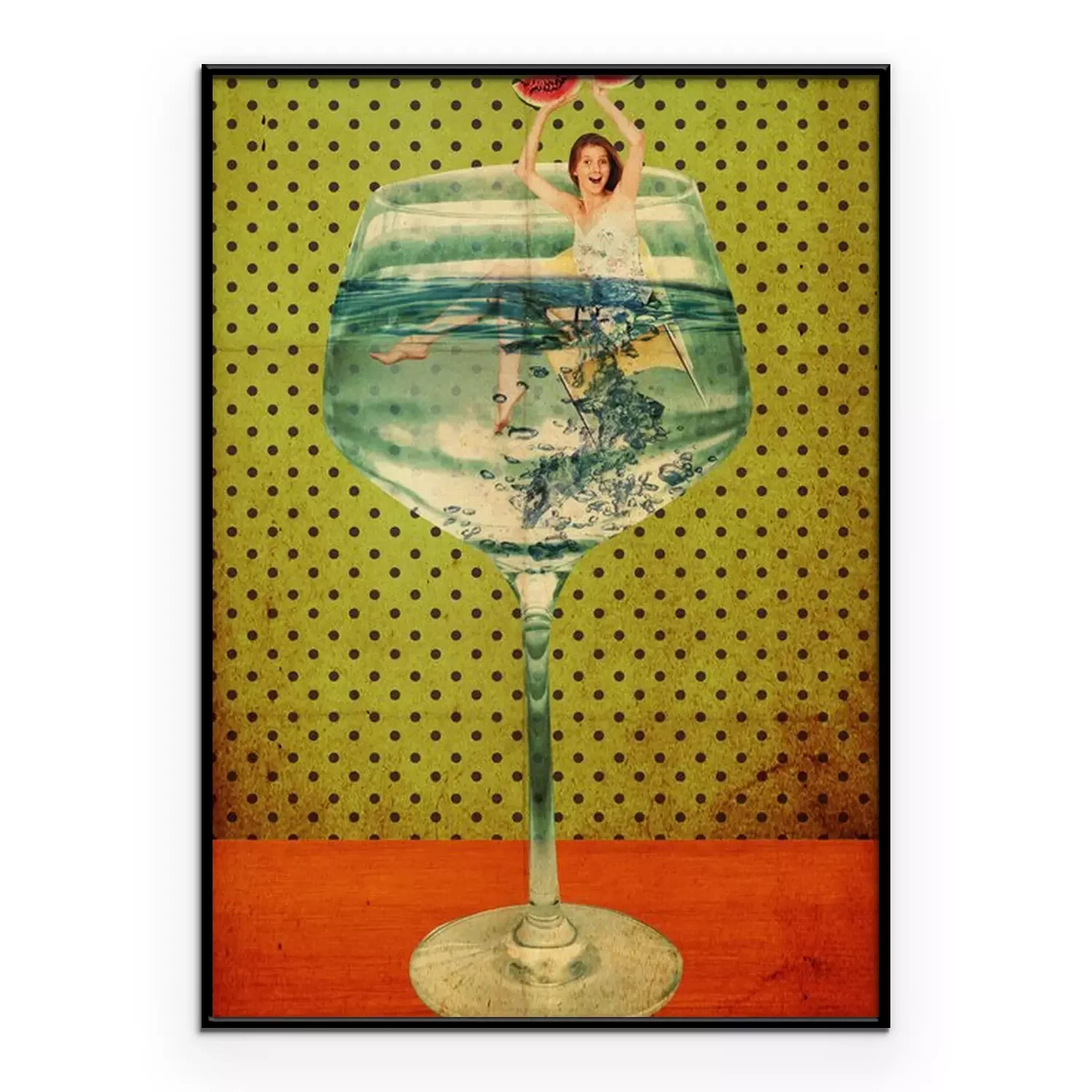 Poster: Frau in einem Glas Wasser auf Retro-Hintergrund