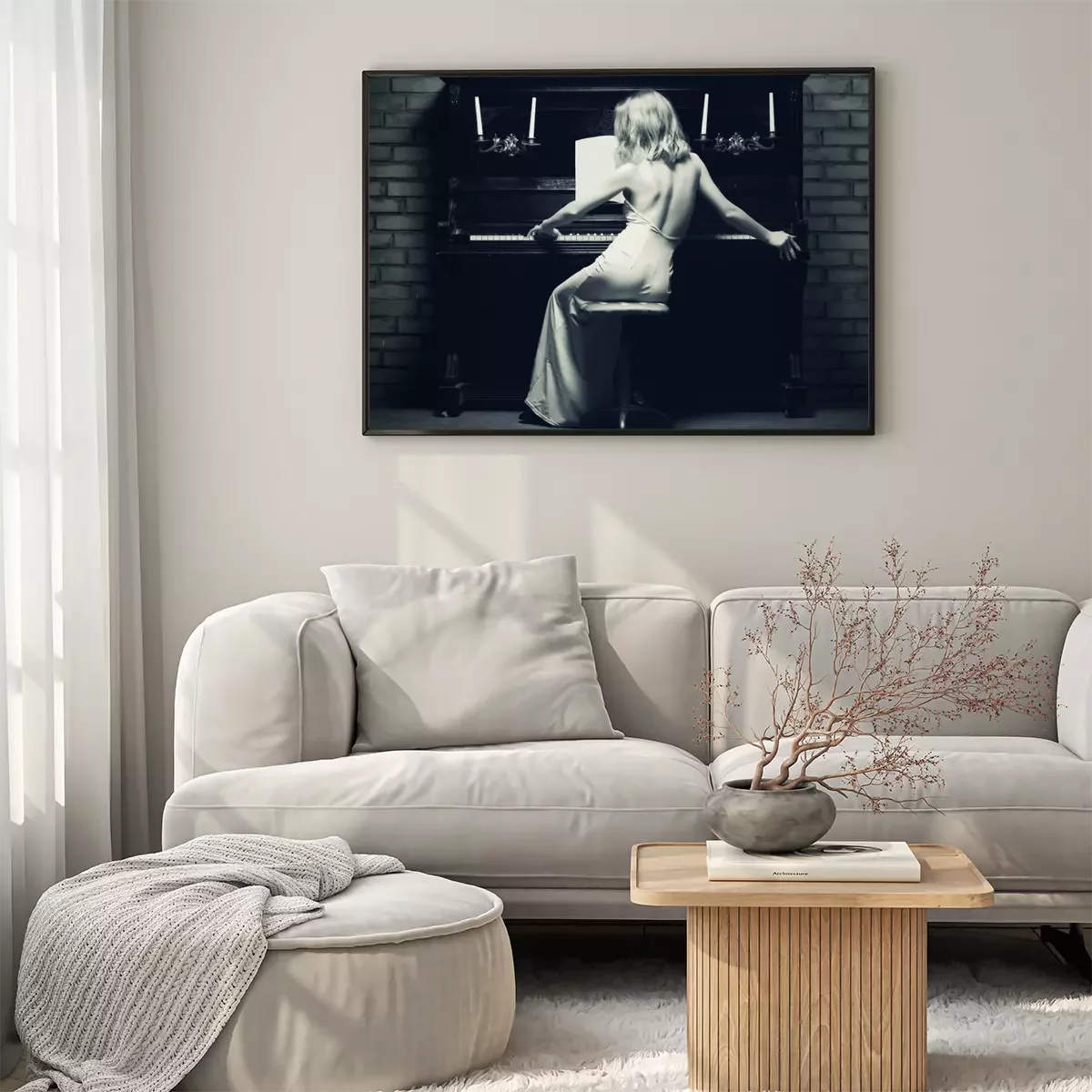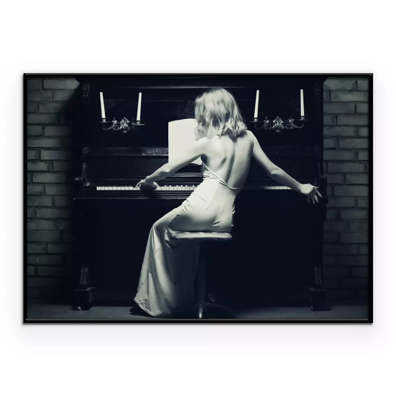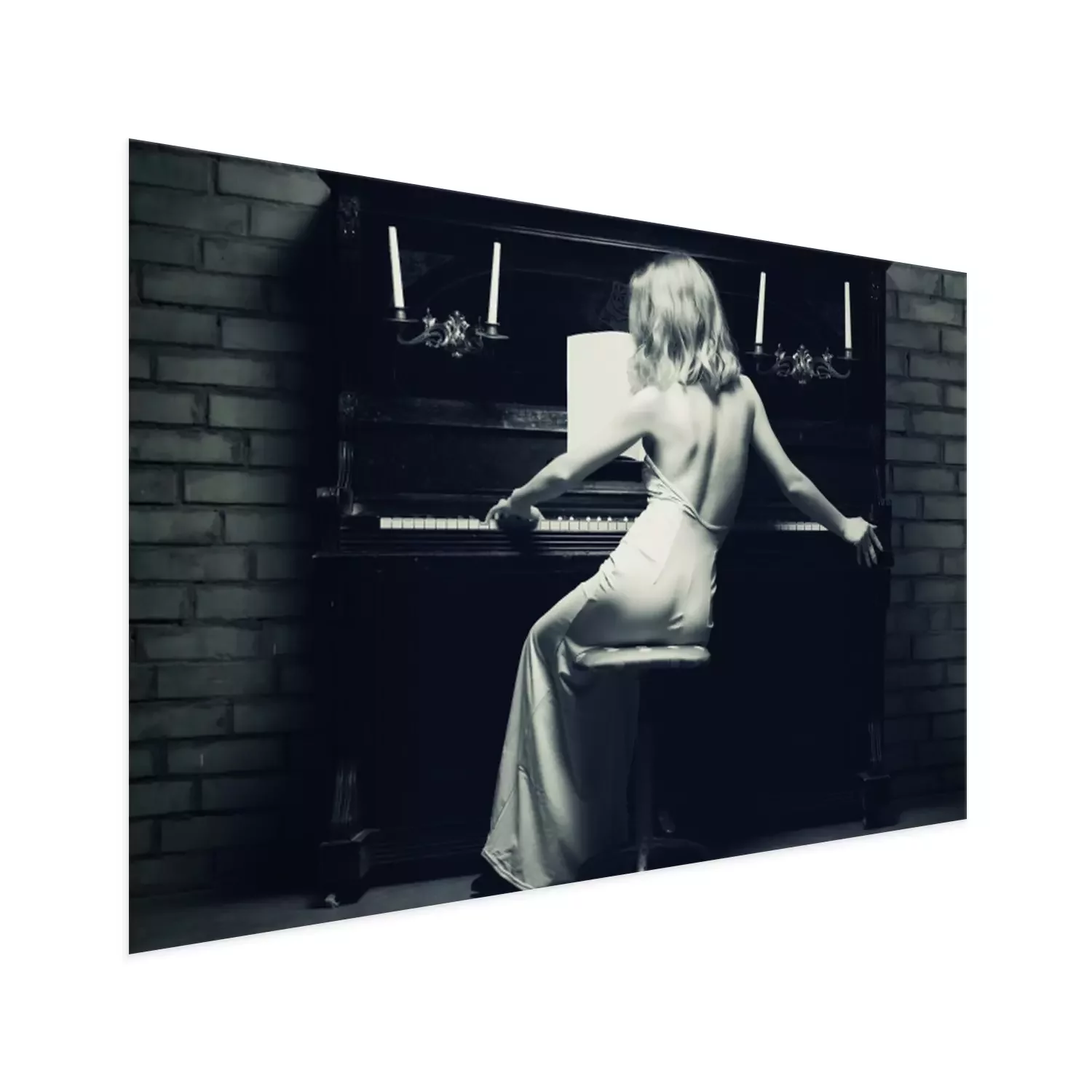 Poster: Frau in einem Kleid am Klavier