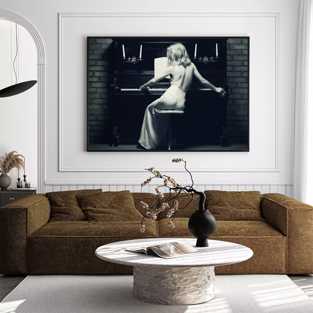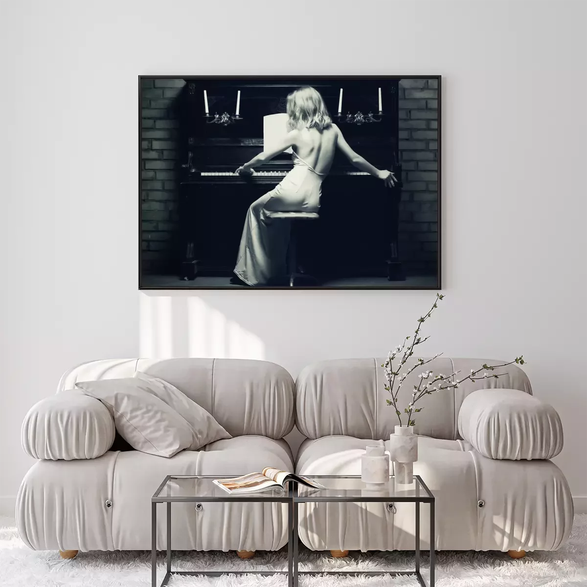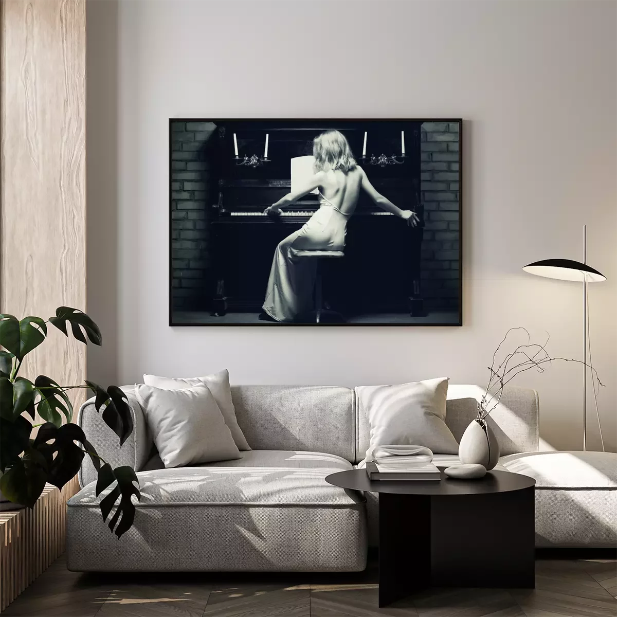 Poster: Frau in einem Kleid am Klavier