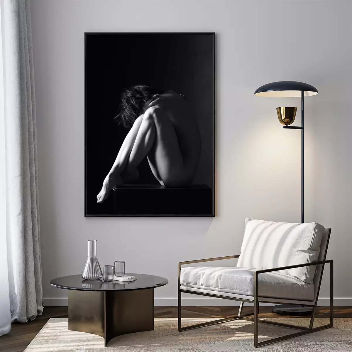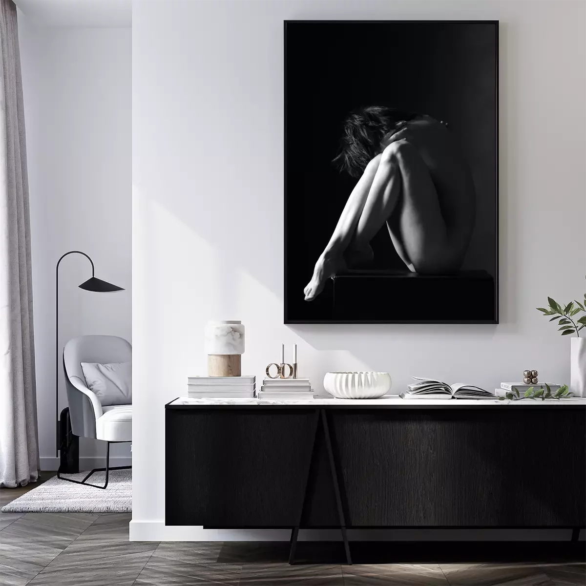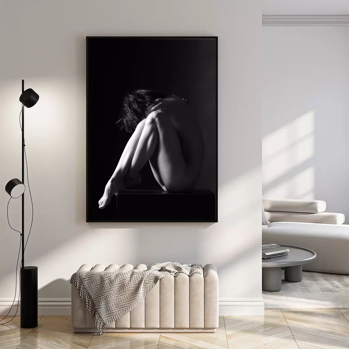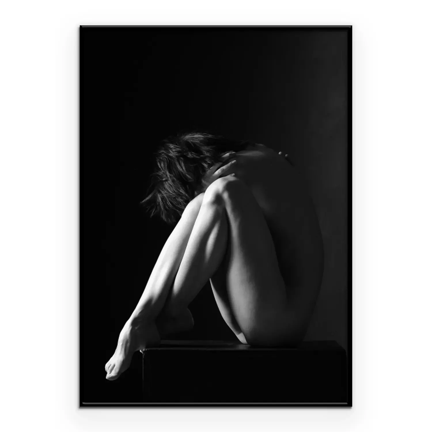 Poster Frau in künstlerischer Pose in einem dunklen Raum