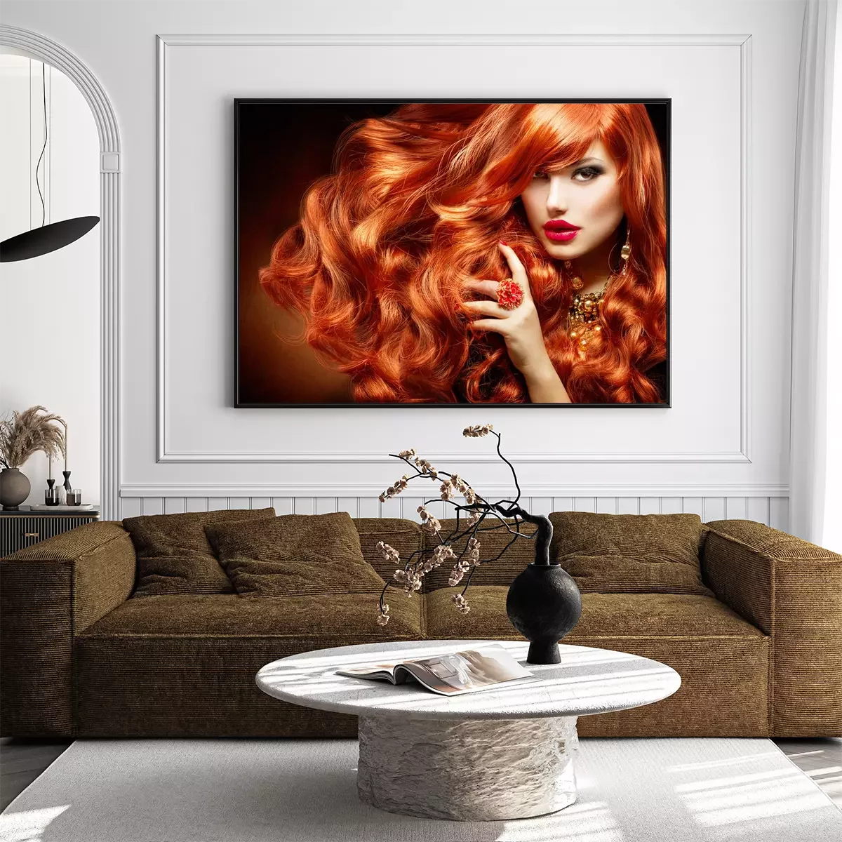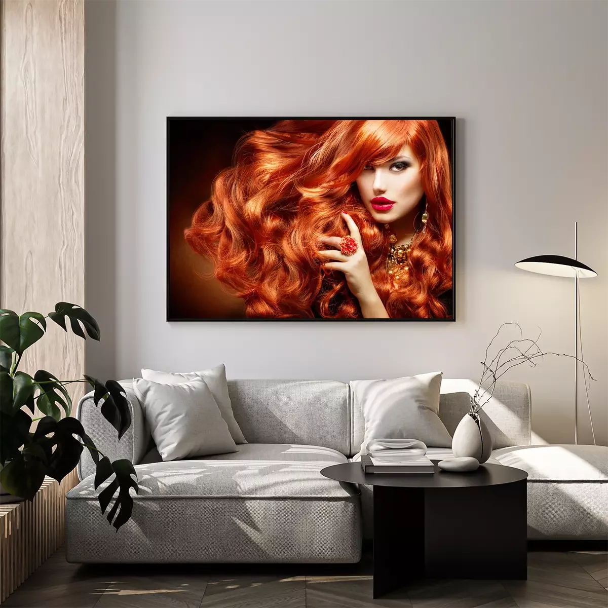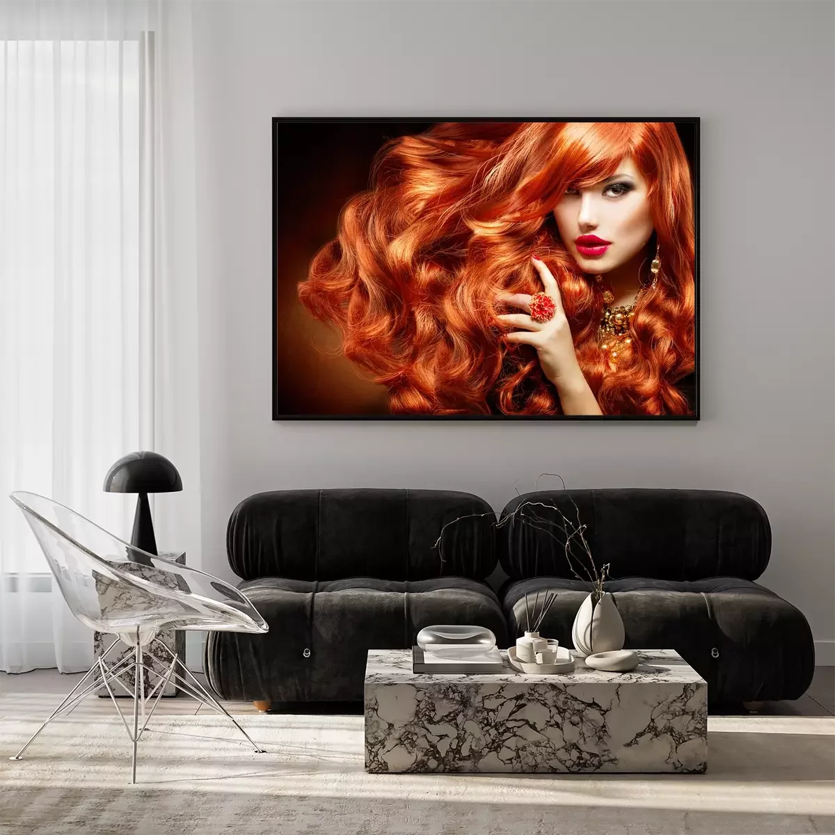 Modell mit roten Haaren auf verschwommenem Hintergrund