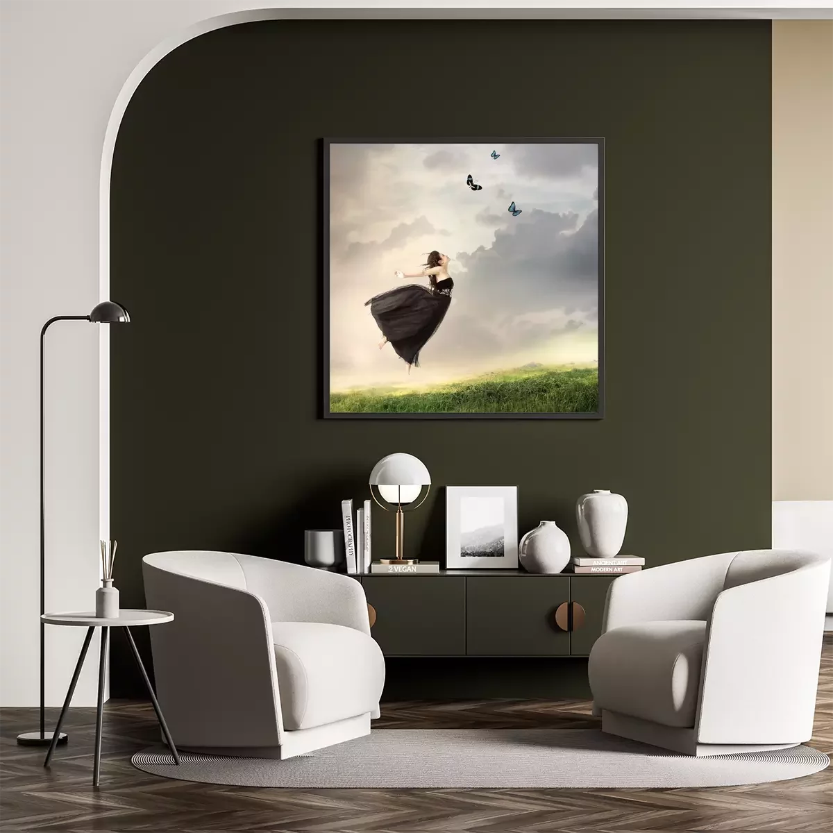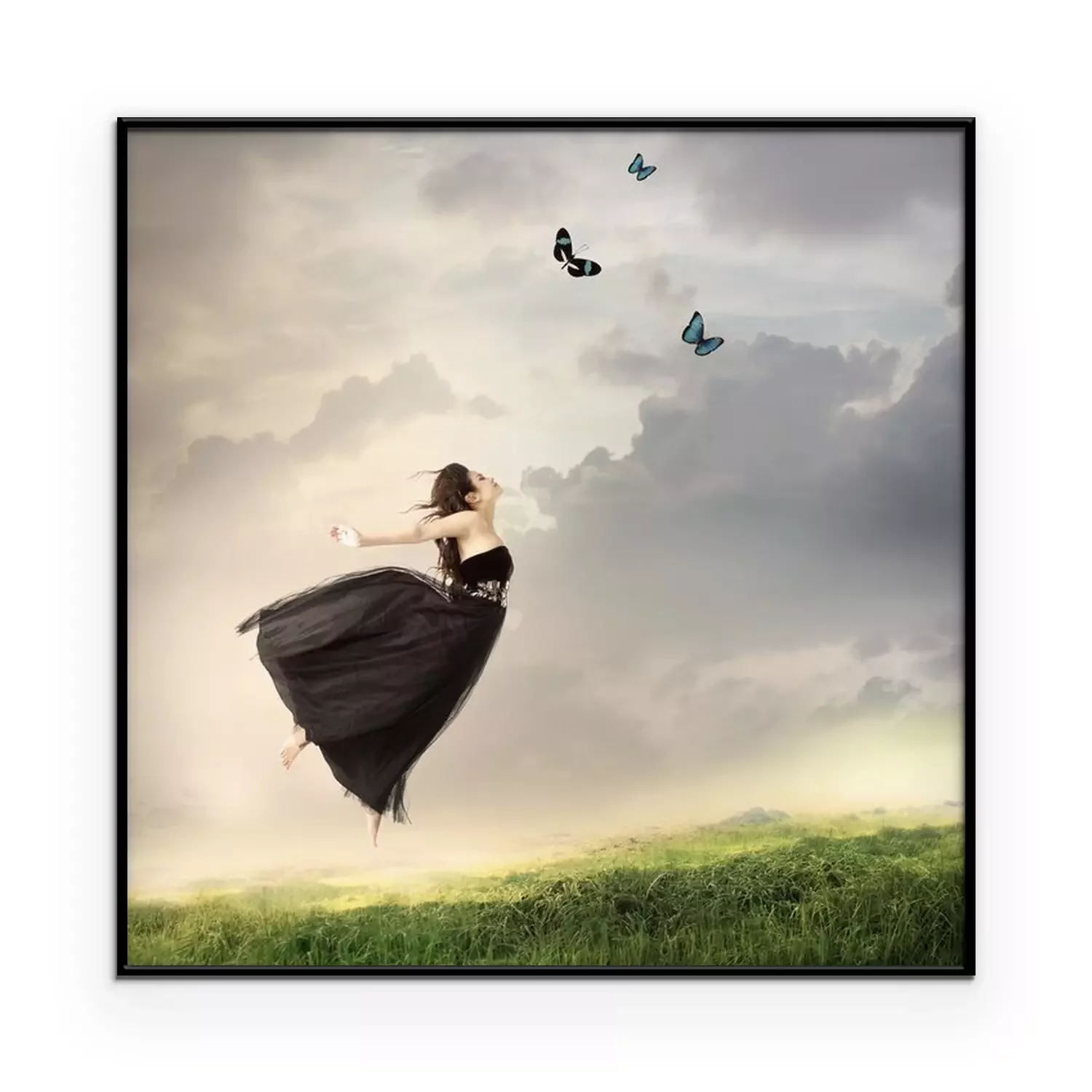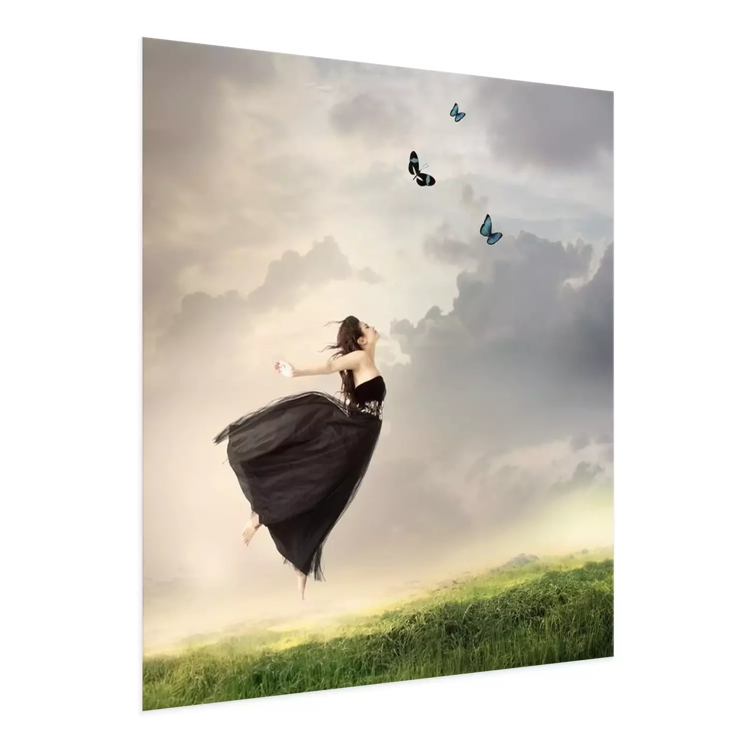 Poster: Frau mit Schmetterlingen am Himmel