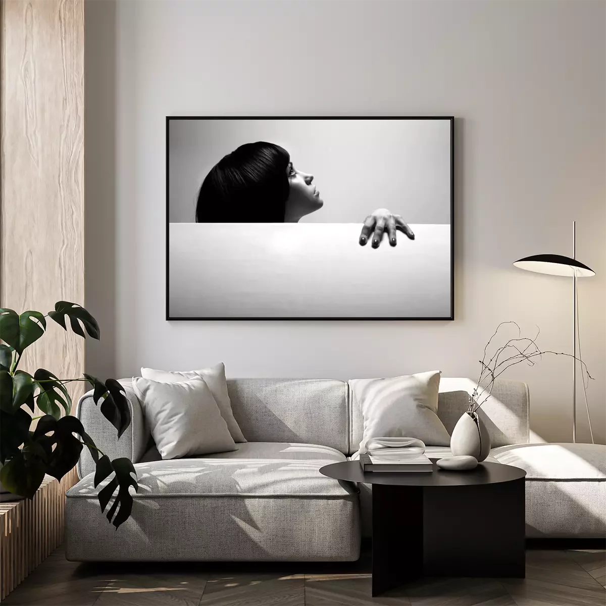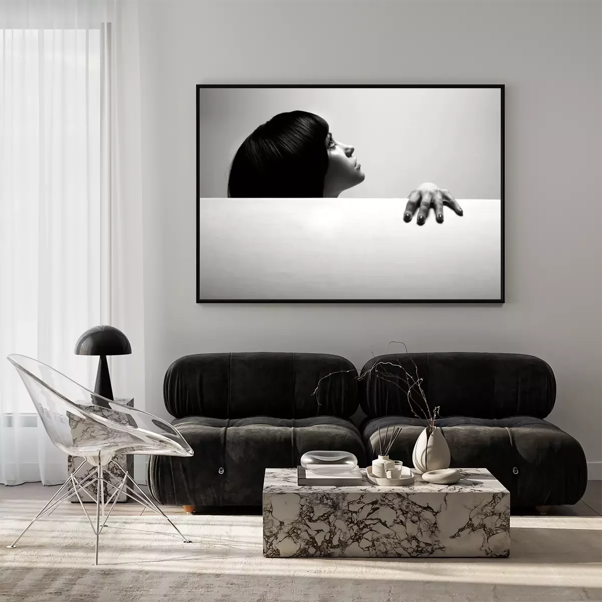 Liegende Frau in Schwarz und Weiß