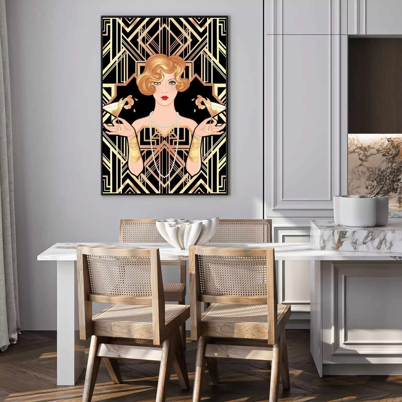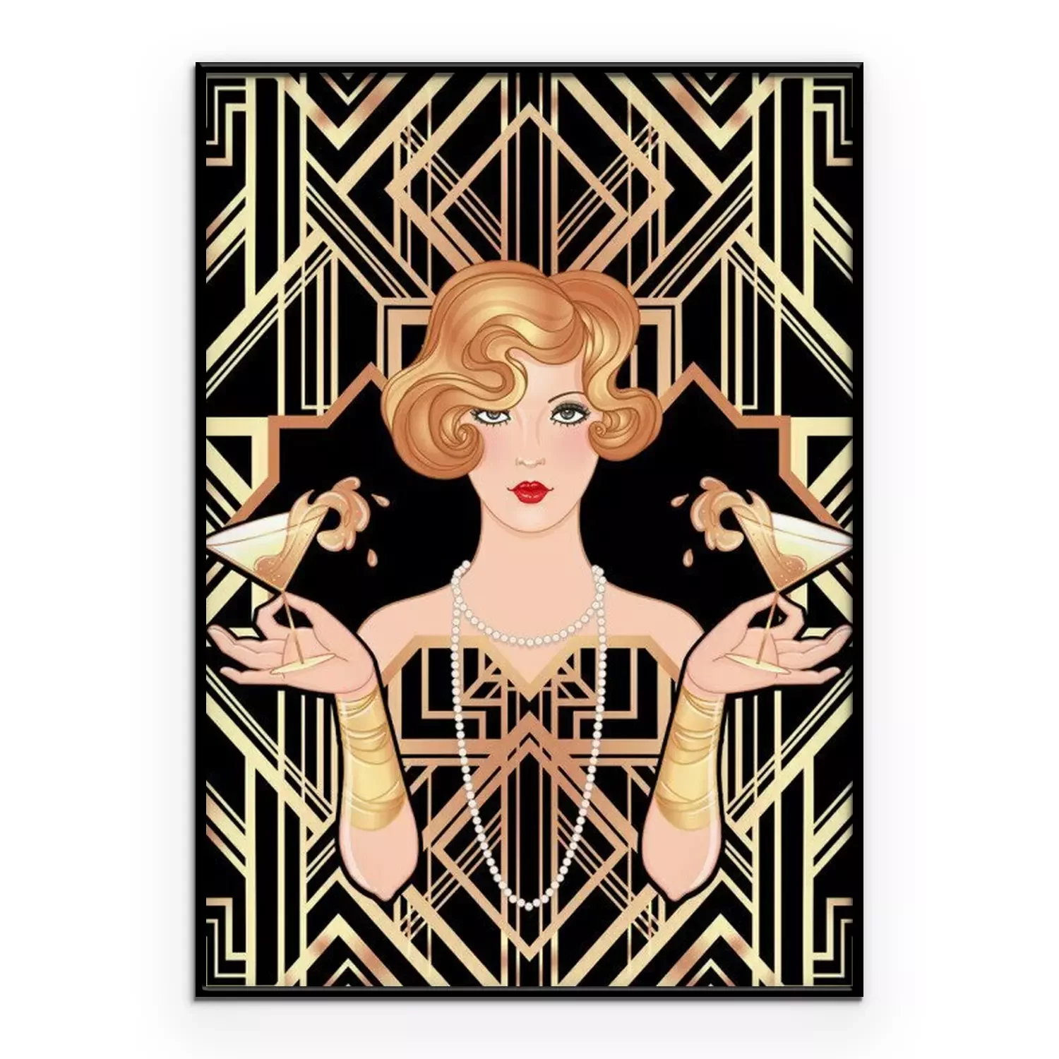 Poster Frau mit zwei Gläsern in den Händen Retro-Grafik