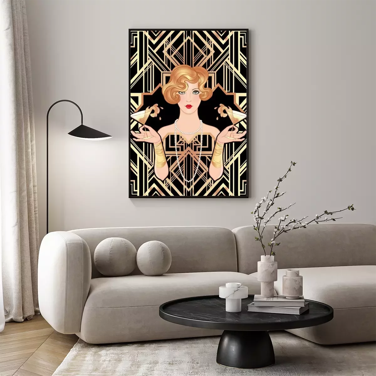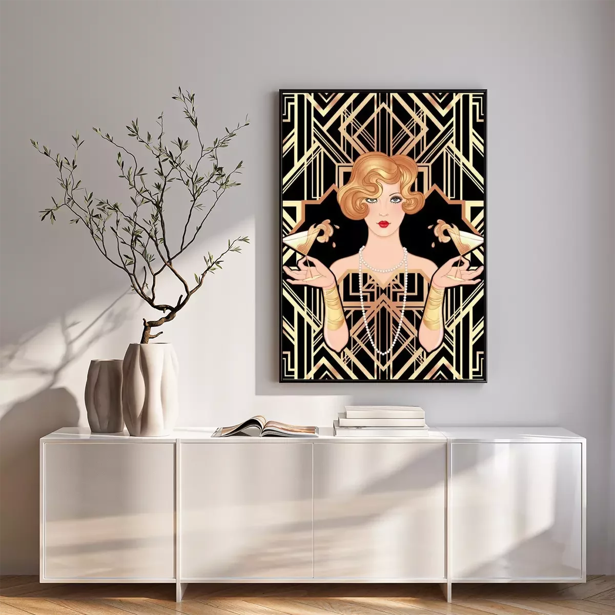 Poster: Frau mit zwei Gläsern in den Händen Retro-Grafik