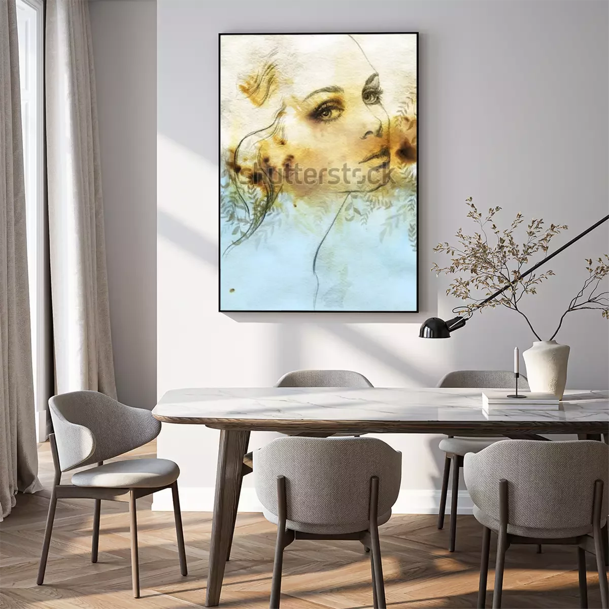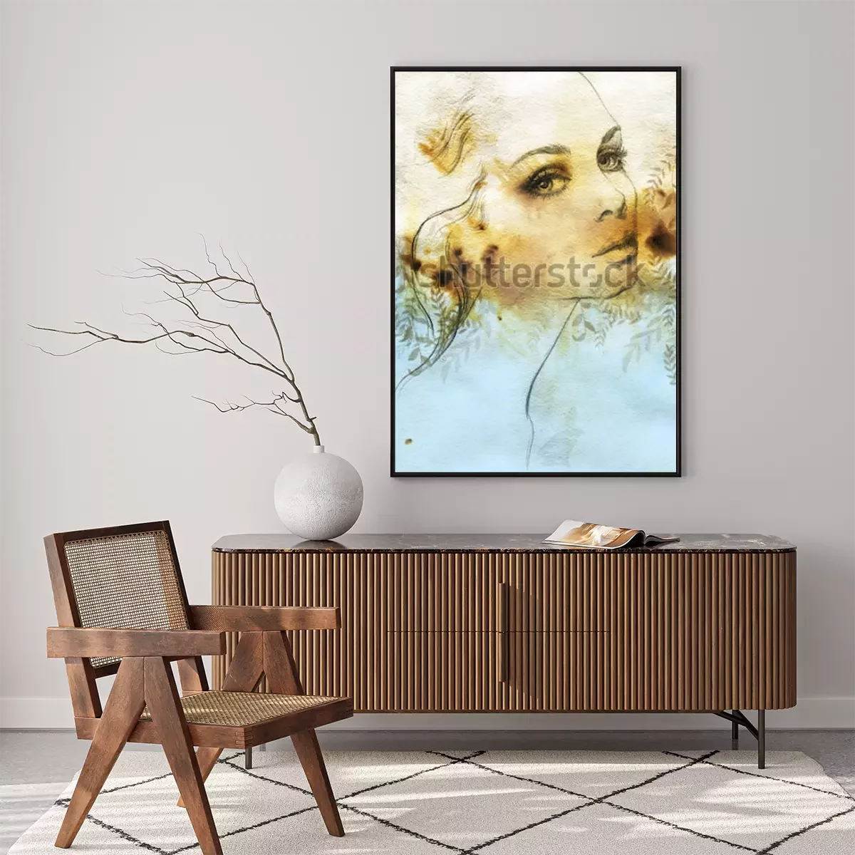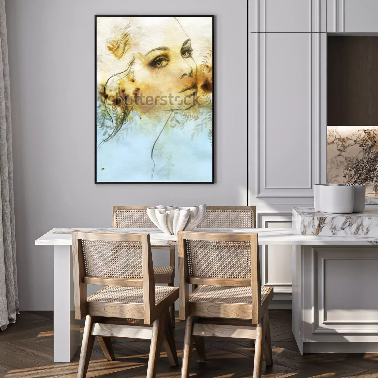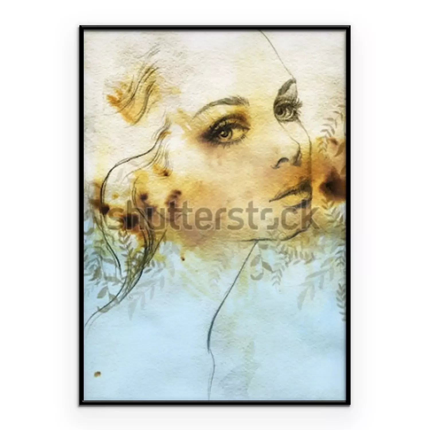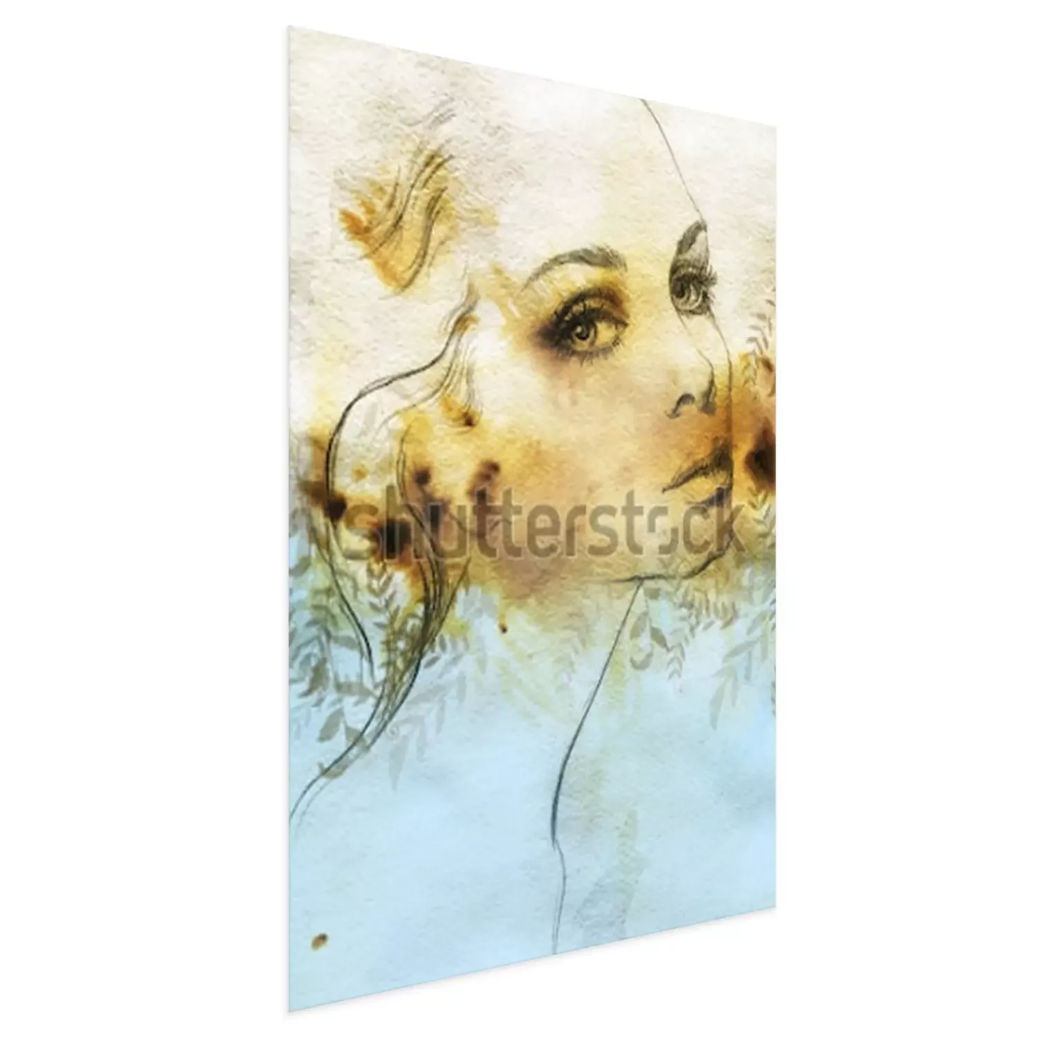 Poster: Frauengesicht in pastellfarbenen Tönen