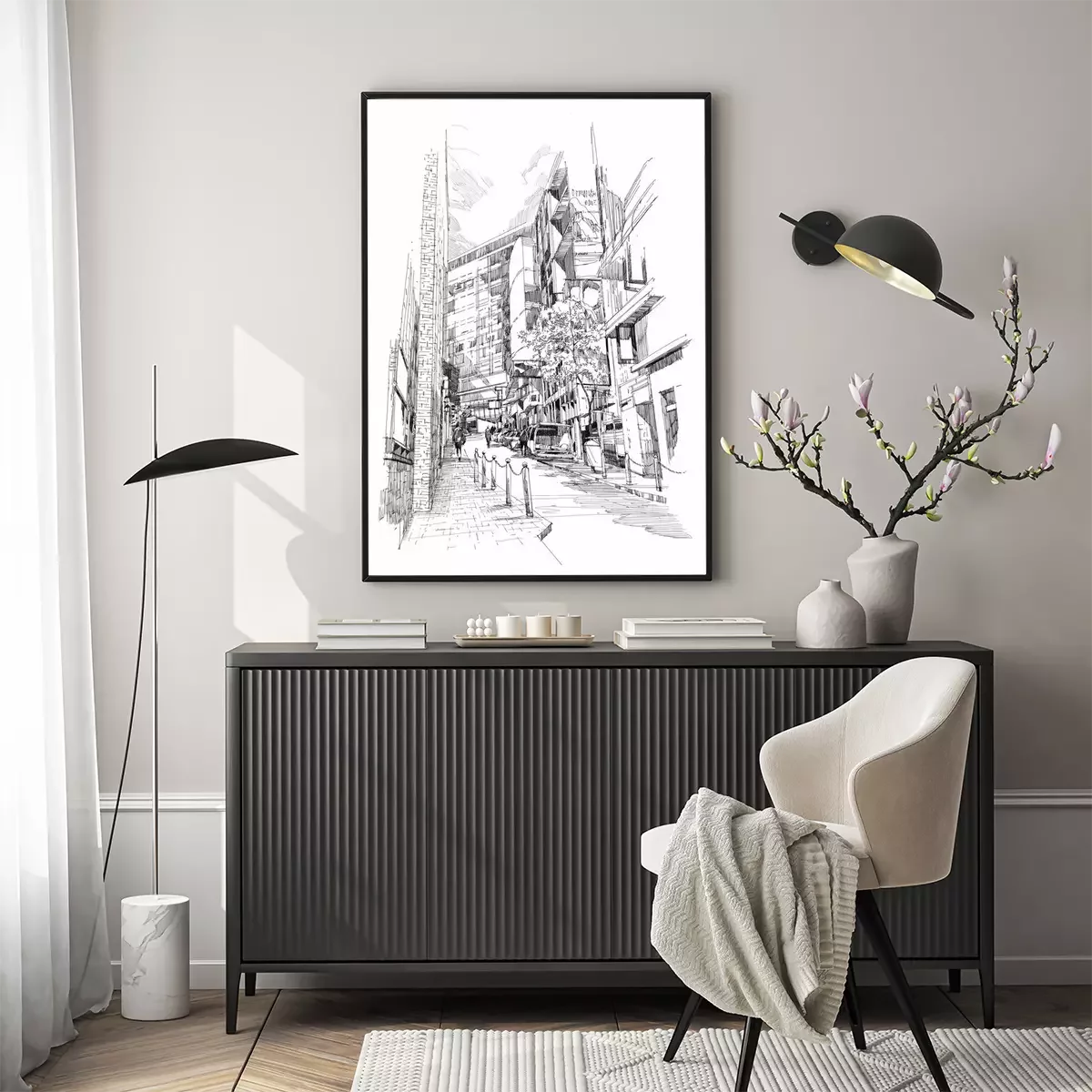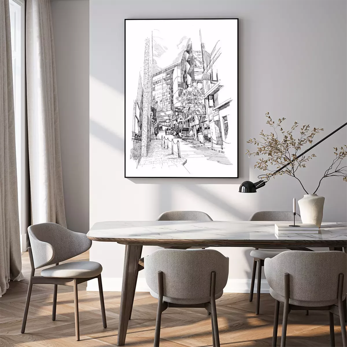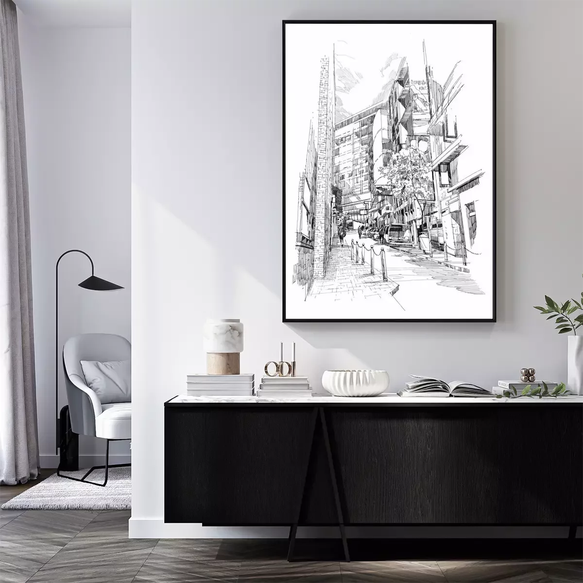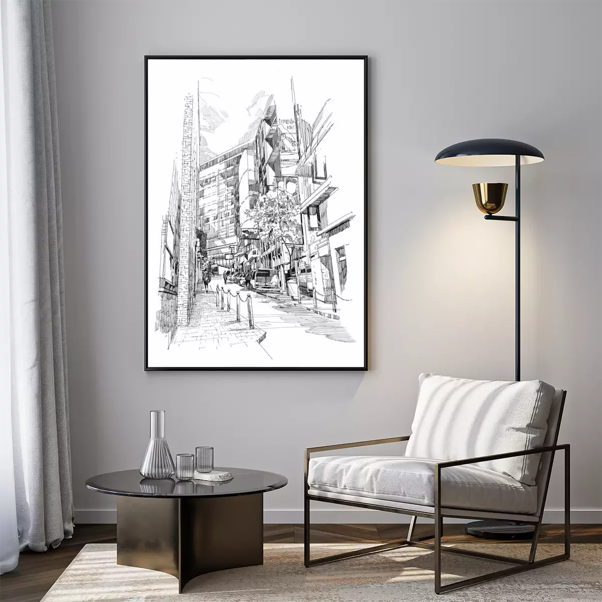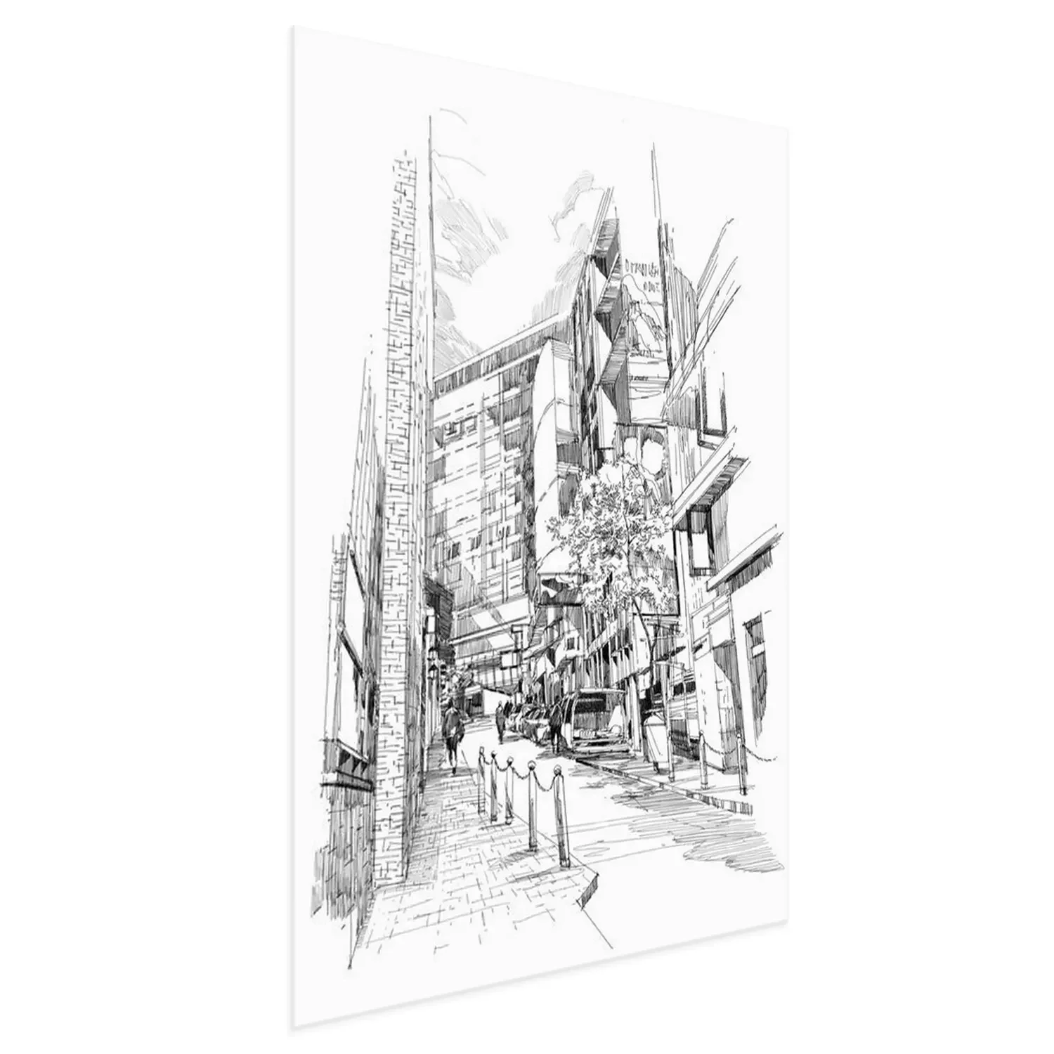 Poster Free hand sketch of the old alley of the city