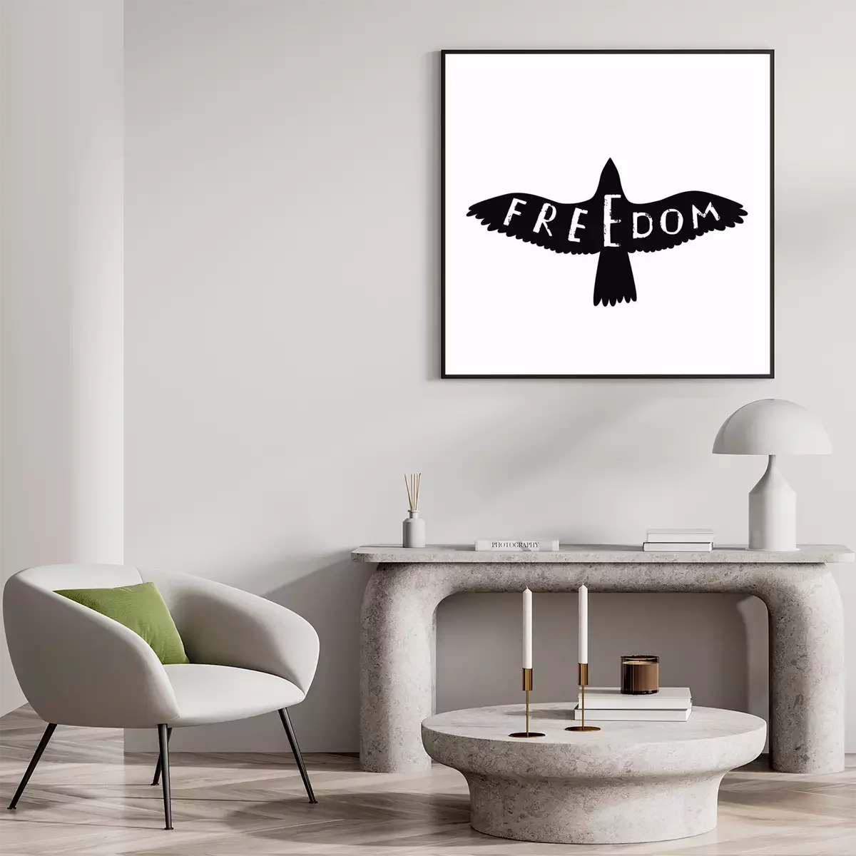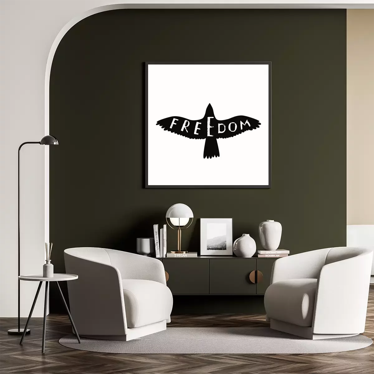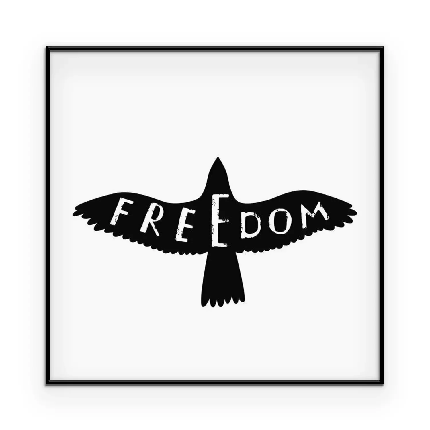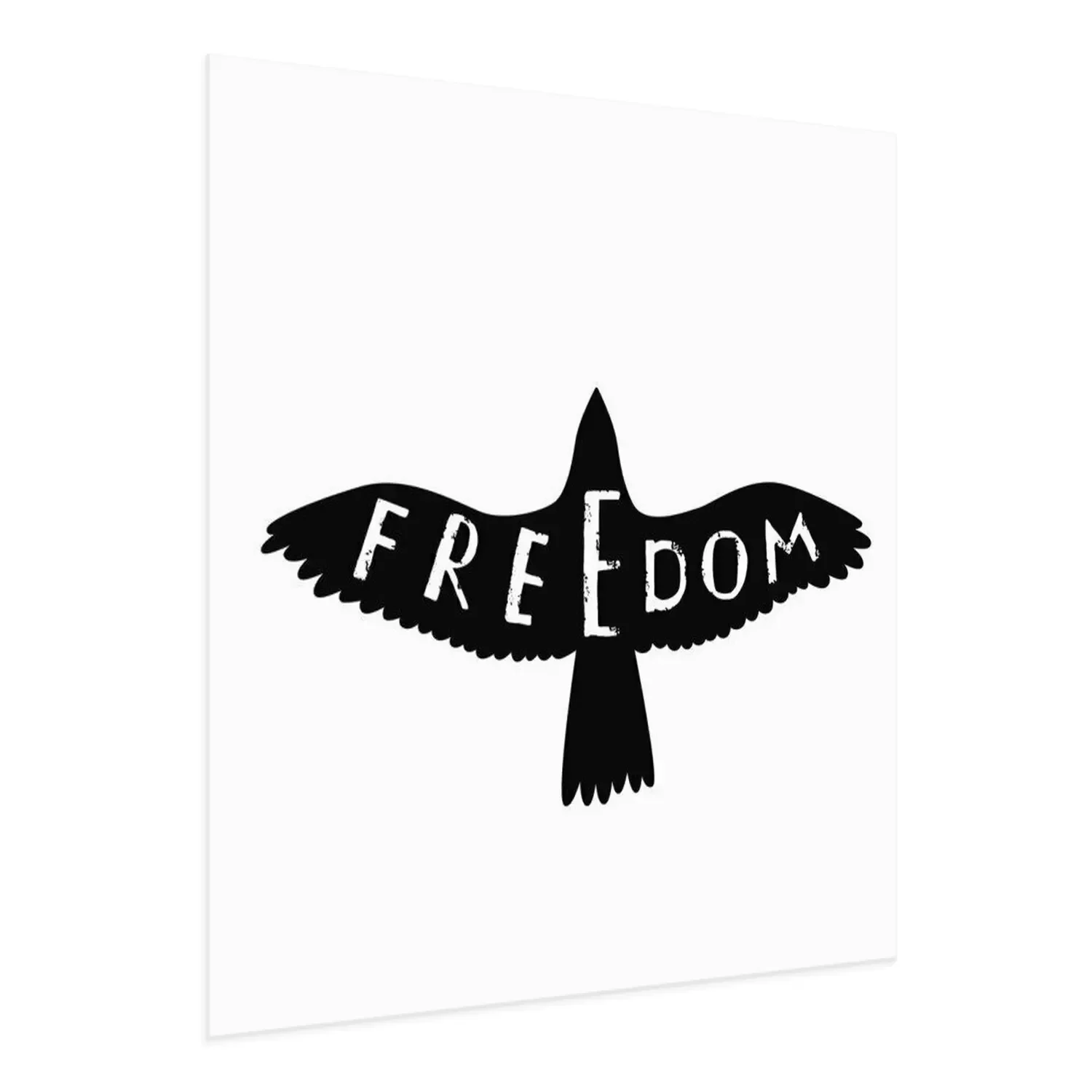 Poster: Freiheit. Inspirierend Zitat über Freiheit in Form fliegender Vogel