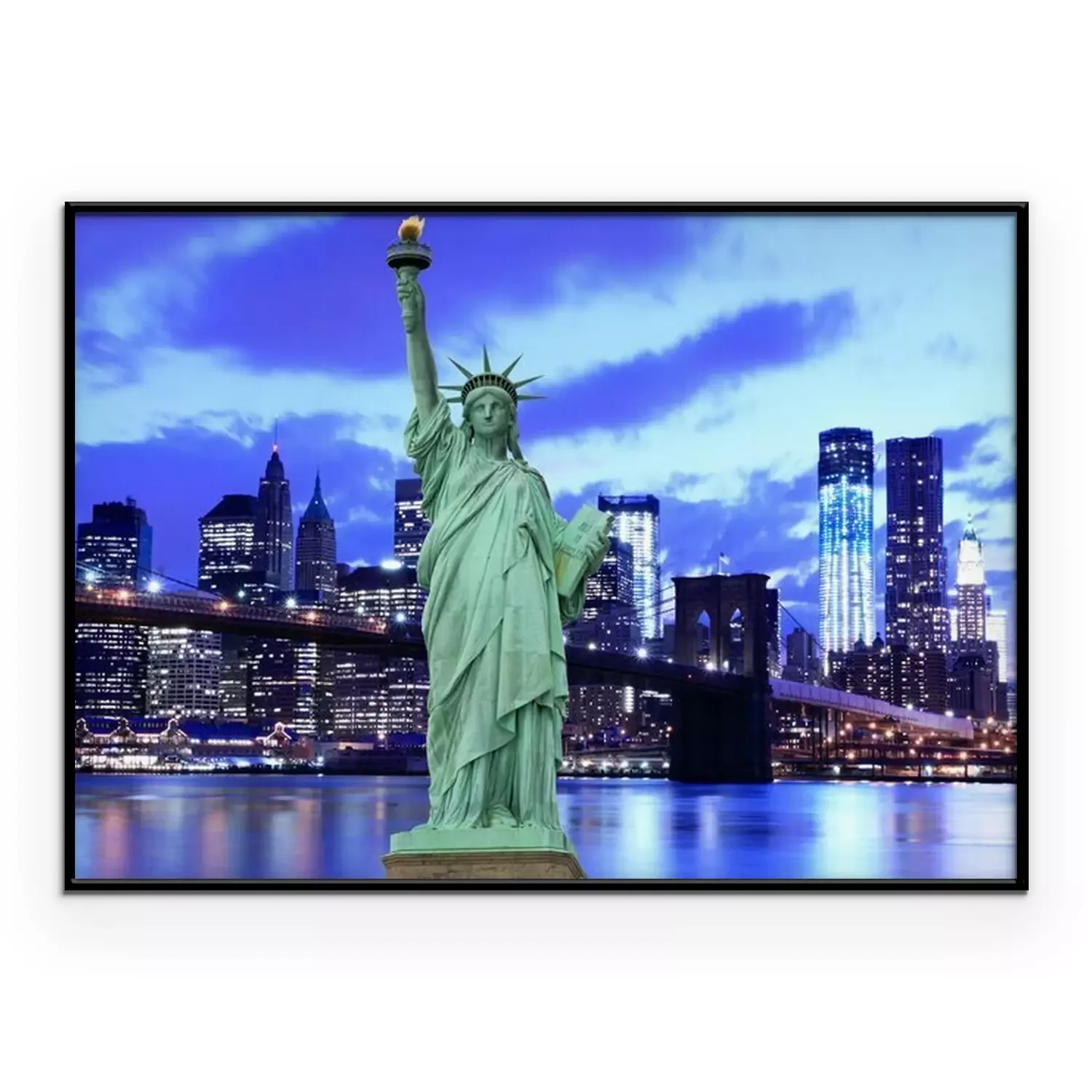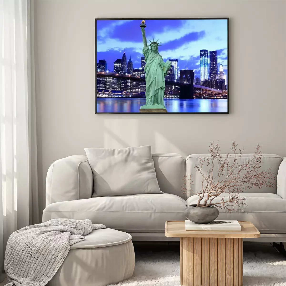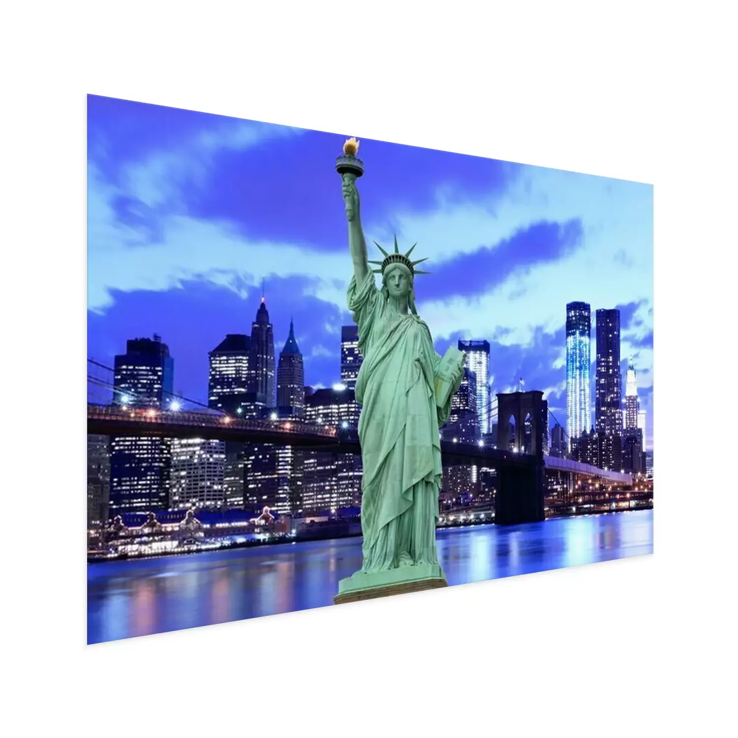 Poster: Freiheitsstatue vor dem Hintergrund der Brooklyn Bridge