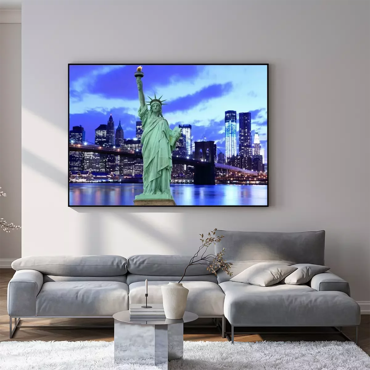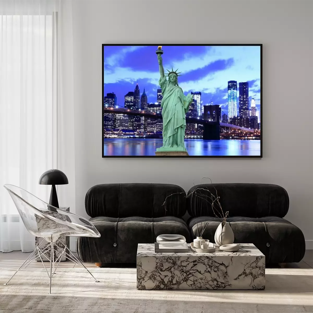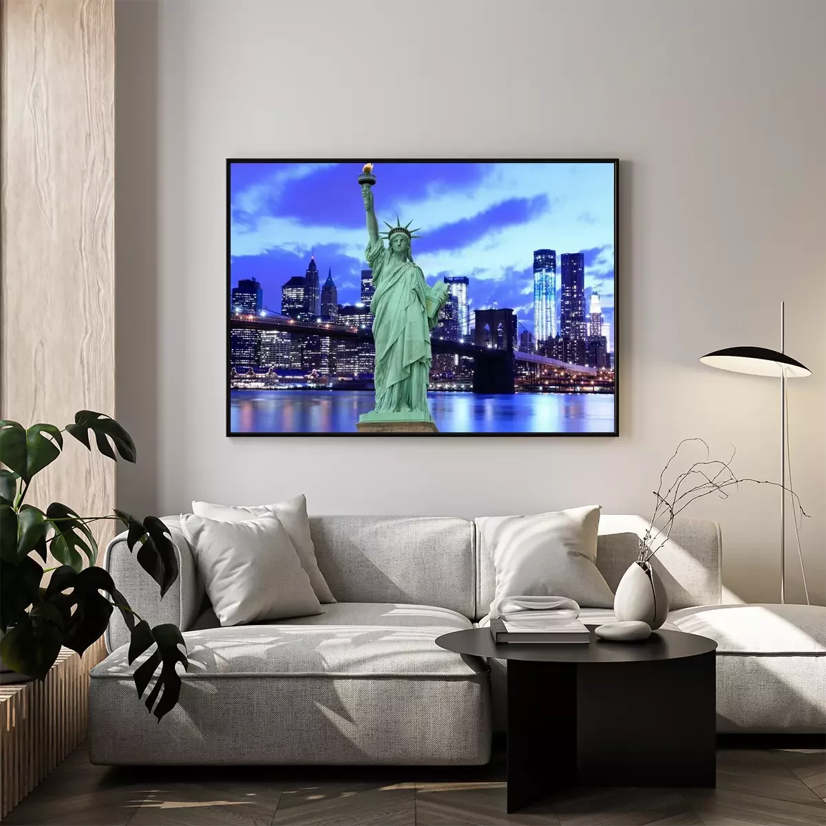 Poster: Freiheitsstatue vor dem Hintergrund der Brooklyn Bridge