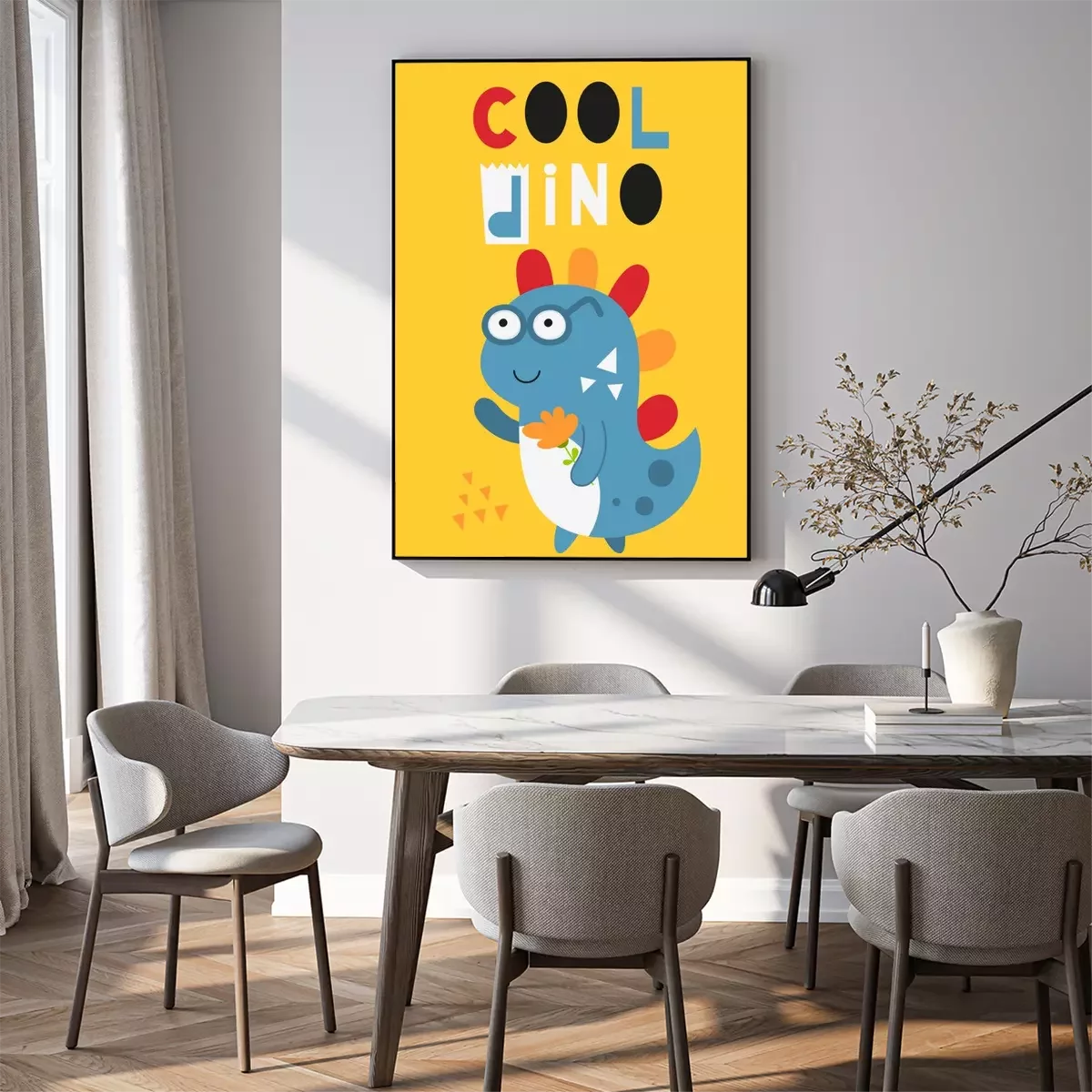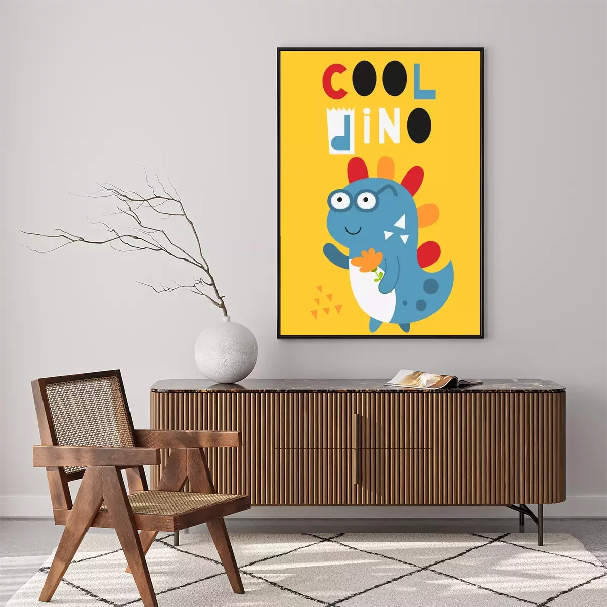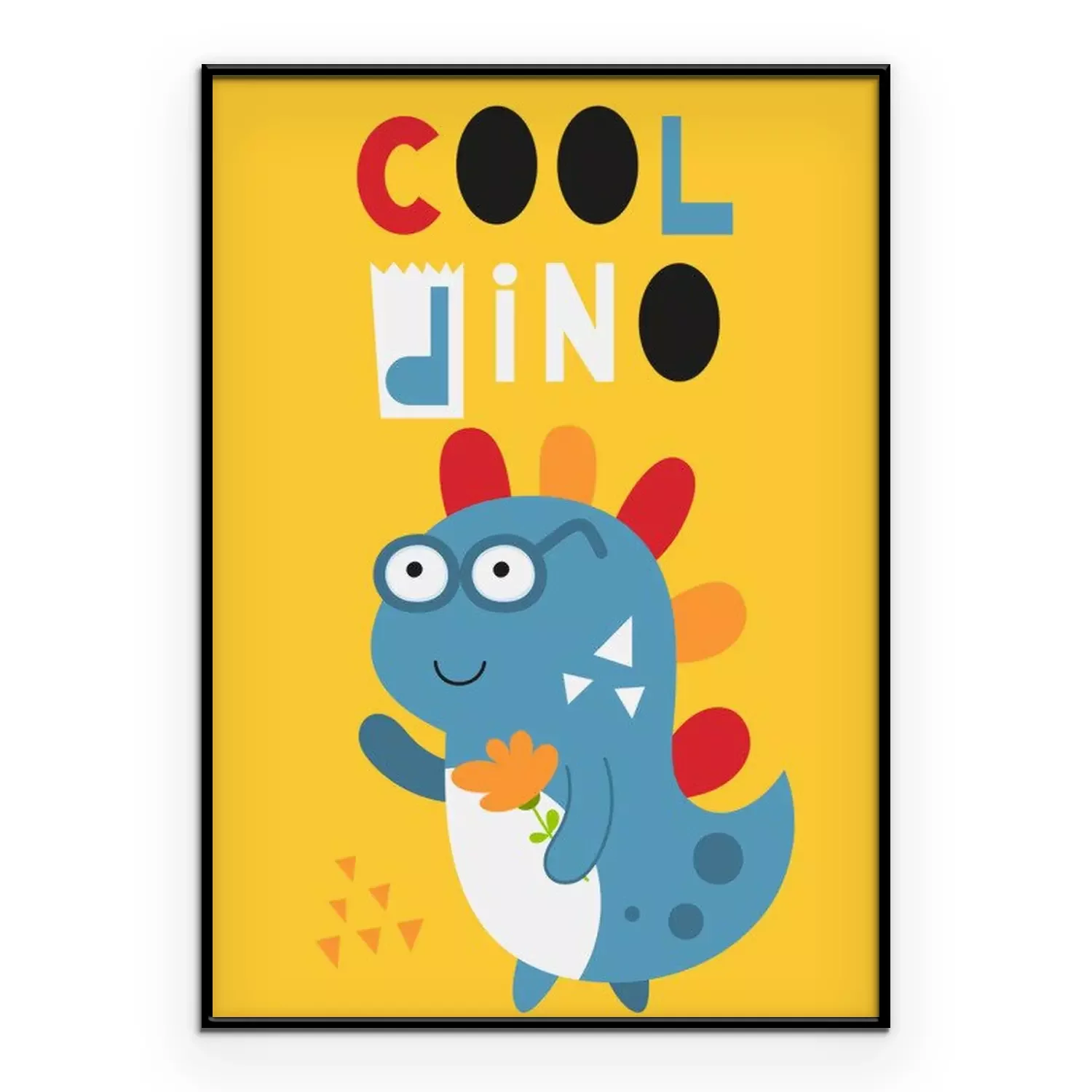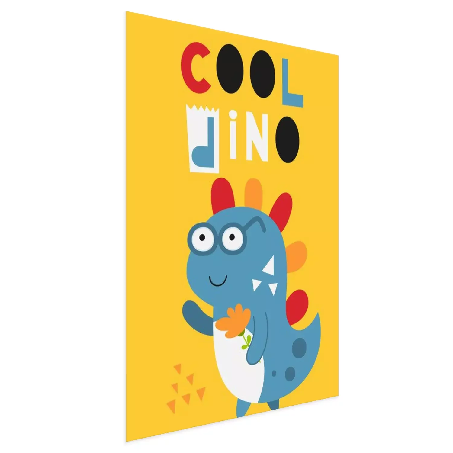 Poster: Fröhlicher Dinosaurier mit Brille mit Blume
