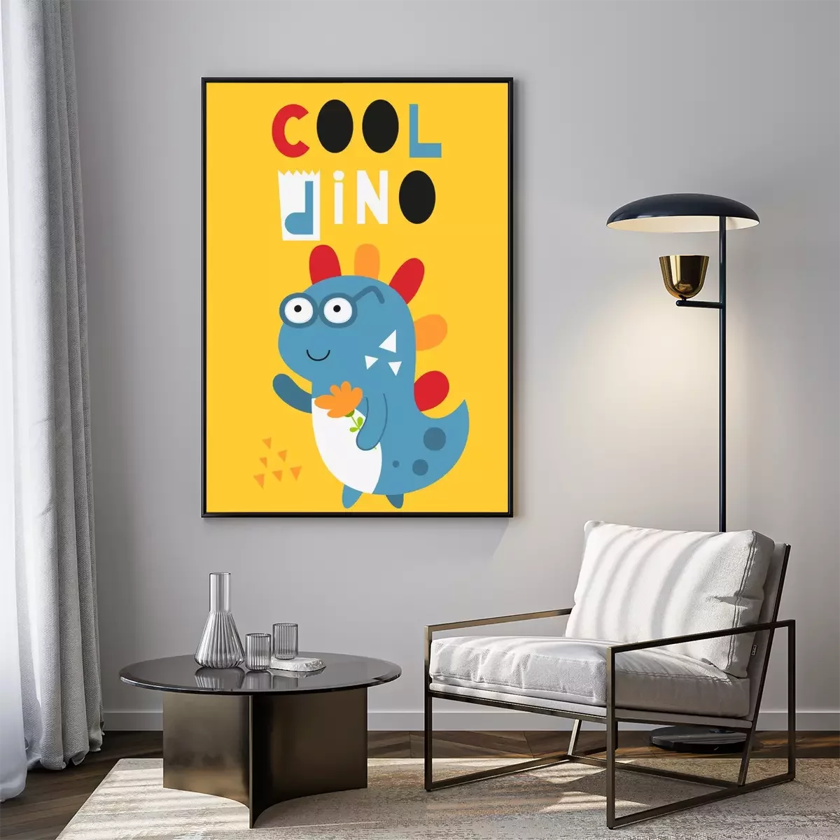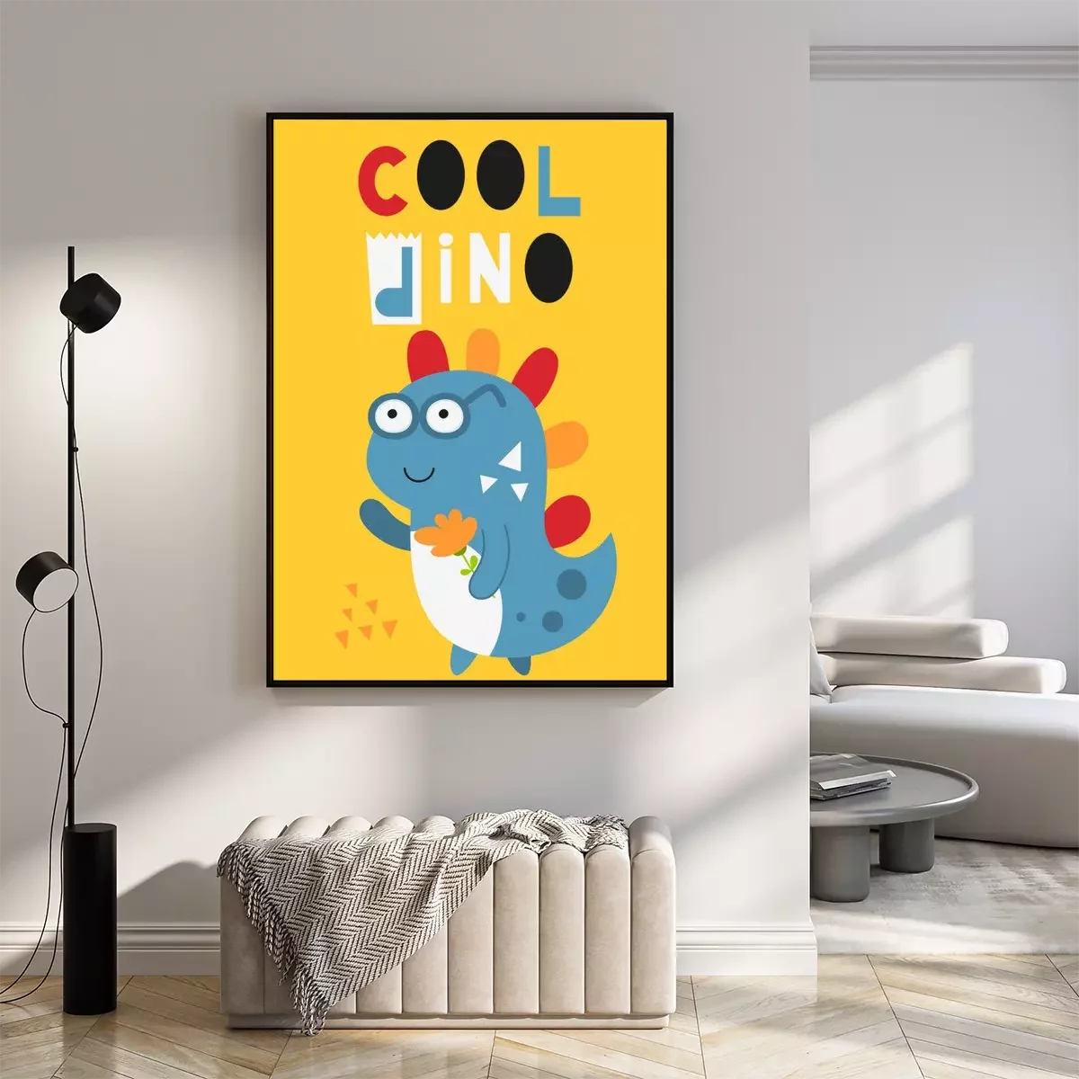 Poster Fröhlicher Dinosaurier mit Brille mit Blume