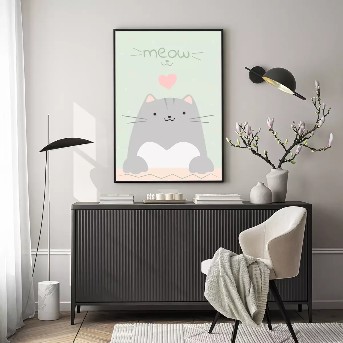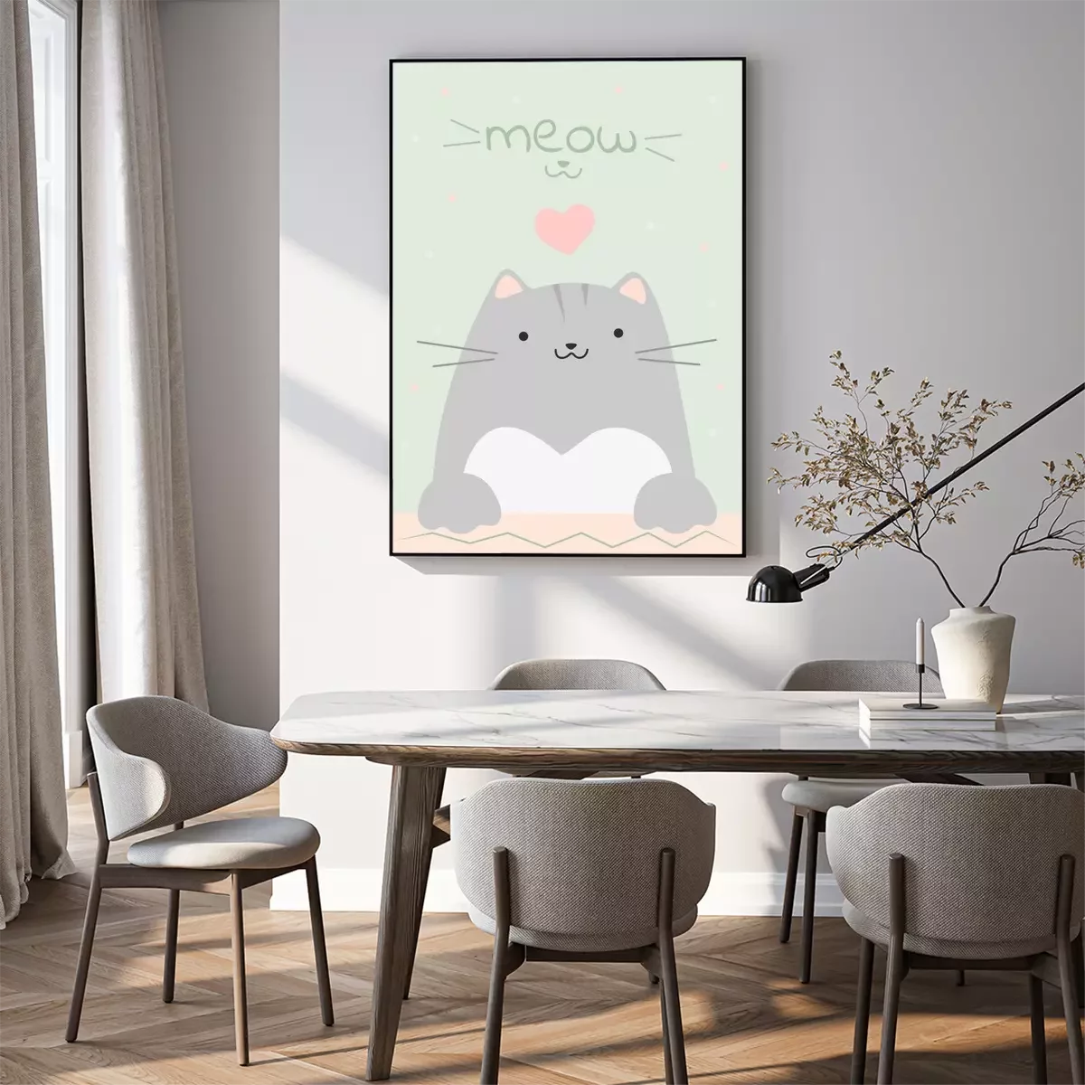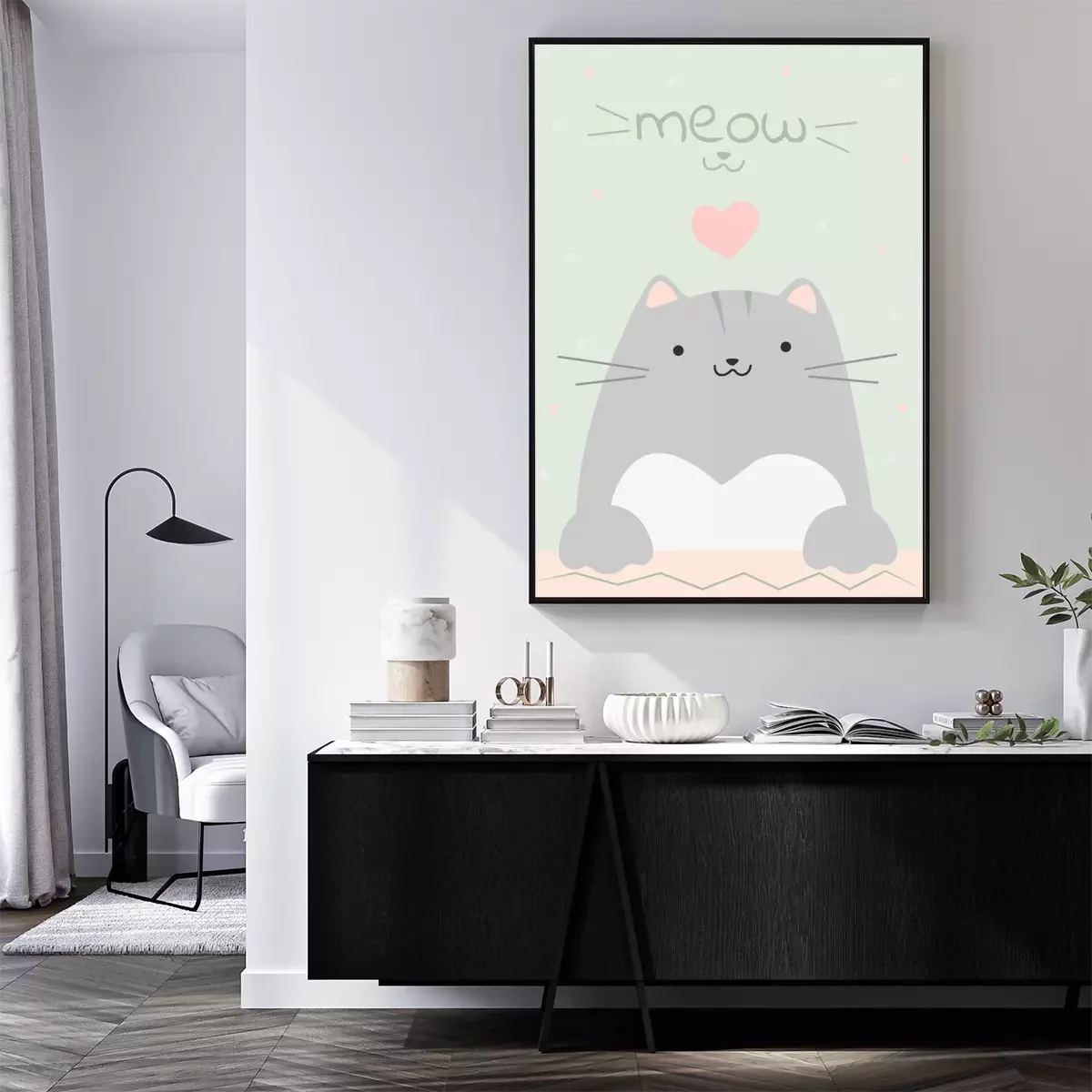 Poster: Fröhliches Kätzchen mit rosa Herz