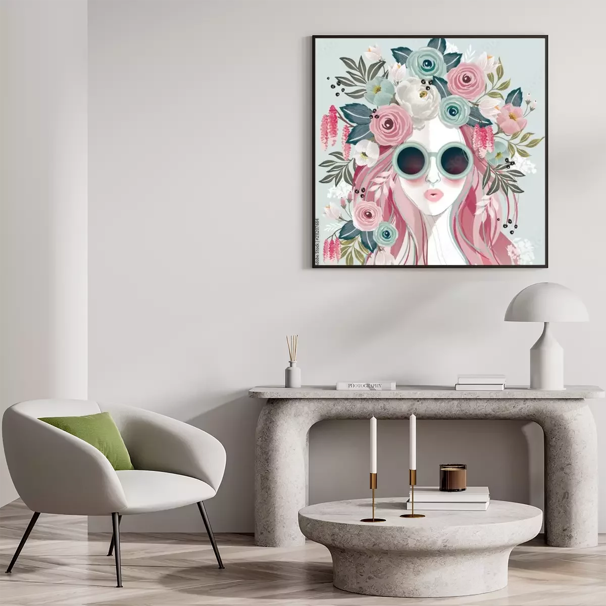 Poster: Frühlingsmädchen mit einem Kranz auf dem Kopf