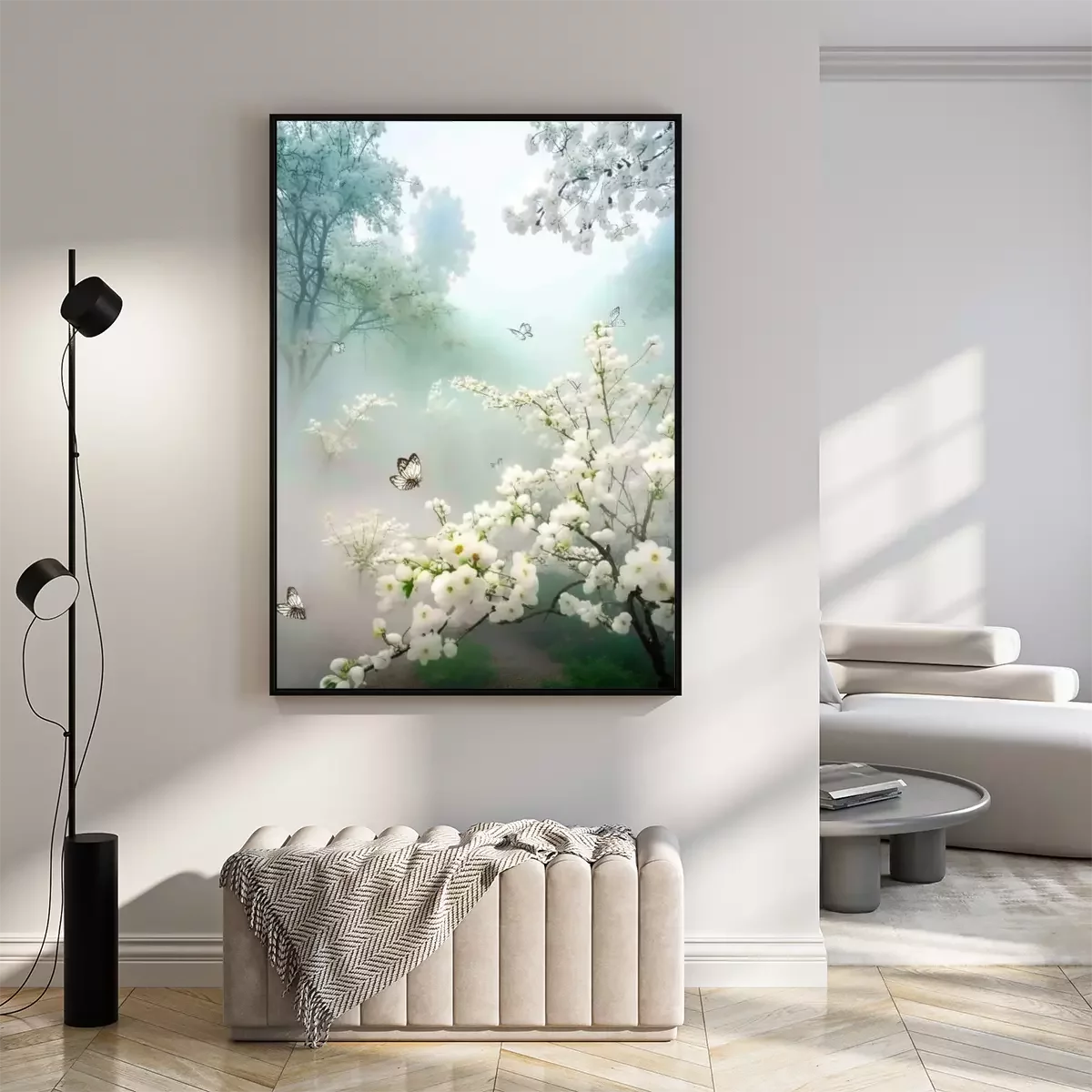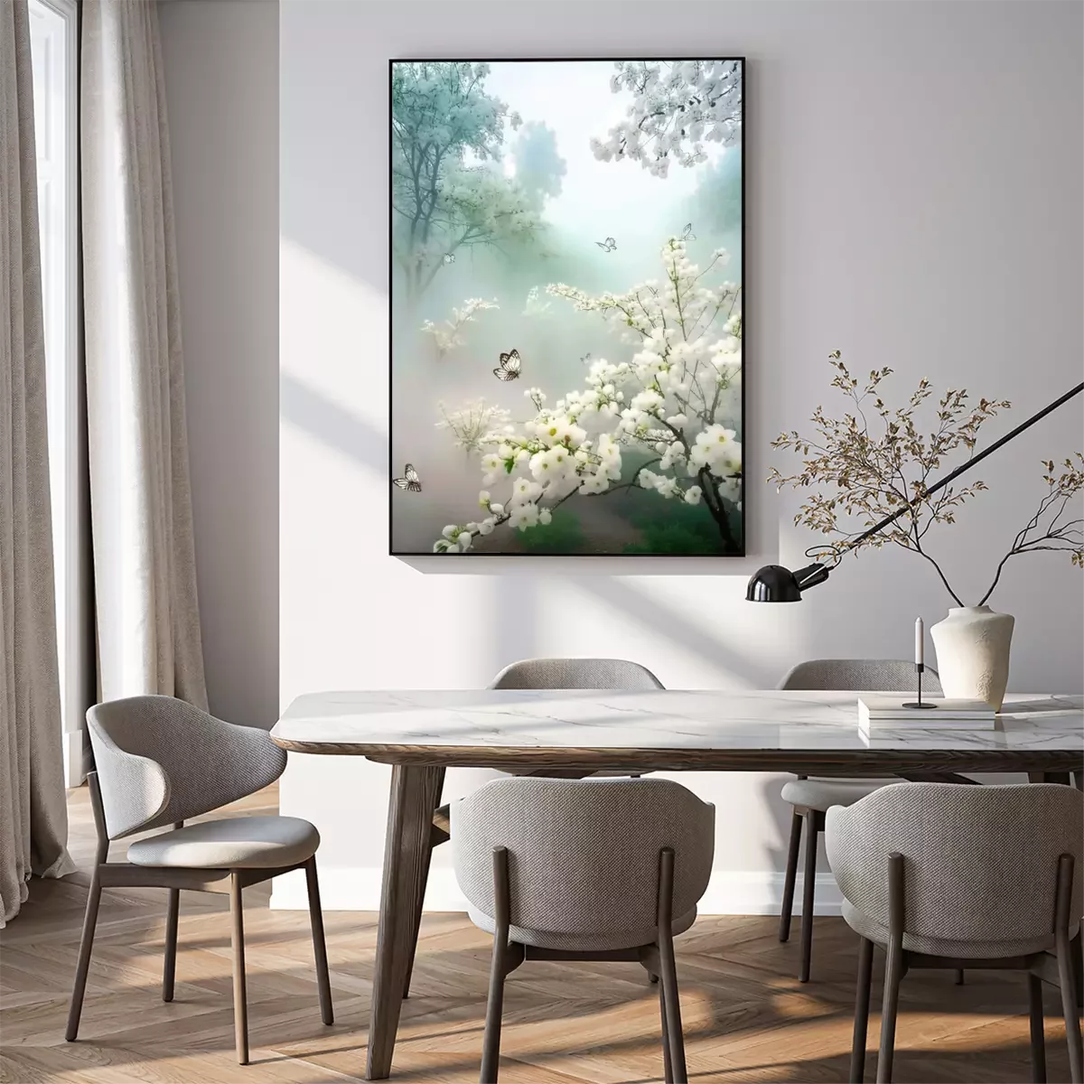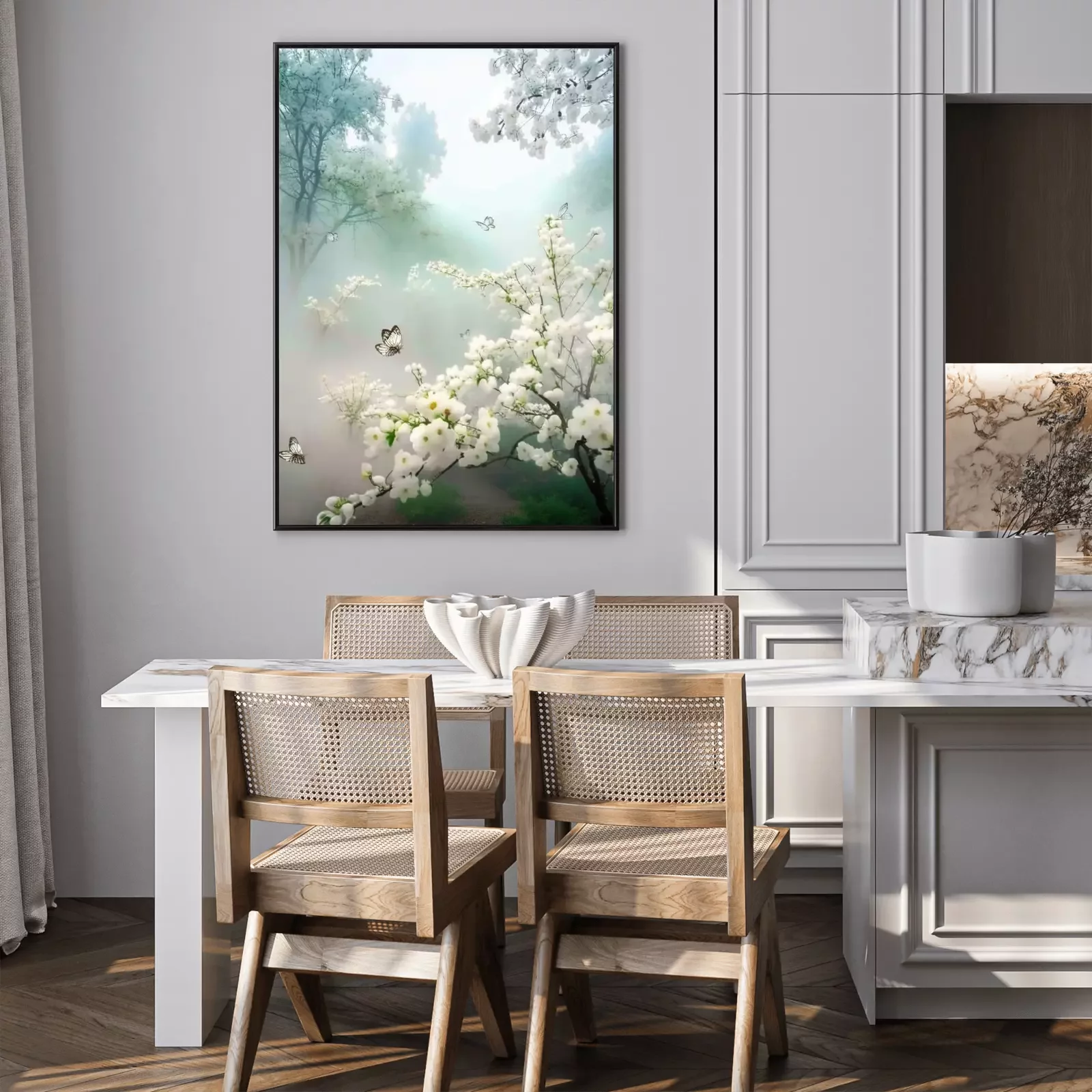 Poster: Frühlingsmorgen im Obstgarten