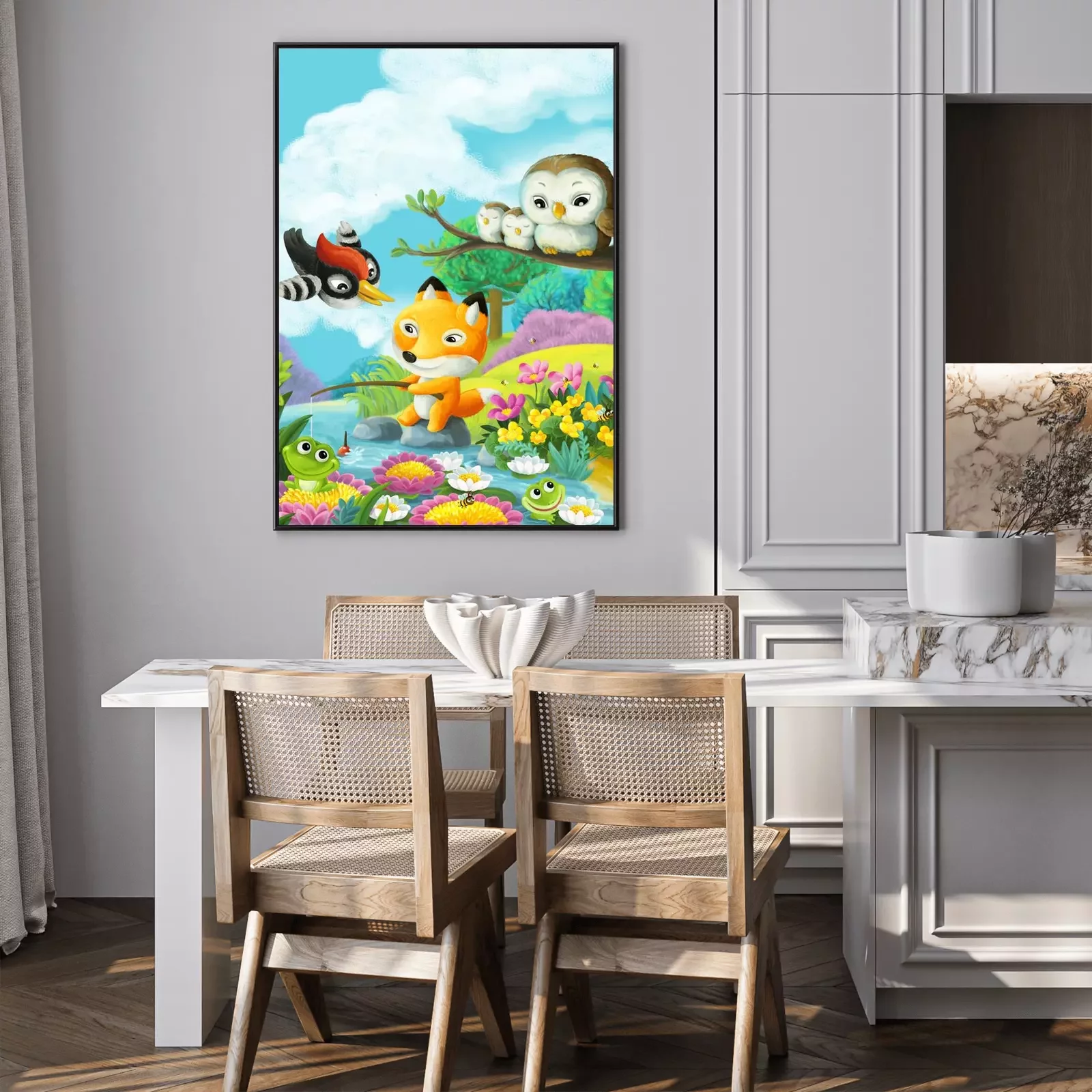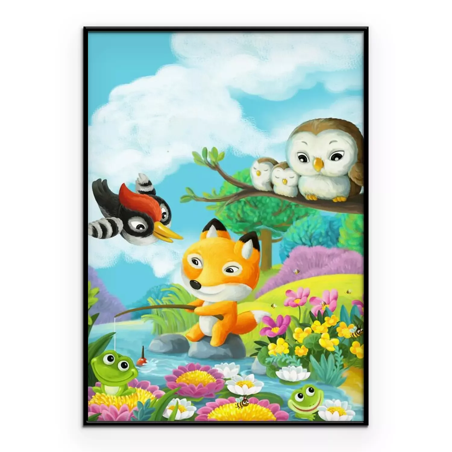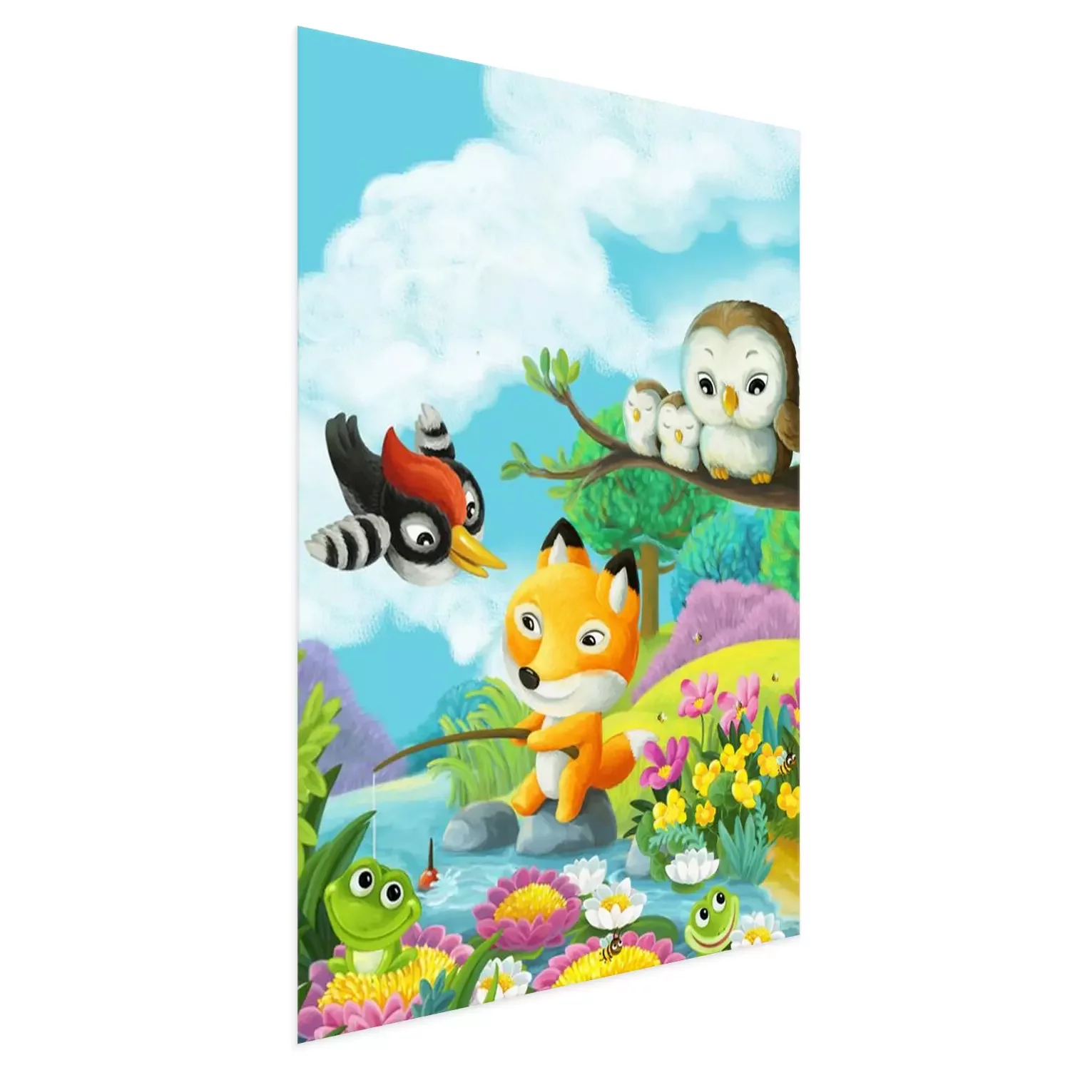 Poster: Fuchs beim Angeln mit Freunden am Fluss