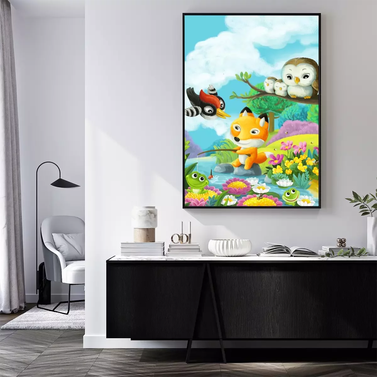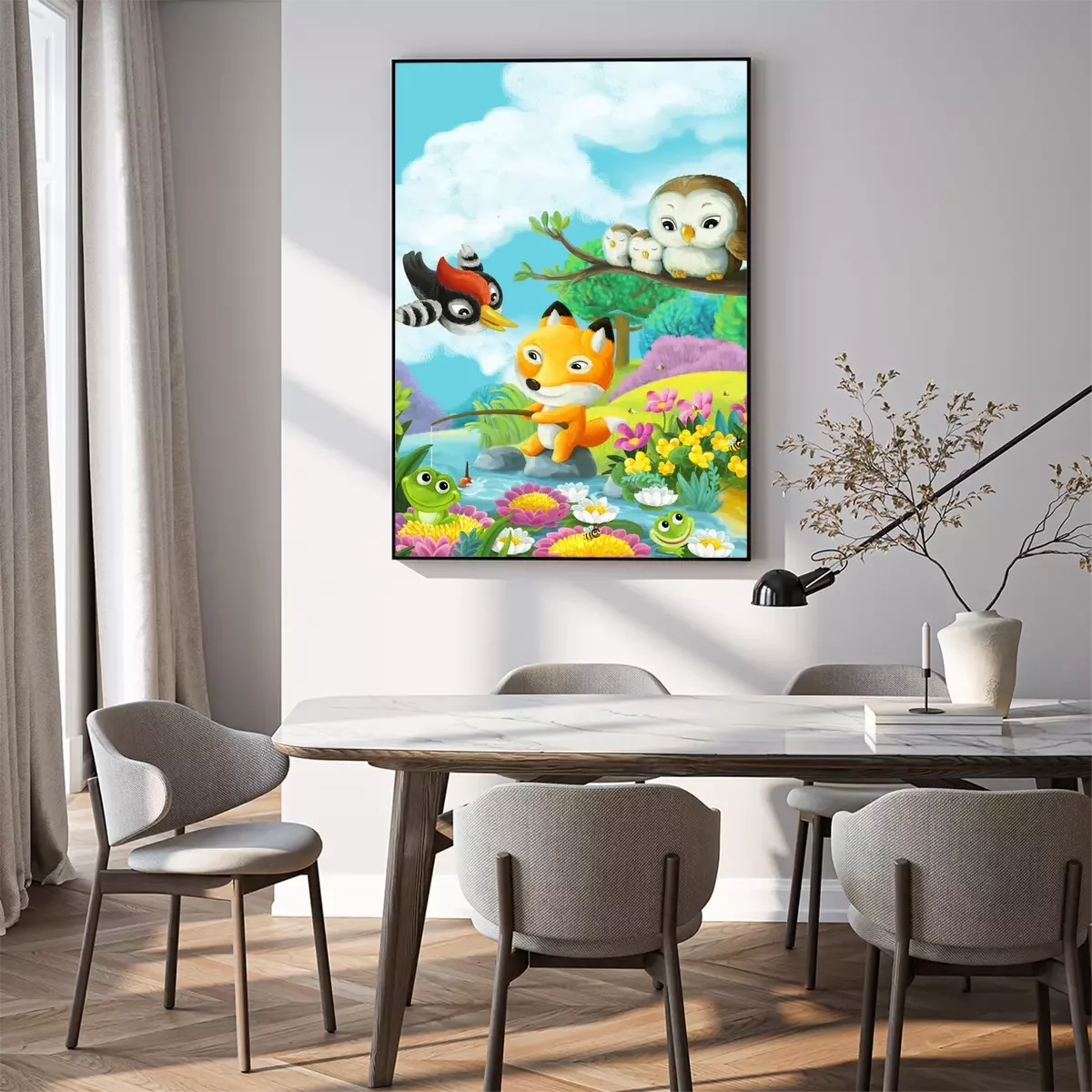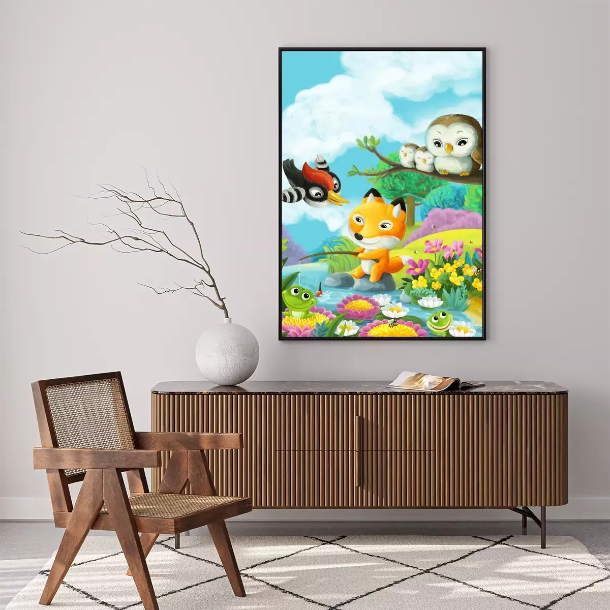Poster: Fuchs beim Angeln mit Freunden am Fluss