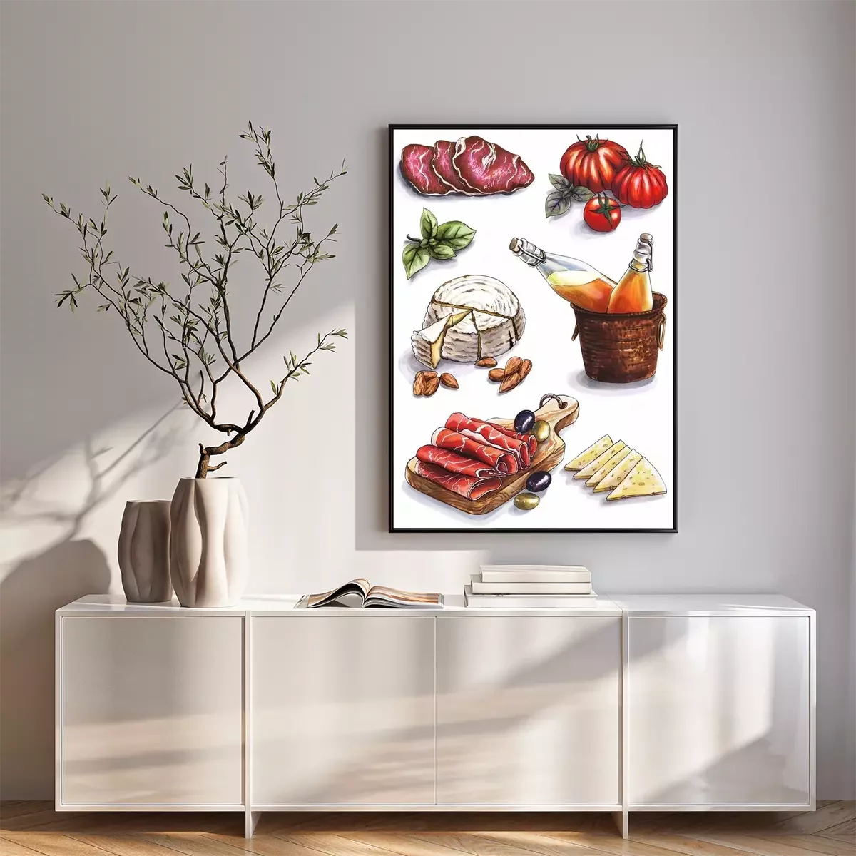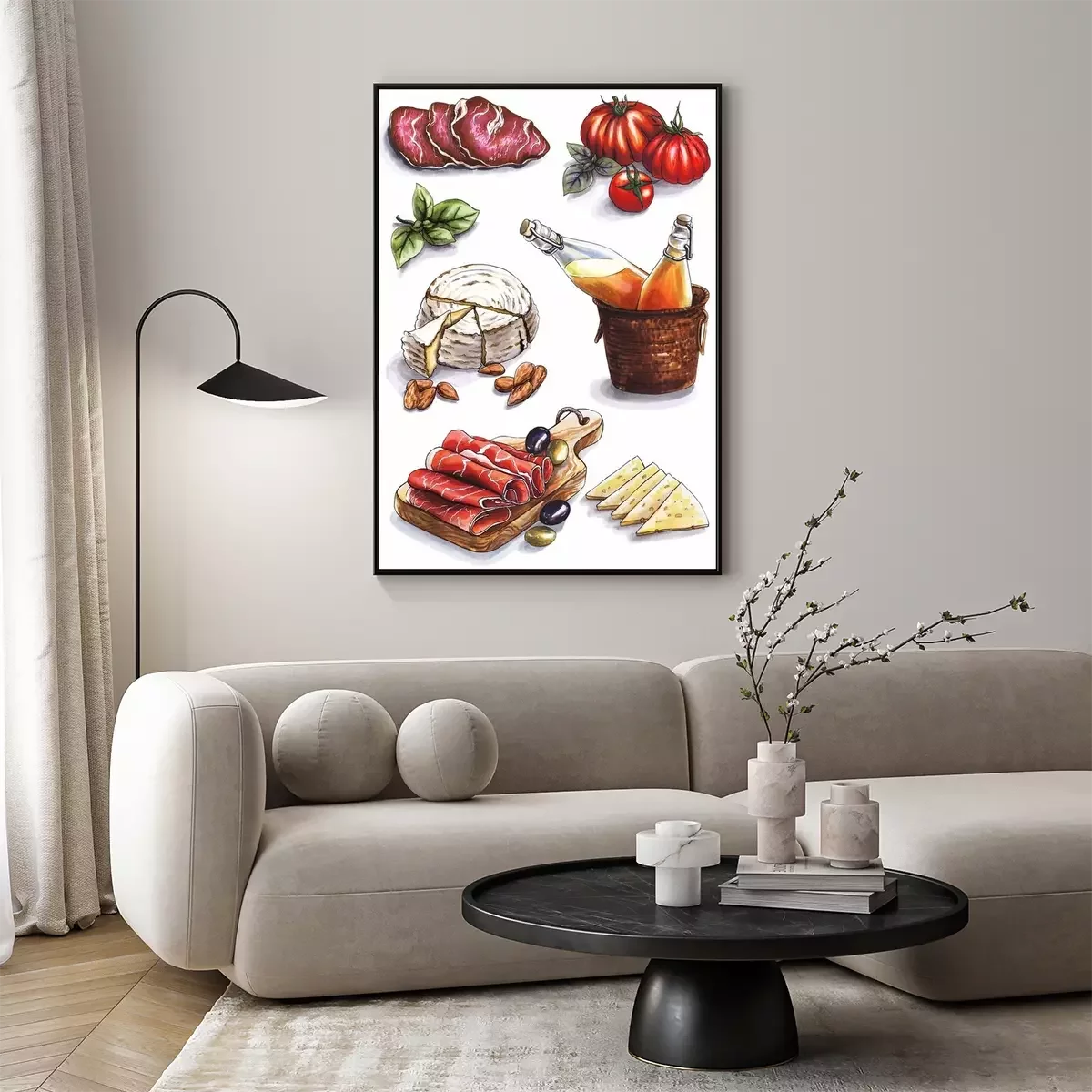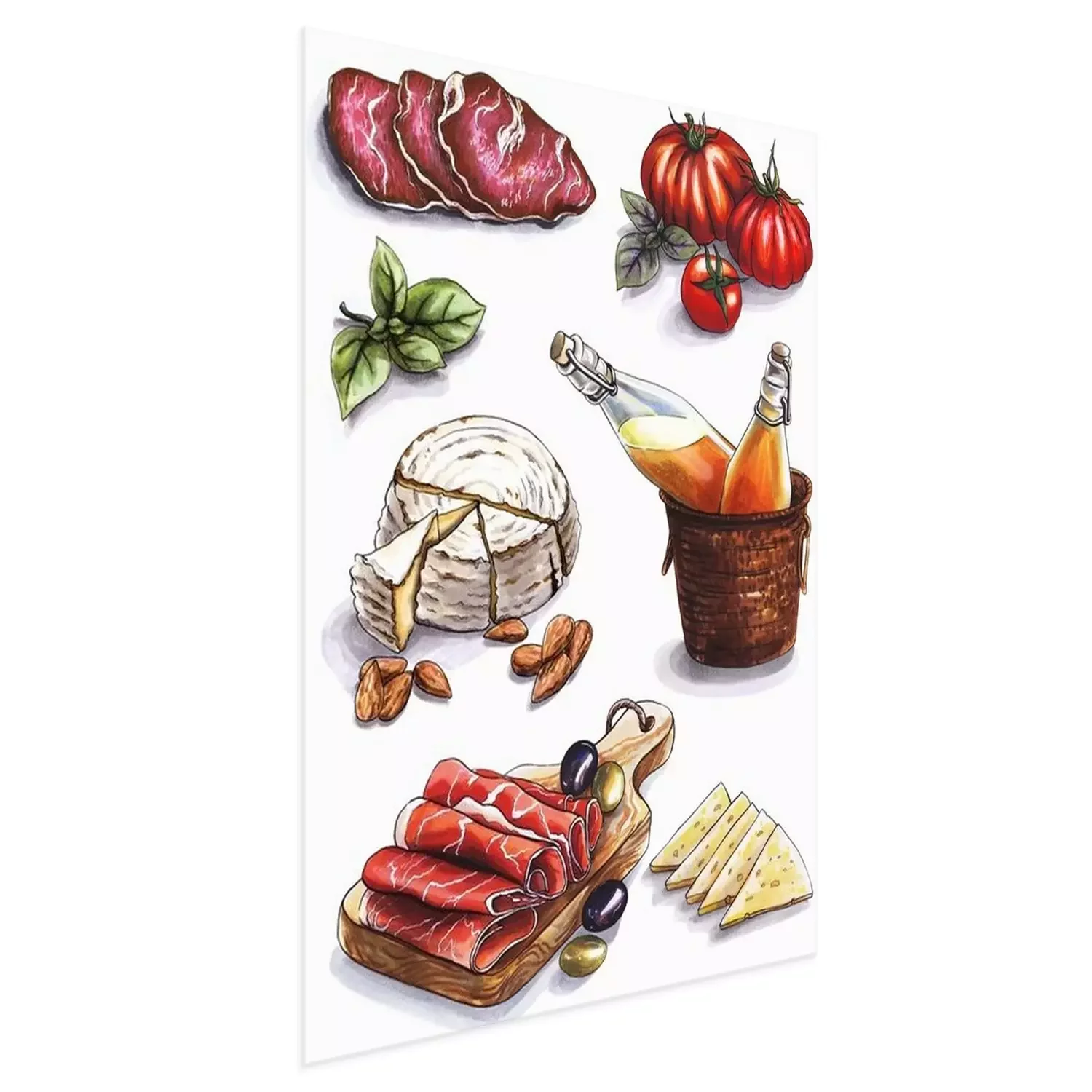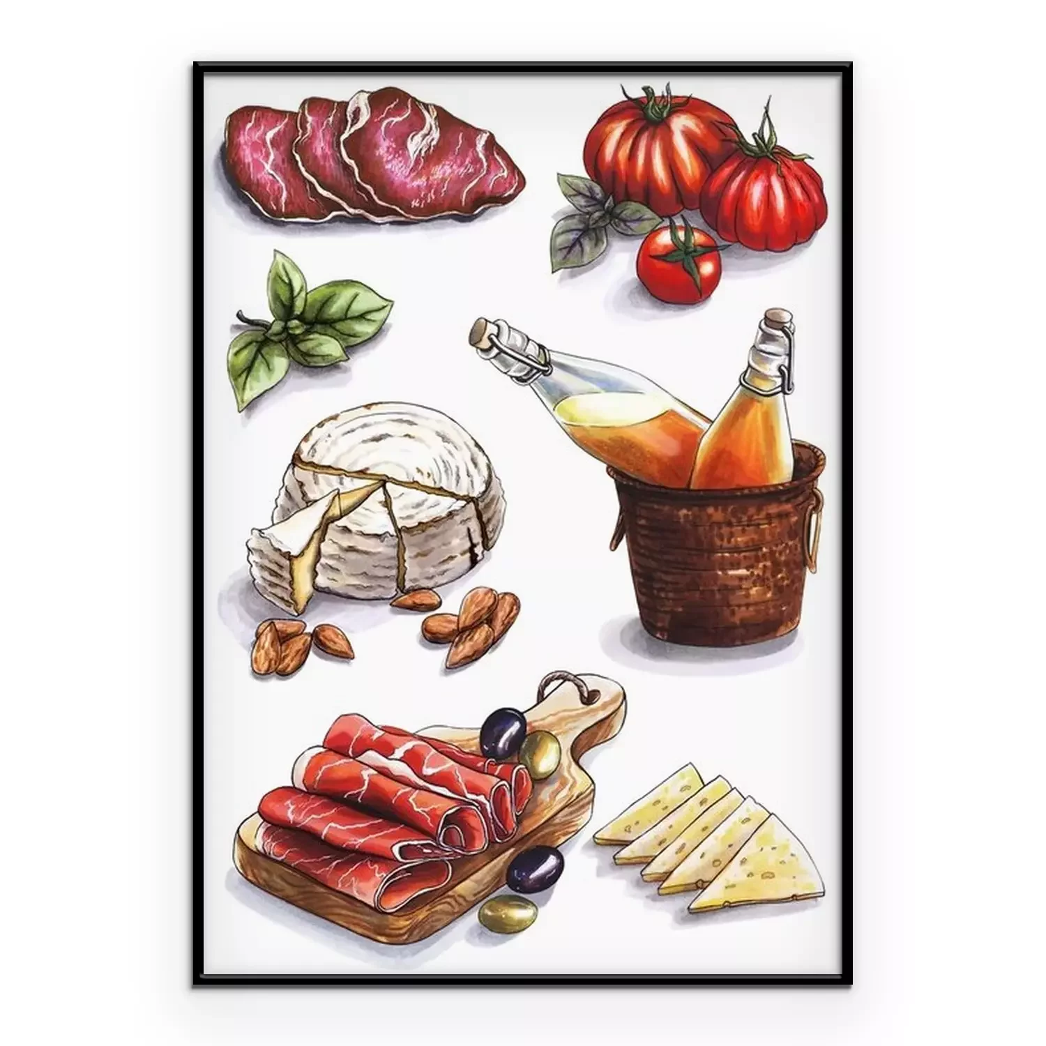 Poster Für ein Picknick vorbereitete Produkte Zeichnung in Farbe