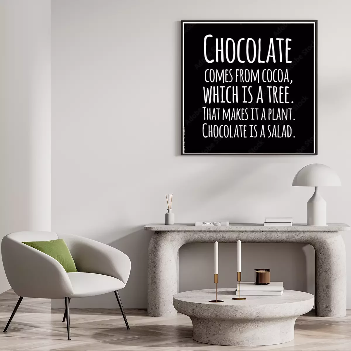 Poster: Funny, inspirational, quotation about chocolate.