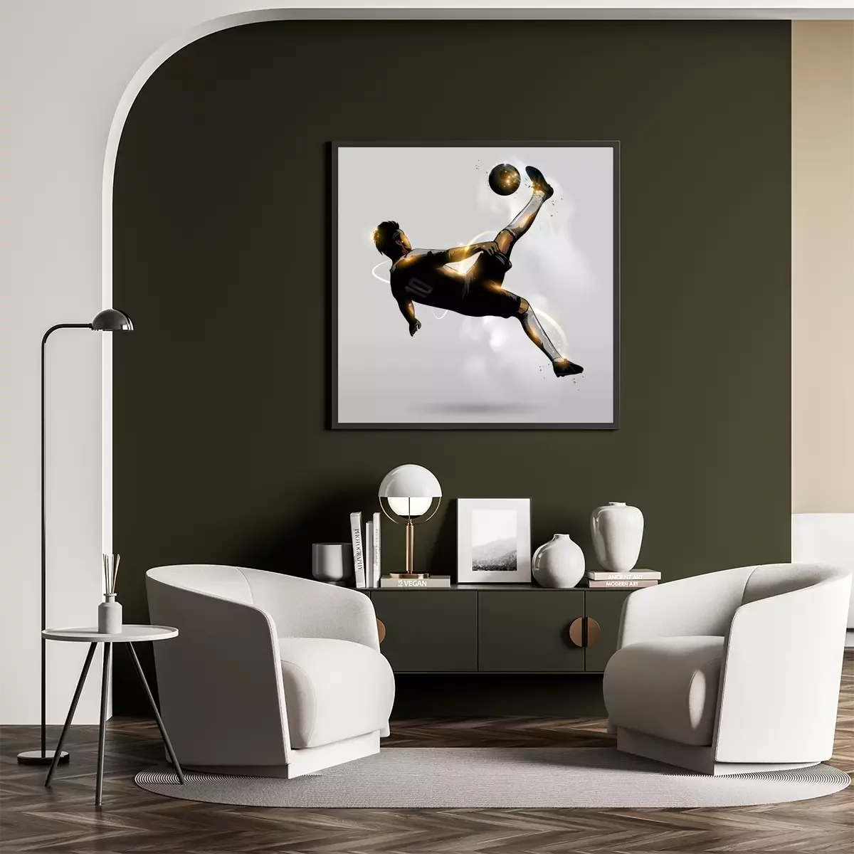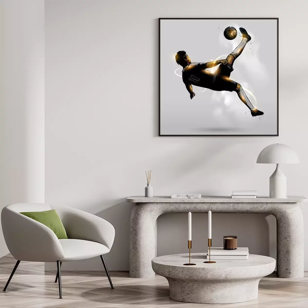 Poster Fußball 3D schwarz-goldener Fußballspieler