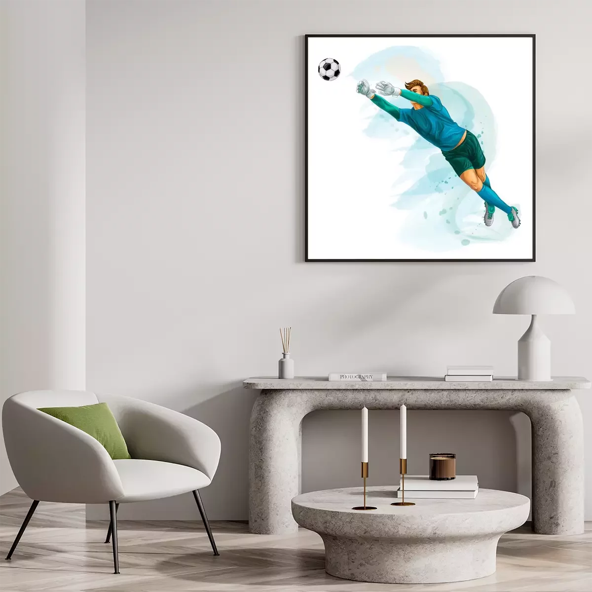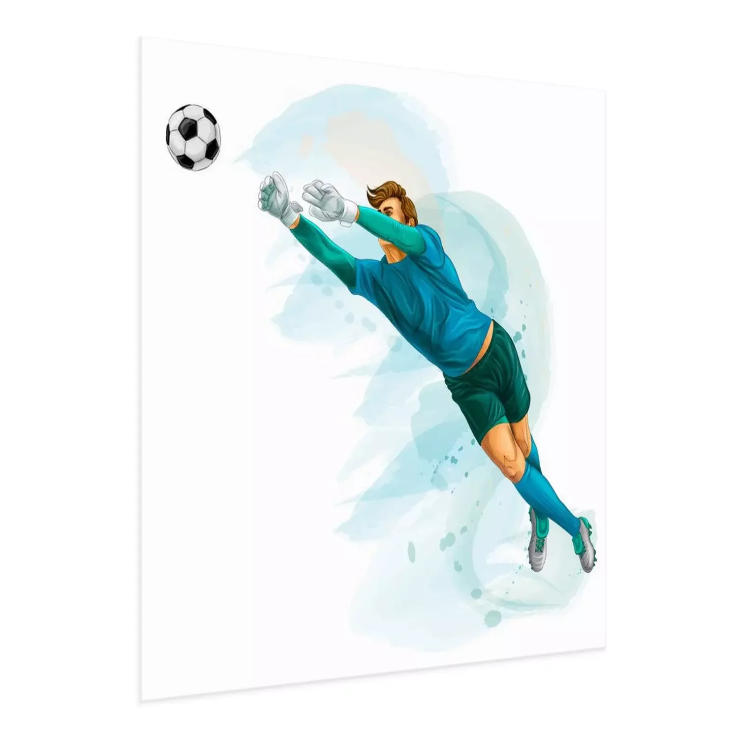 Mehrfarbige Illustration eines Fußballspielers, der den Ball kickt