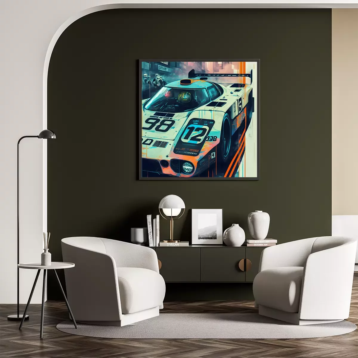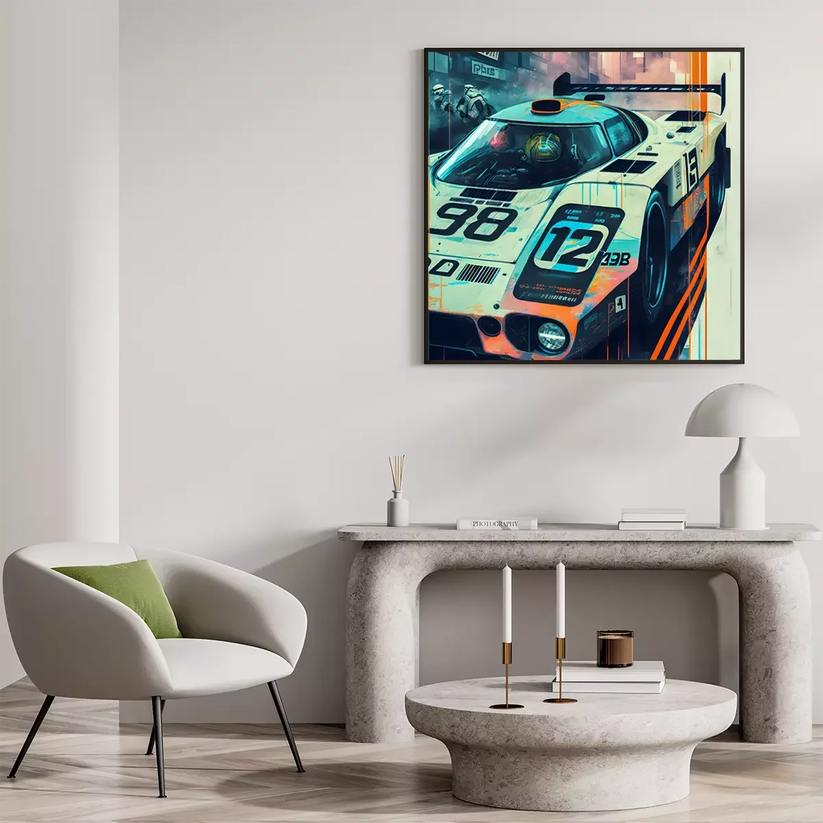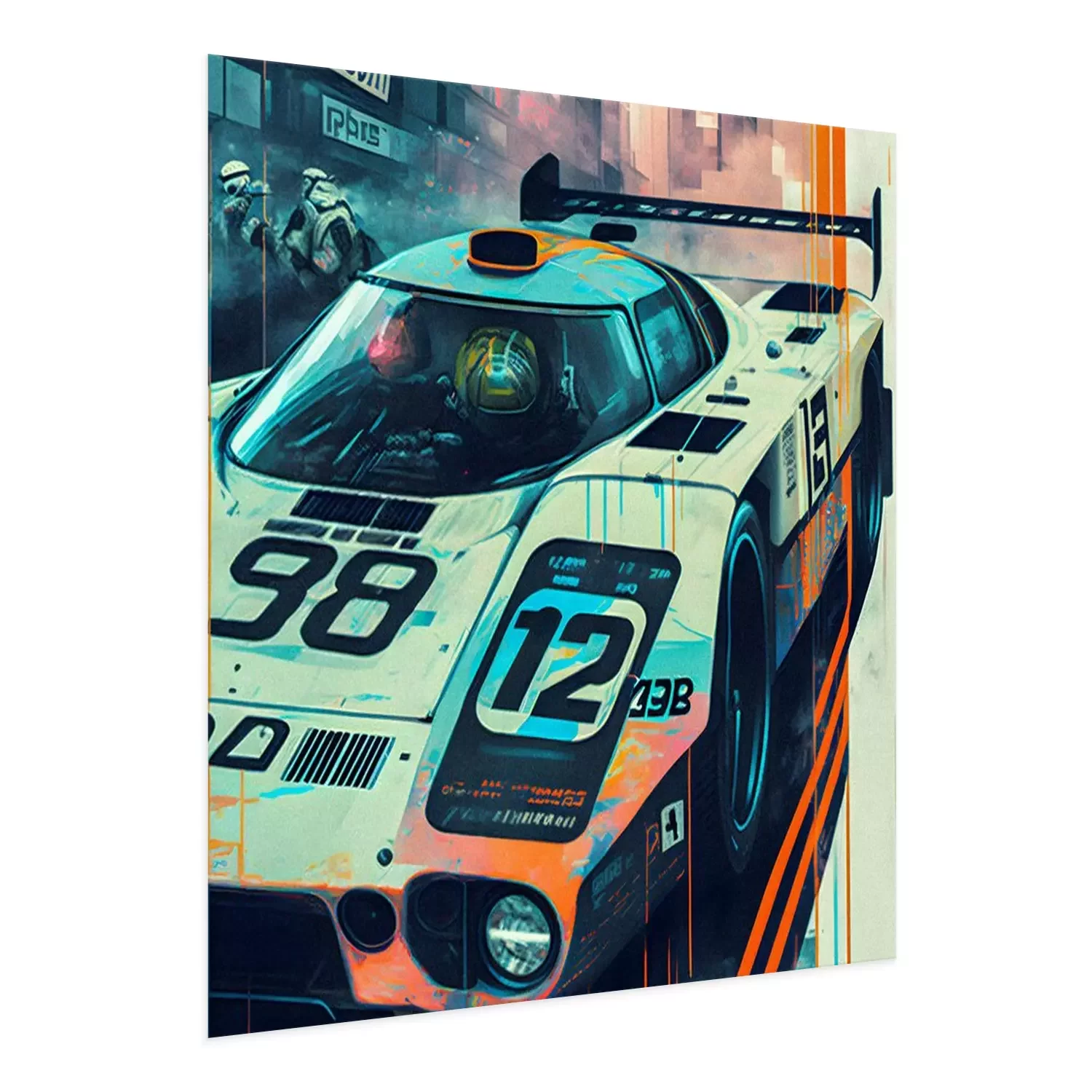 Poster: Futuristischer weißer Rennwagen