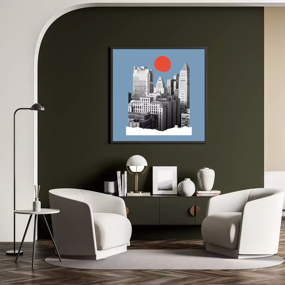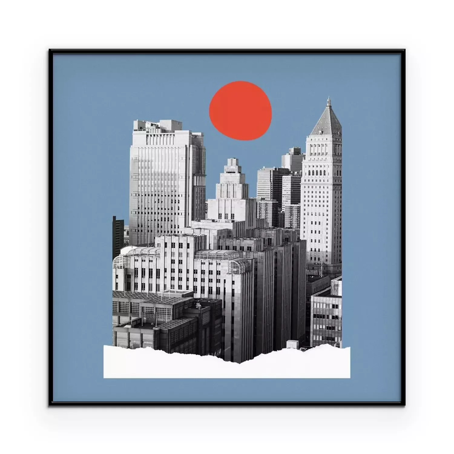 Poster: Gebäude und Mond-Pop-Art-Collage