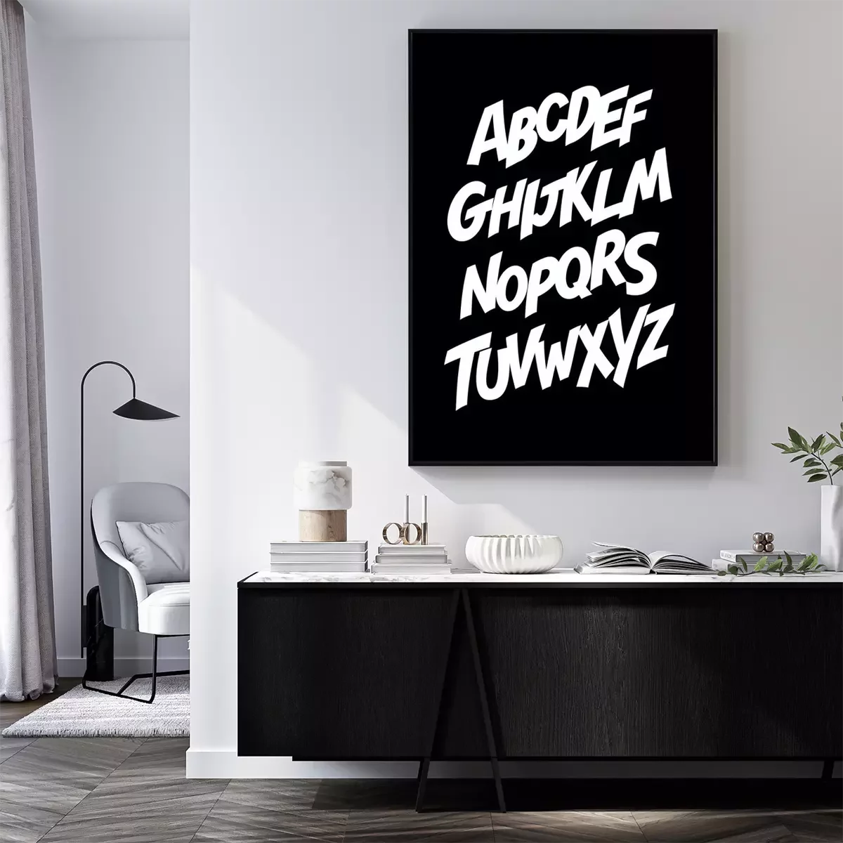 Poster: Gedruckte Buchstaben auf schwarzem Hintergrund