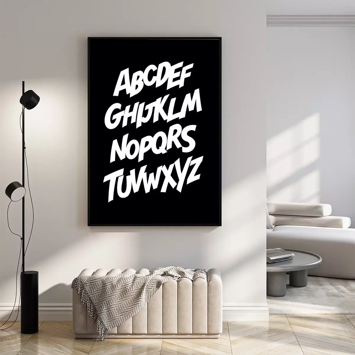 Poster Gedruckte Buchstaben auf schwarzem Hintergrund