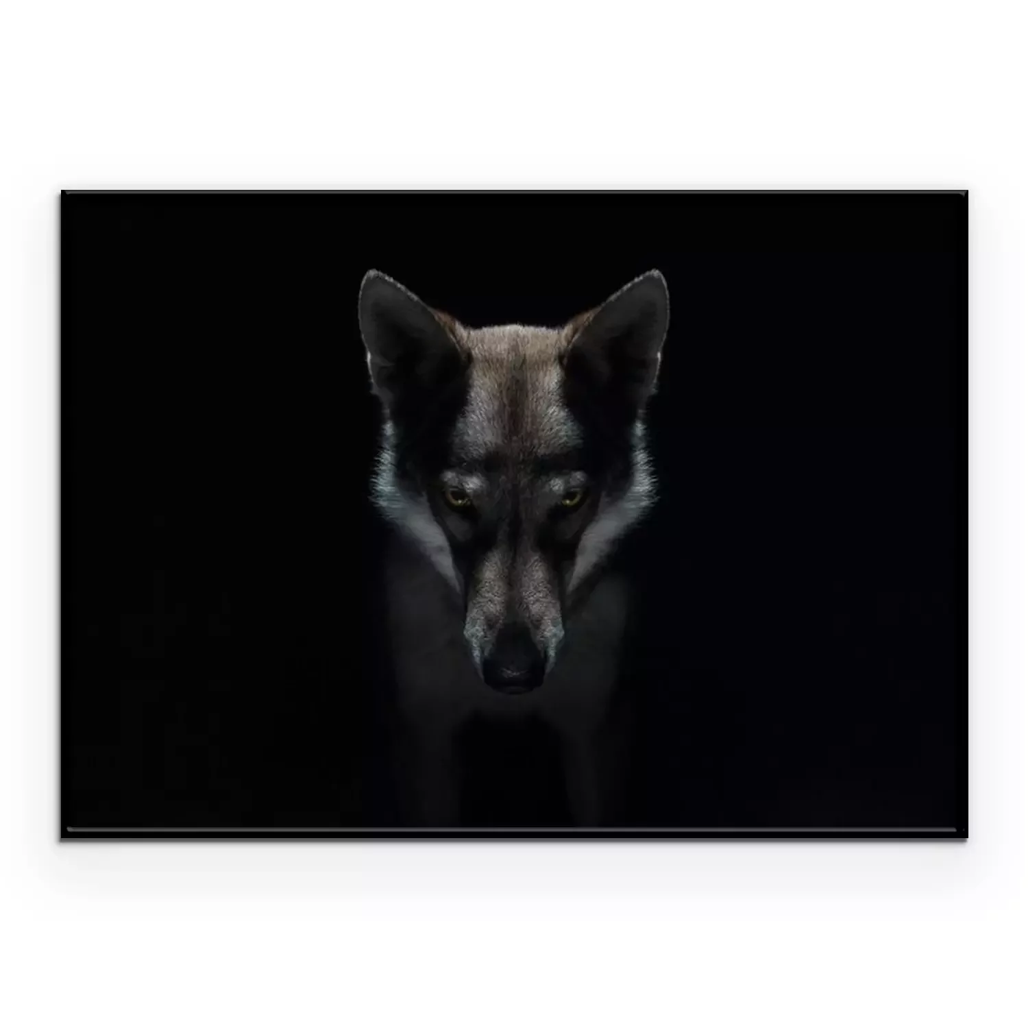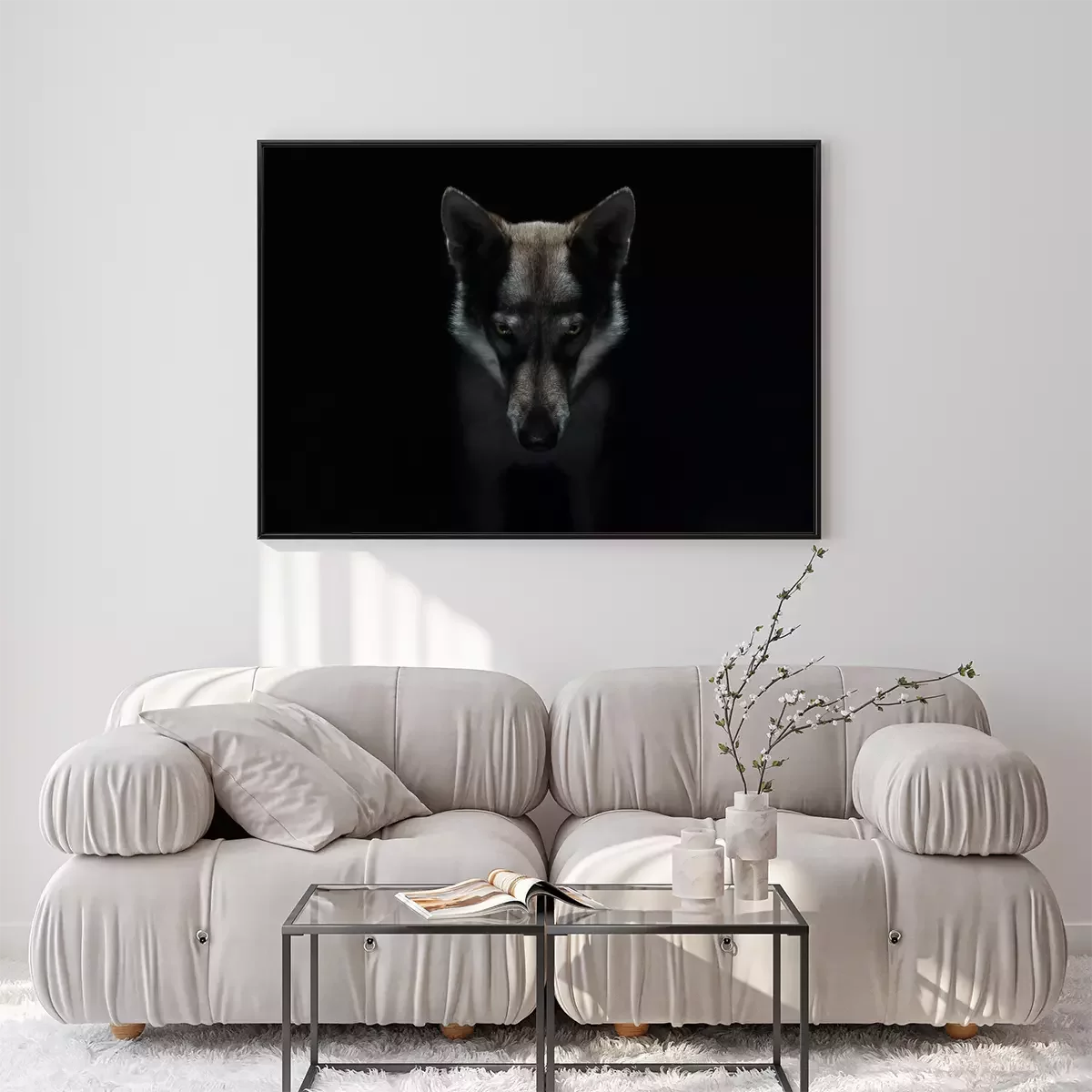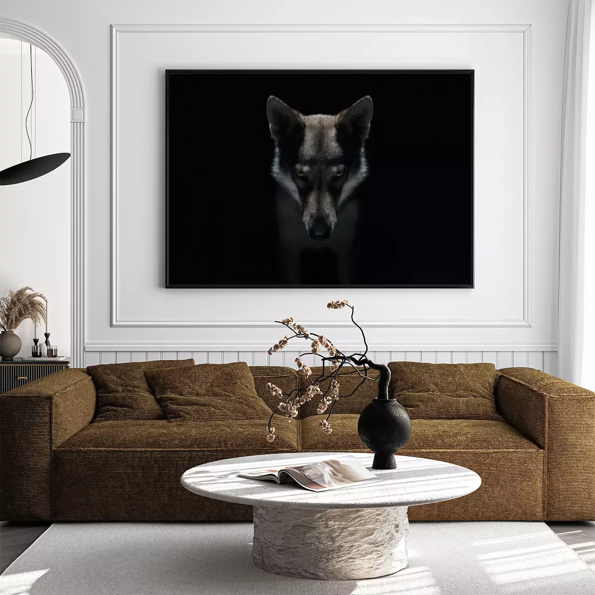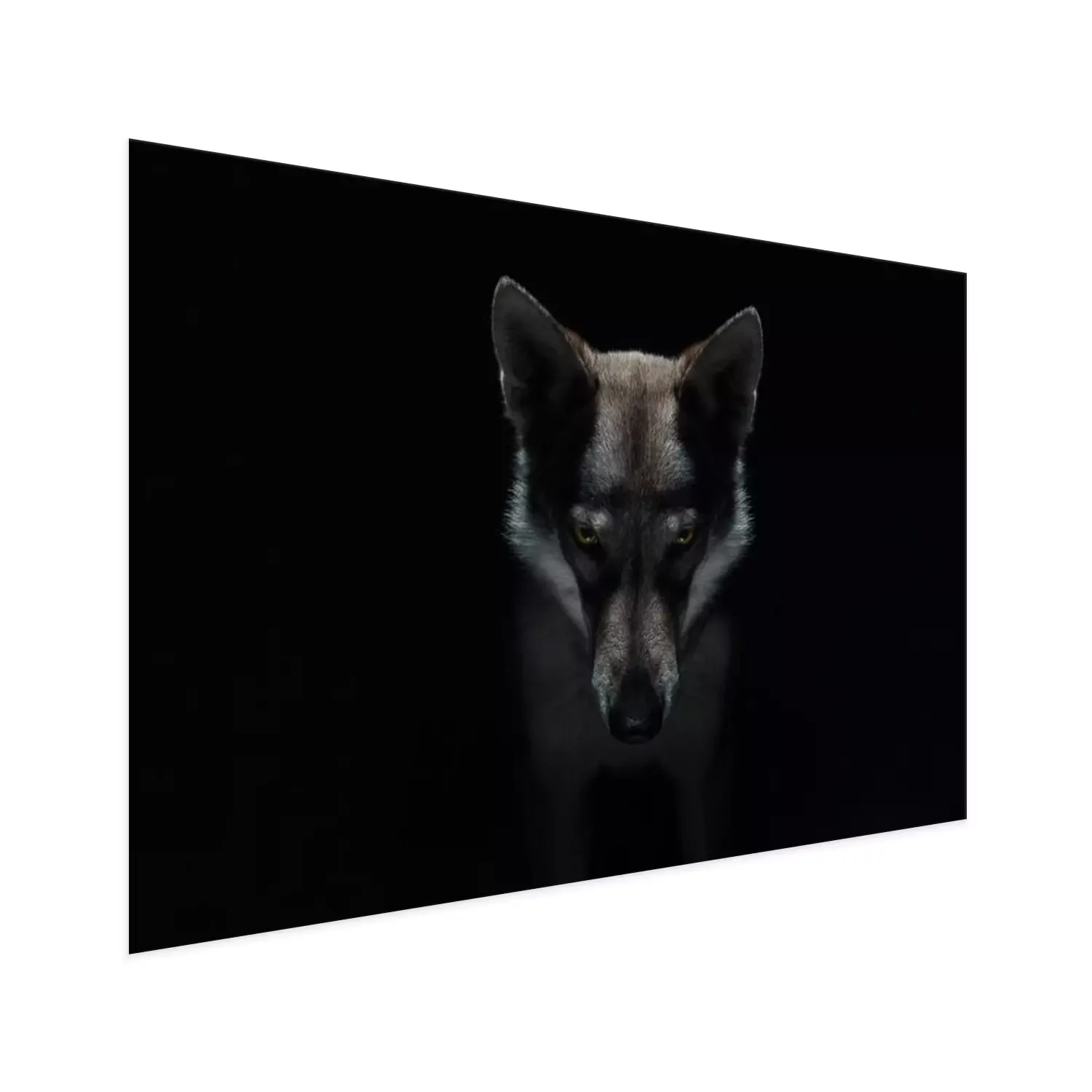 Poster: Gefährlicher Wolf auf dunklem Hintergrund