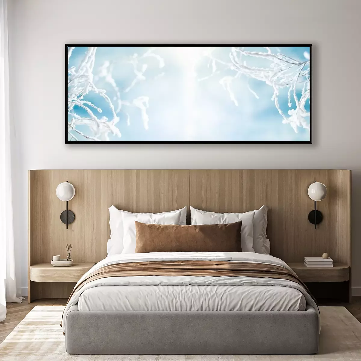 Poster: Gefrostete Zweige auf dem Hintergrund eines blauen Himmels