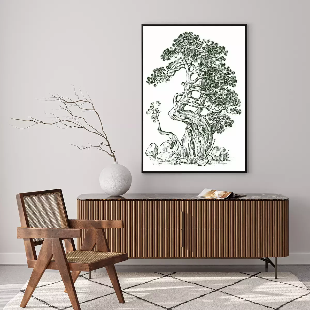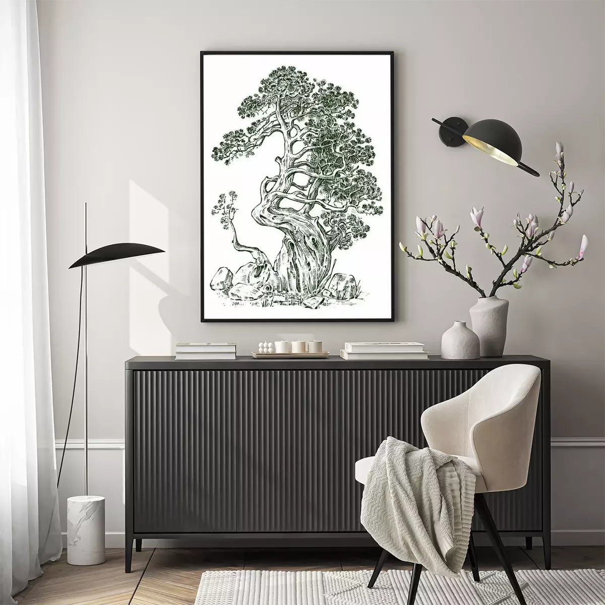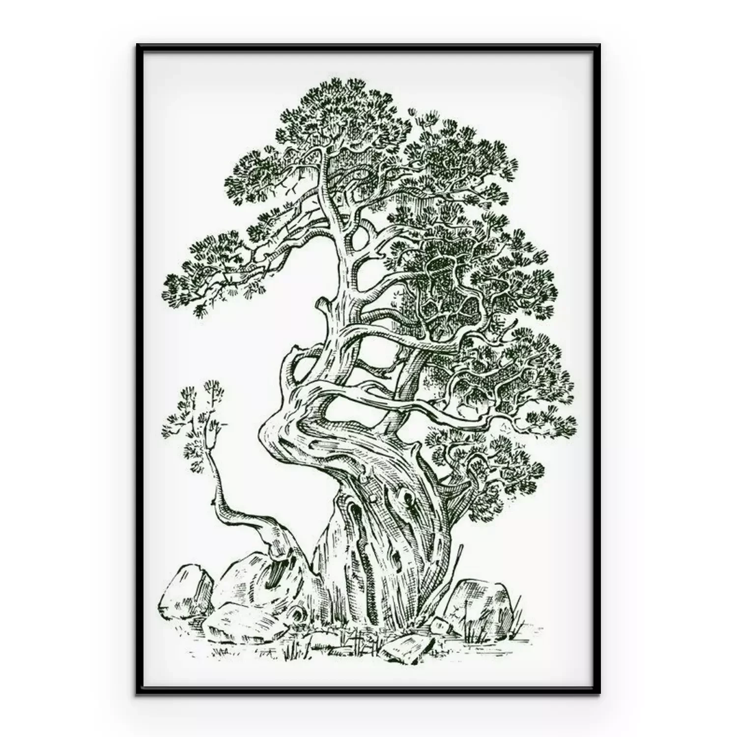 Poster: Gekrümmte Kiefer Illustration in Skizze-Ästhetik