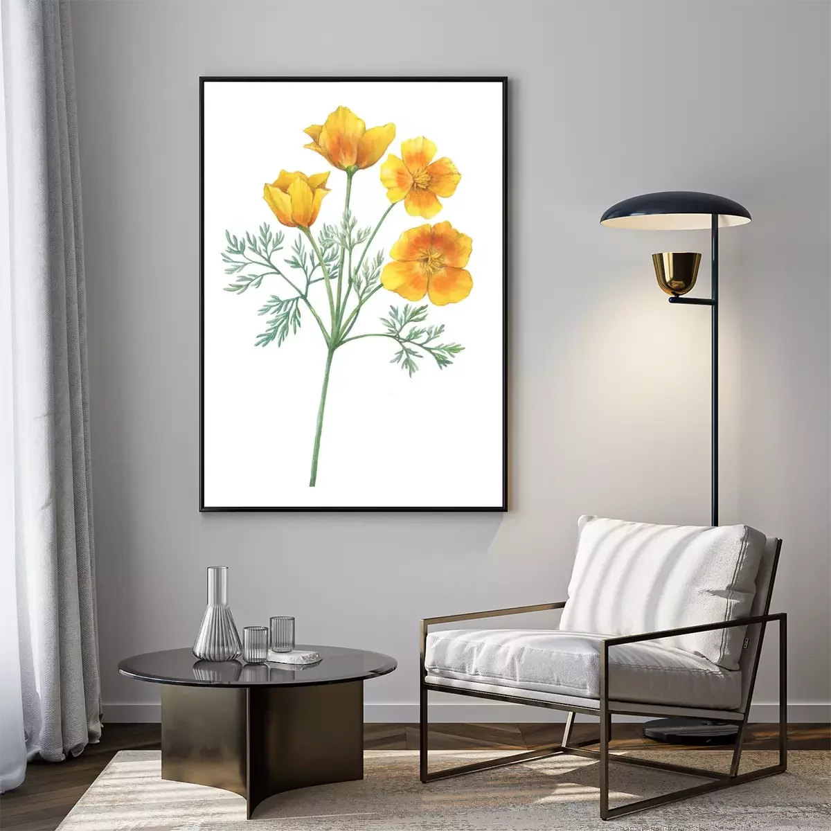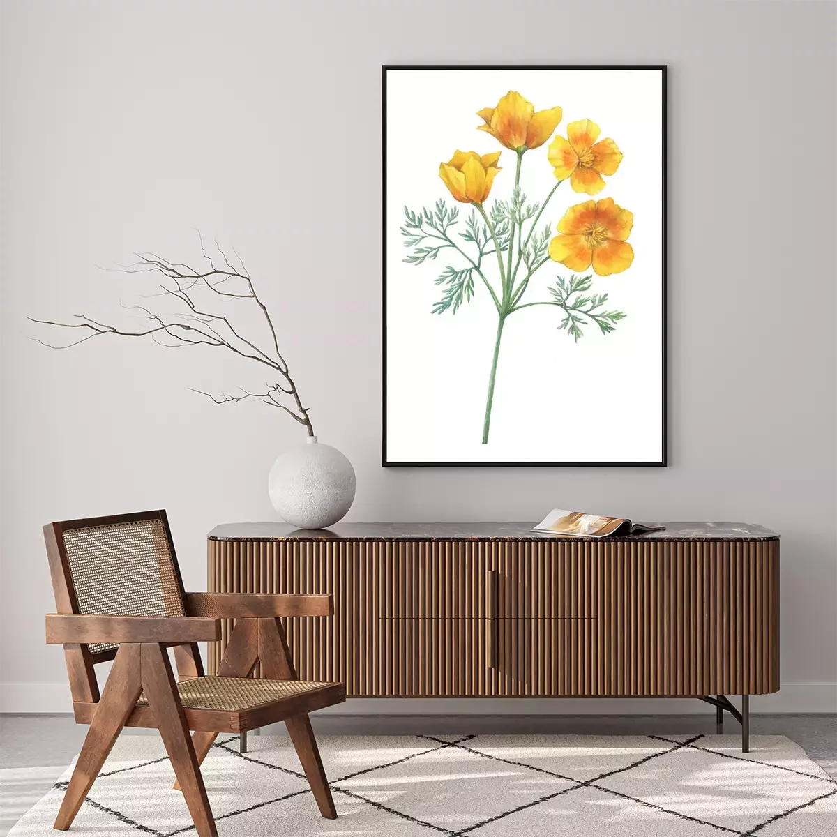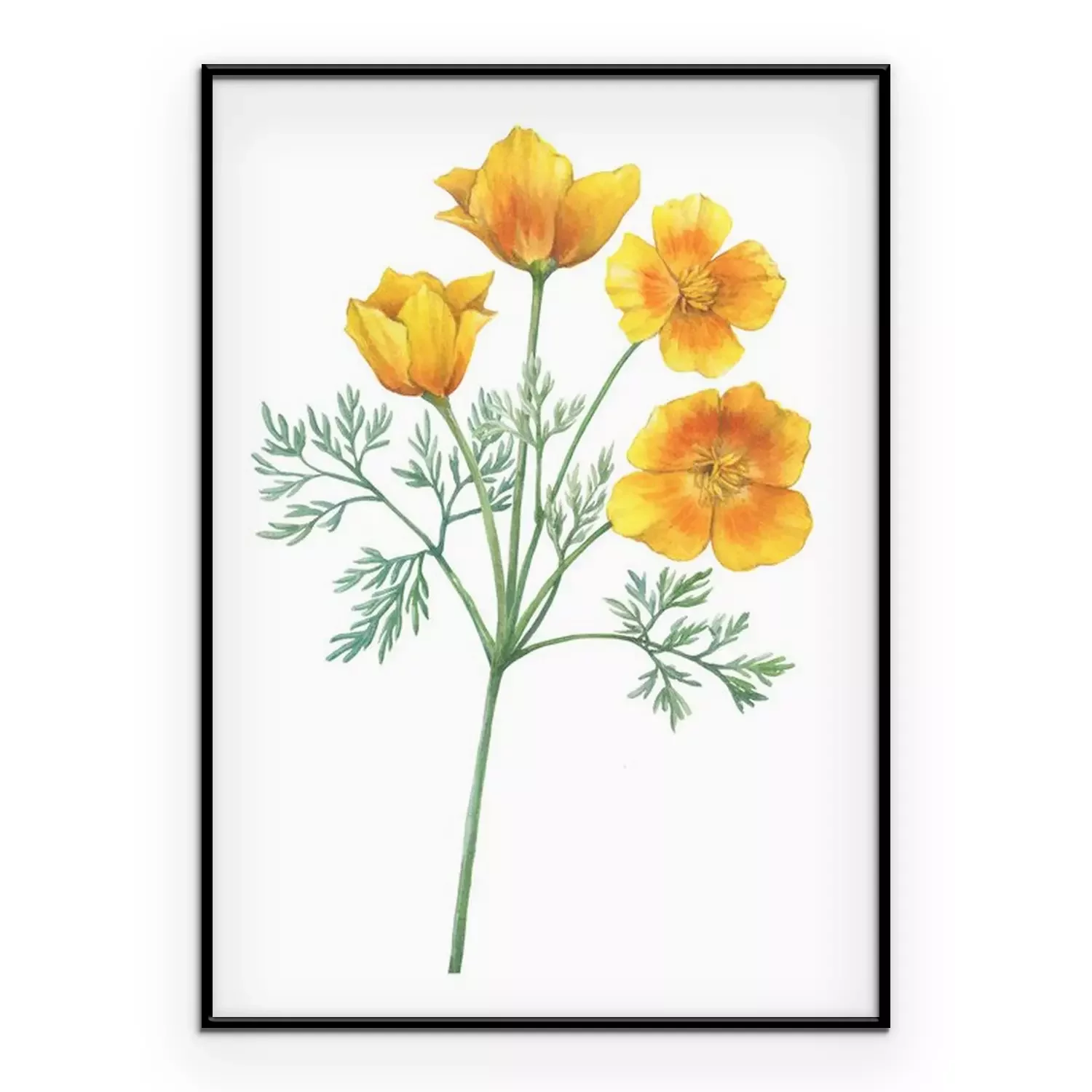 Poster: Gelbe Mohnblumen mehrere Blüten an einem Zweig