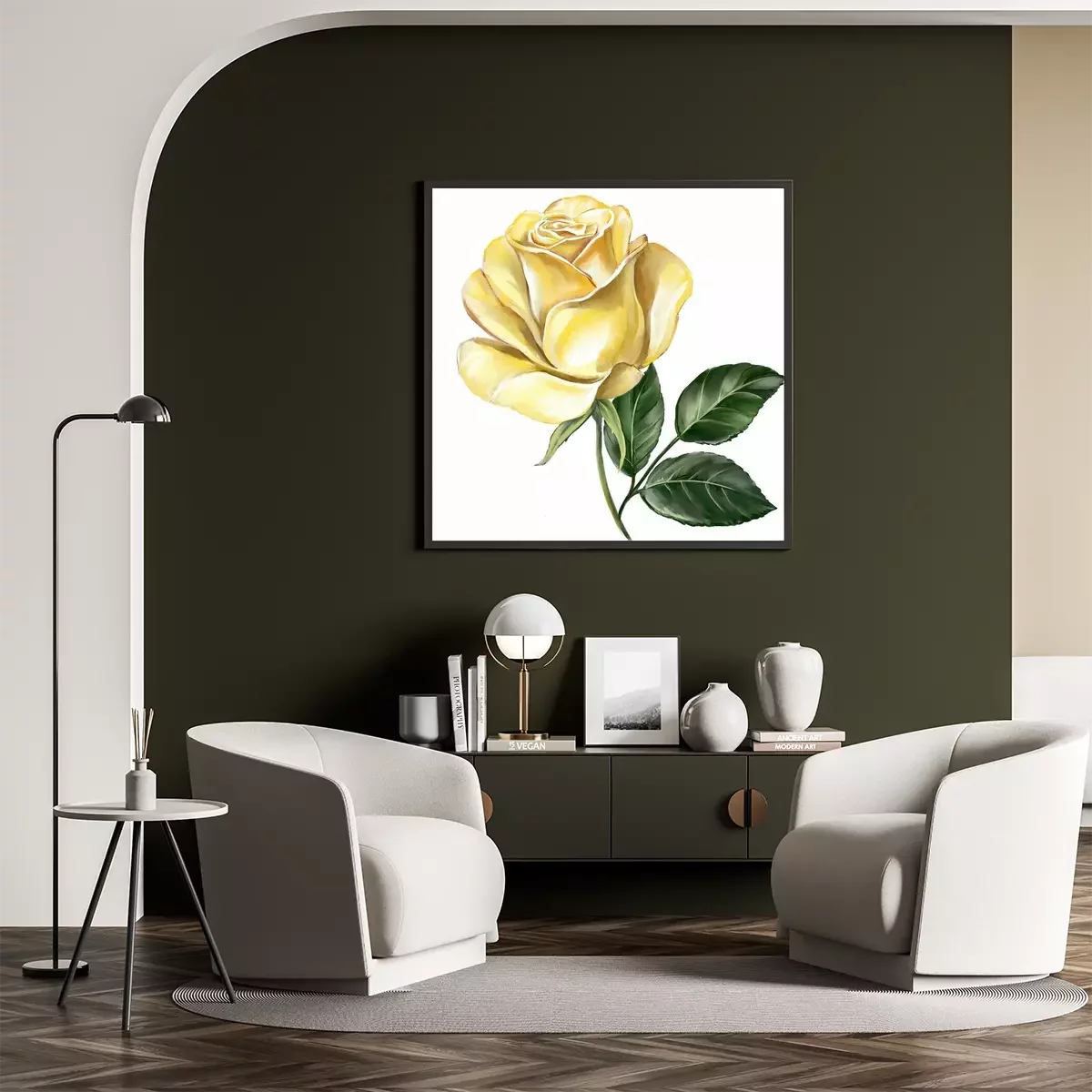 Poster: Gelbe Rose auf einem kurzen Zweig