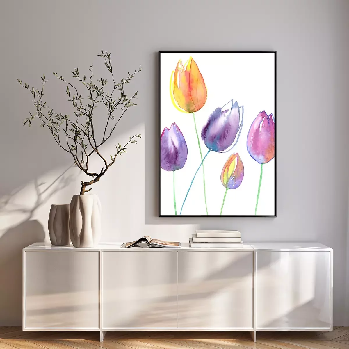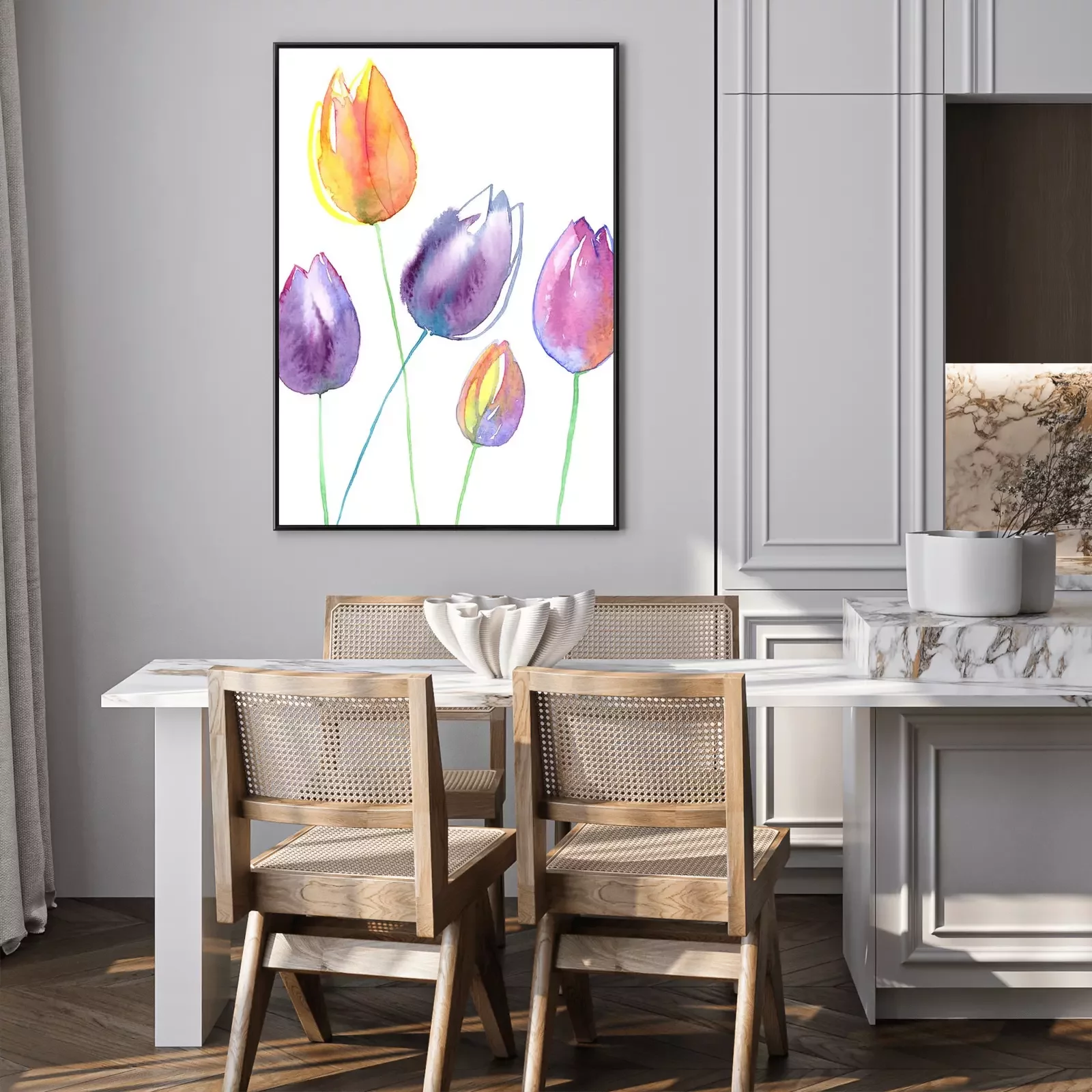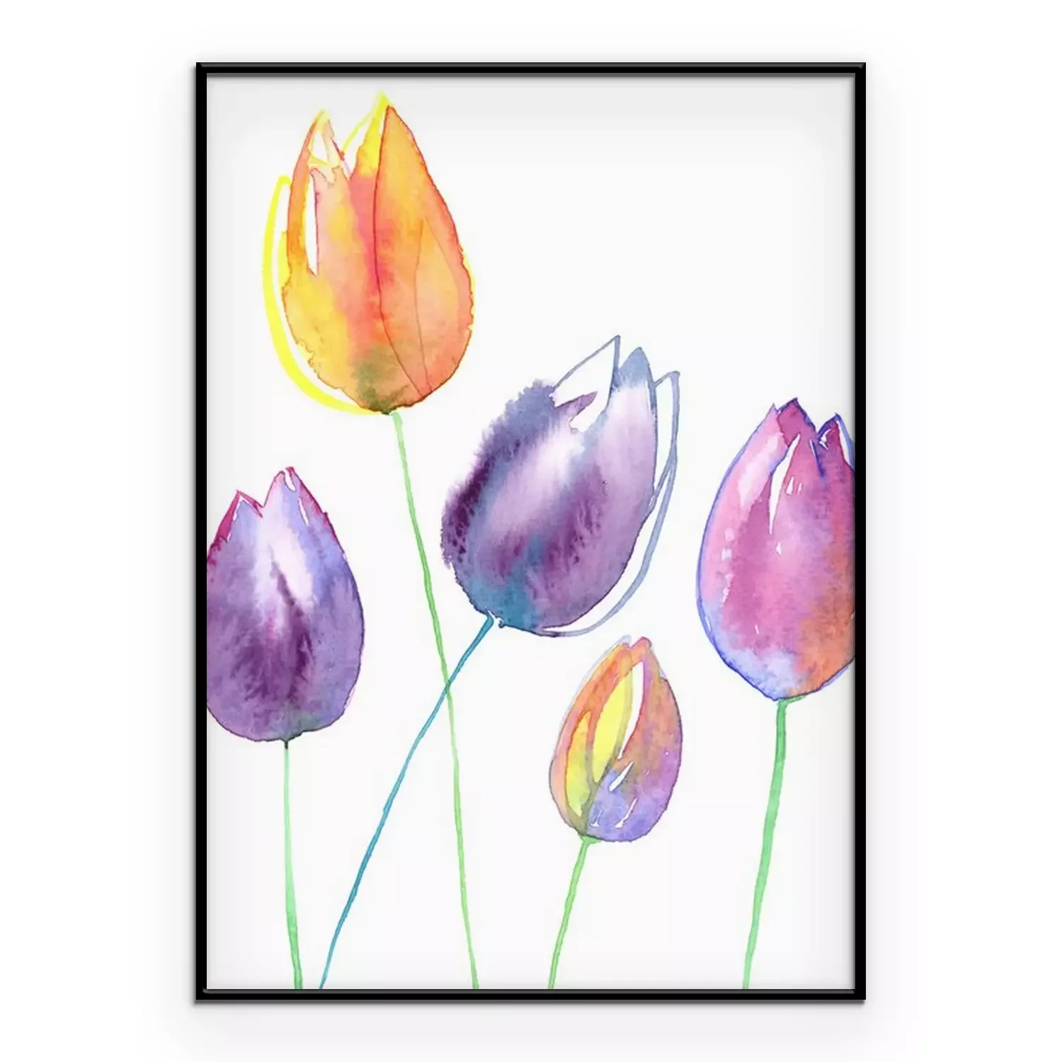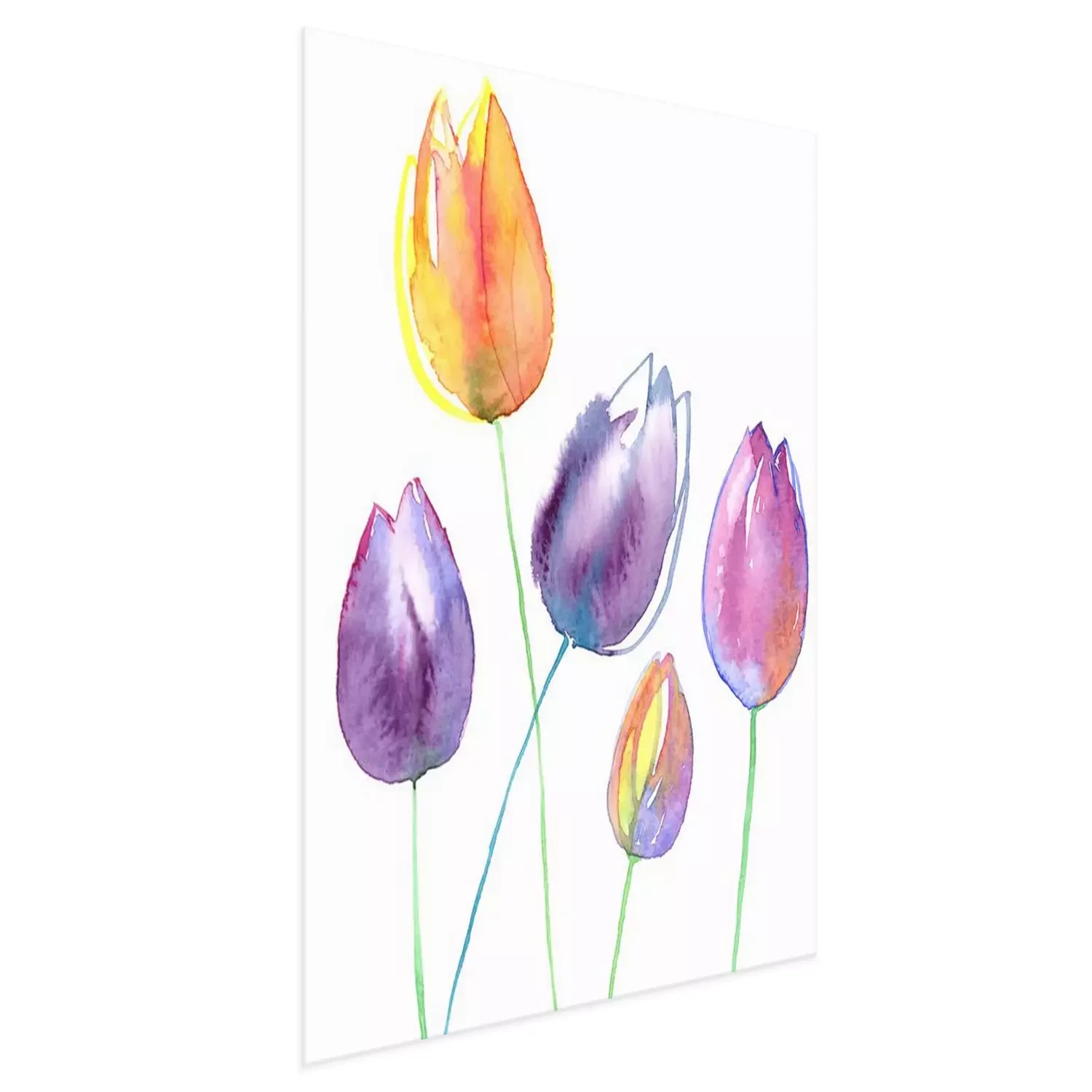 Poster: Gelbe und lila Tulpen gefüllt mit Aquarell