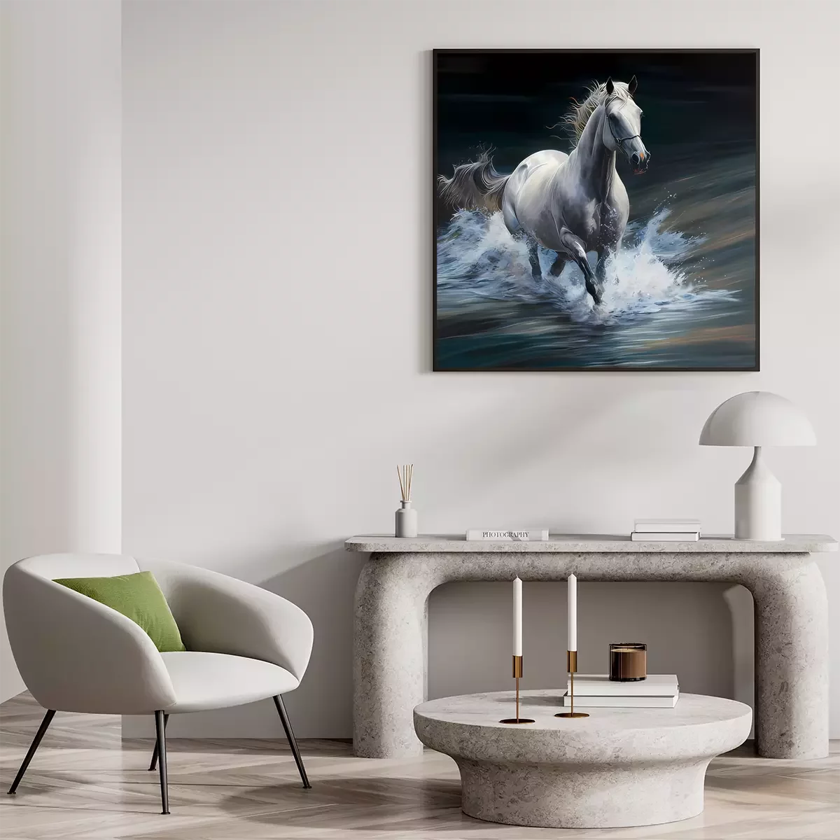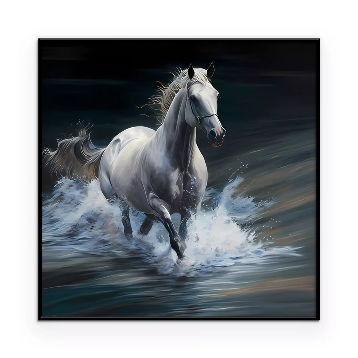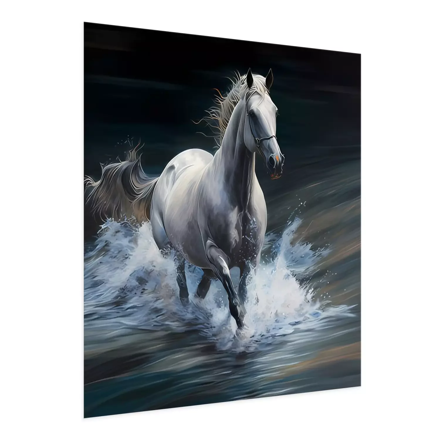 Poster: Gemalte weiße Stute im Galopp