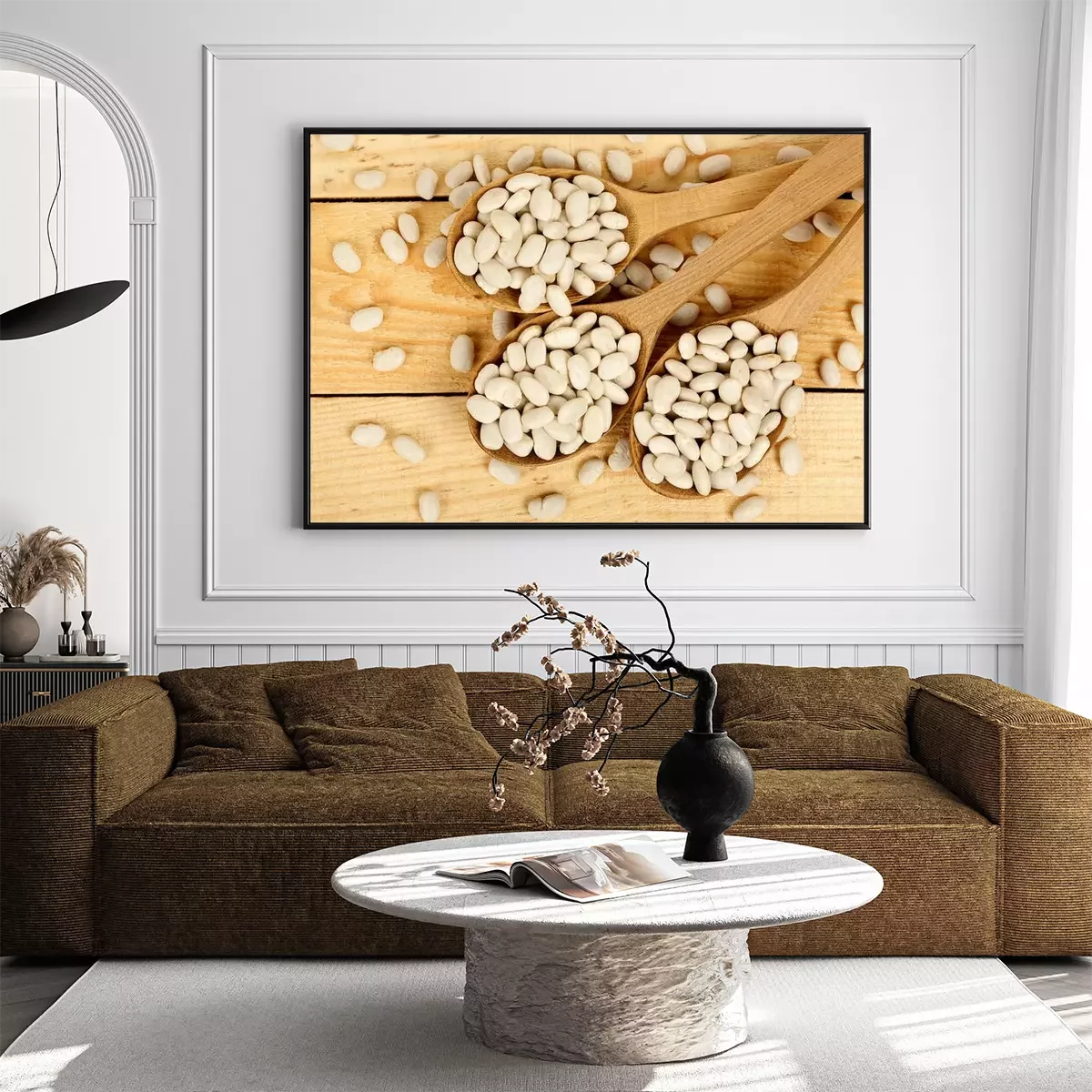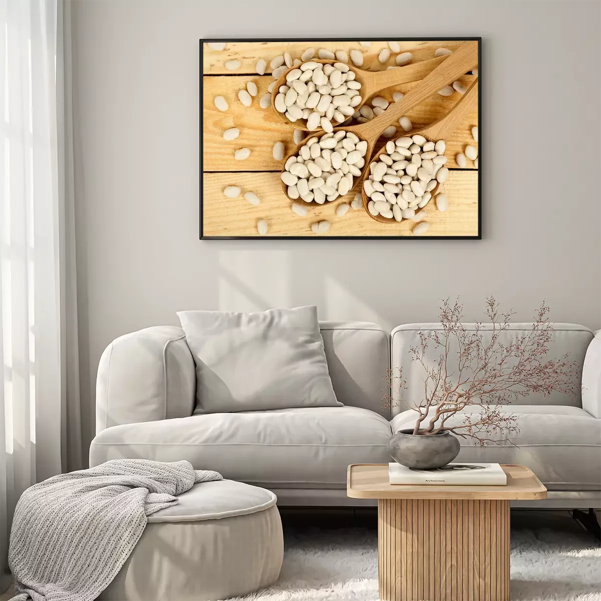 Poster: Gemüse Bohnen auf Holzlöffeln