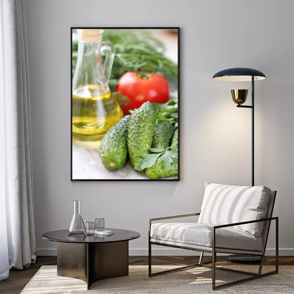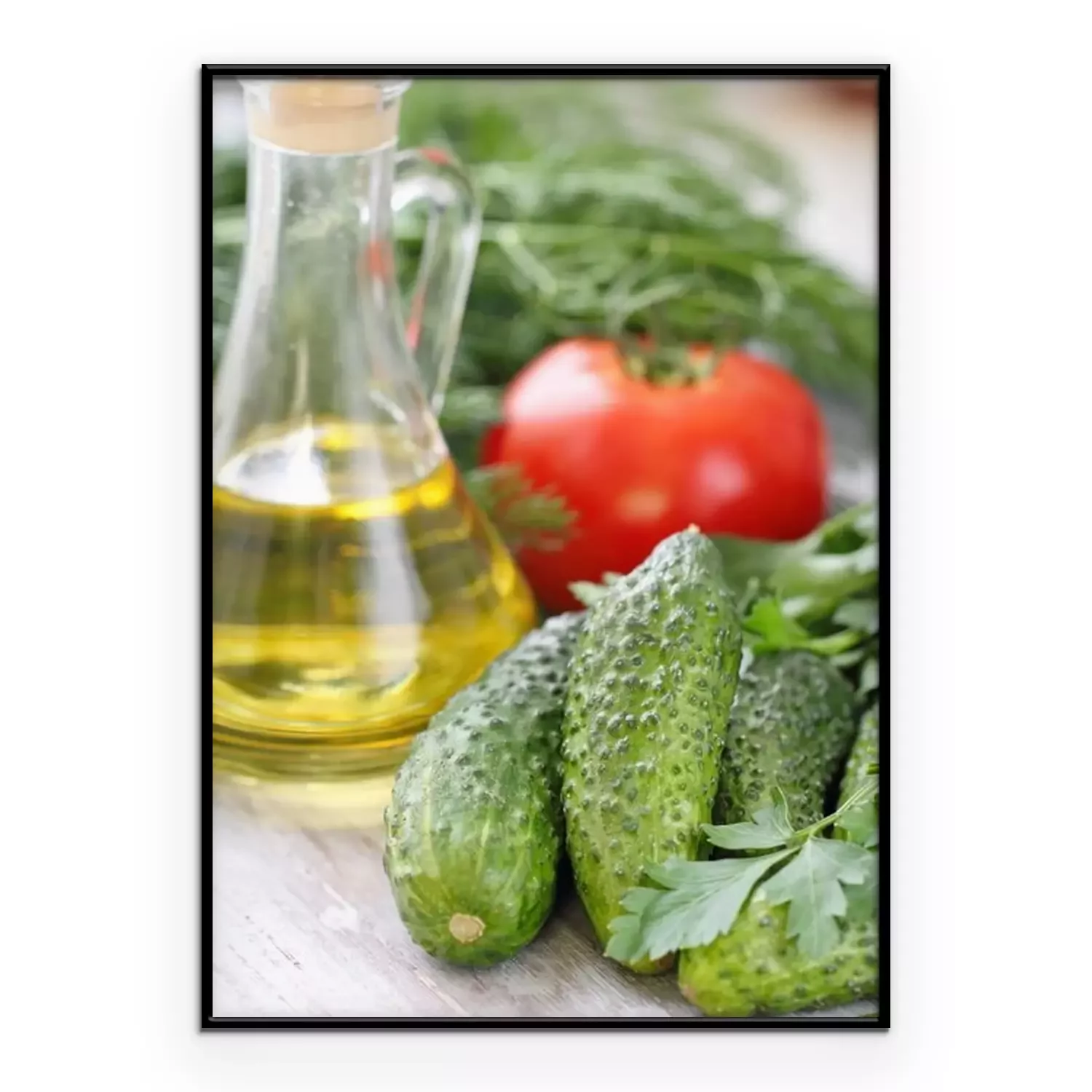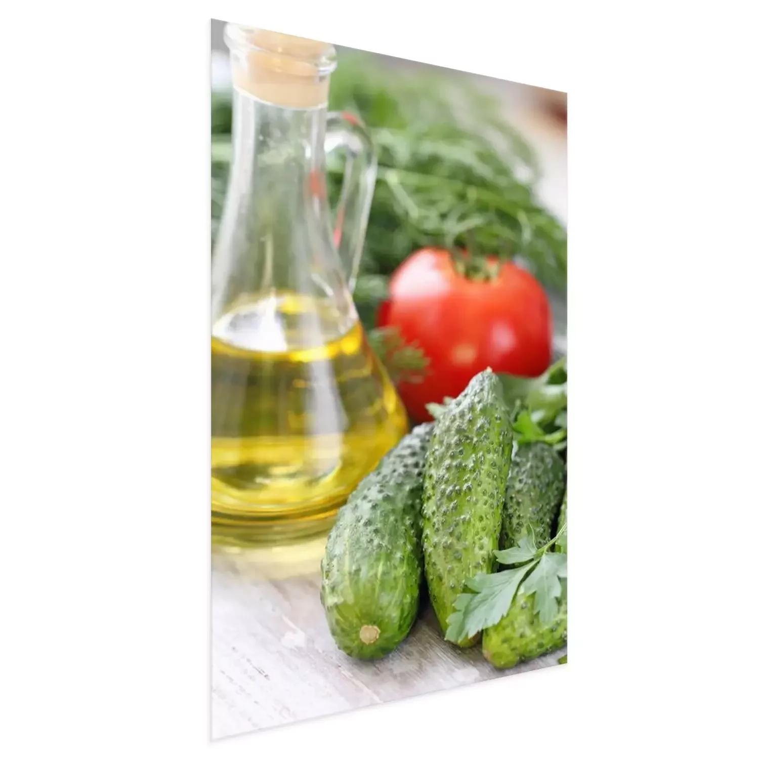 Poster: Gemüse Gurken Tomate und Olivenöl