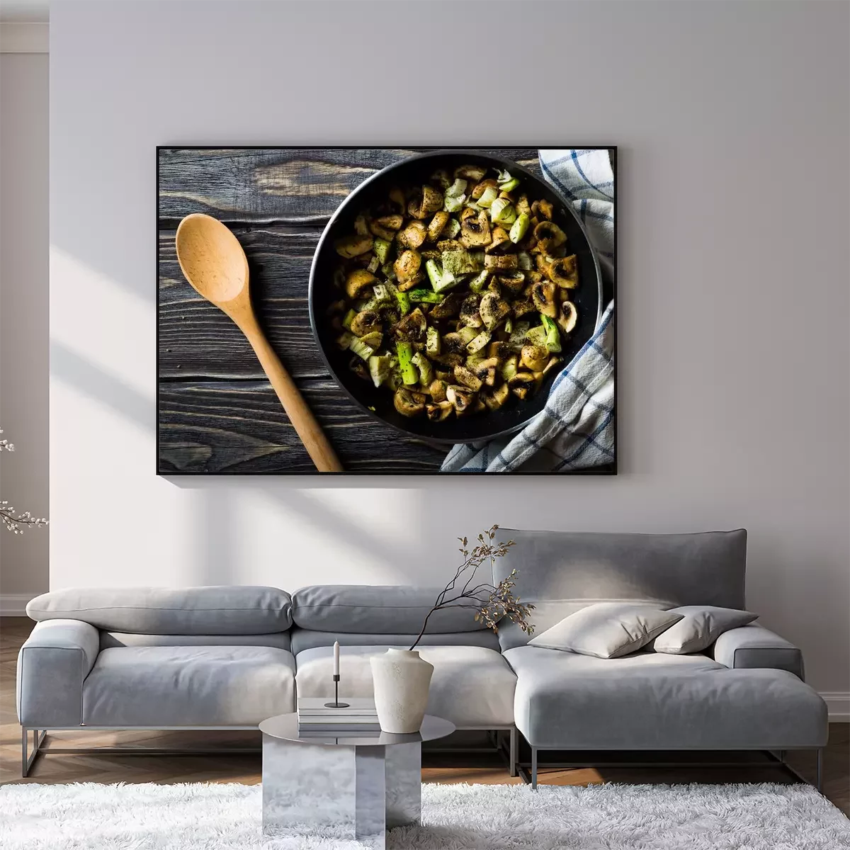 Poster: Gemüse mit Champignons in der Pfanne gedünstet