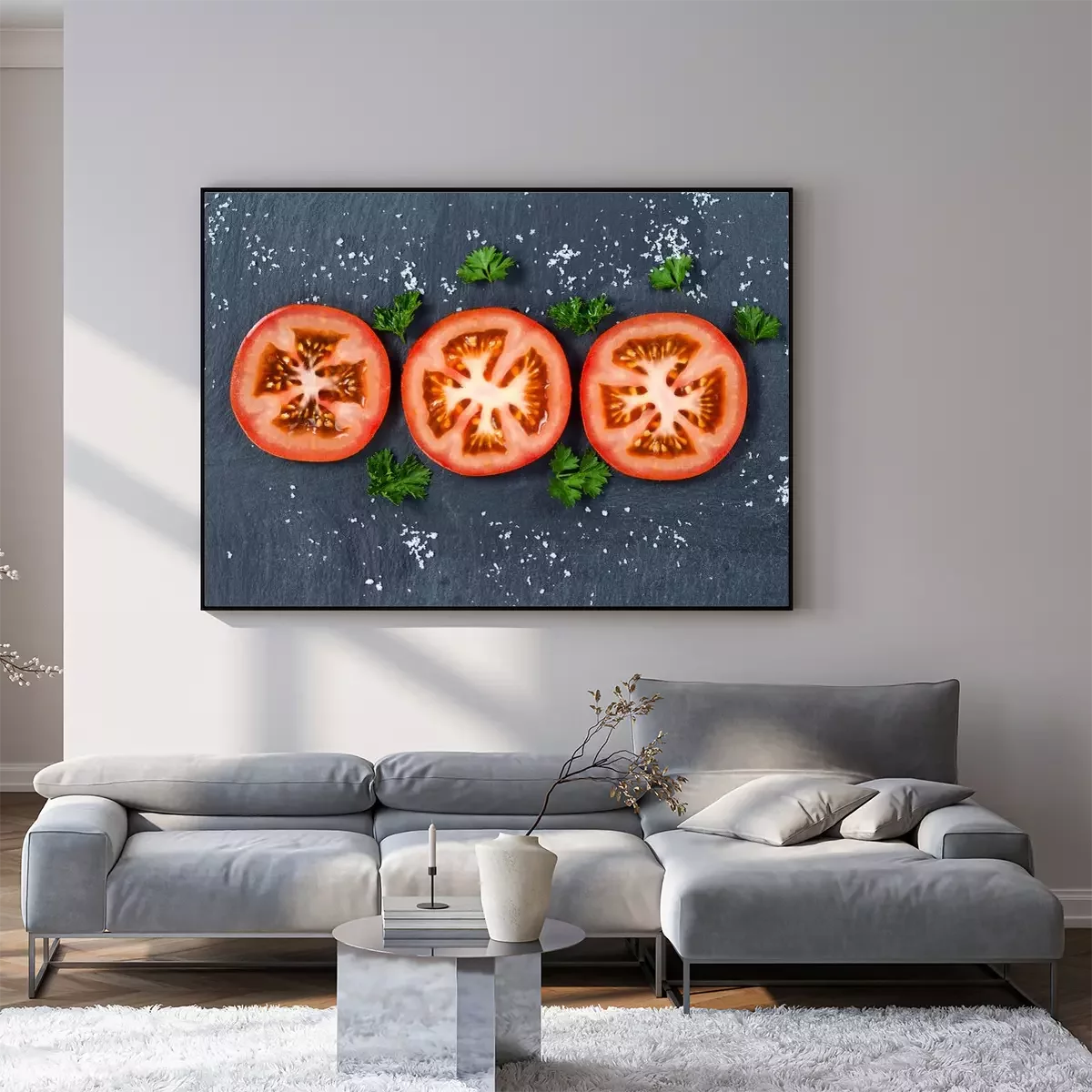 Poster: Gemüse nebeneinander angeordnete Tomatenscheiben
