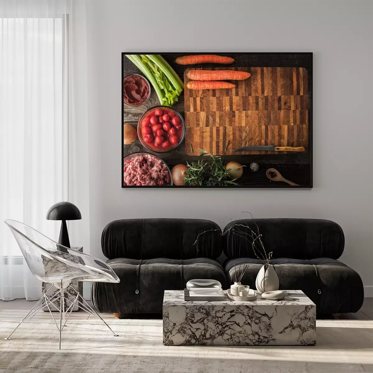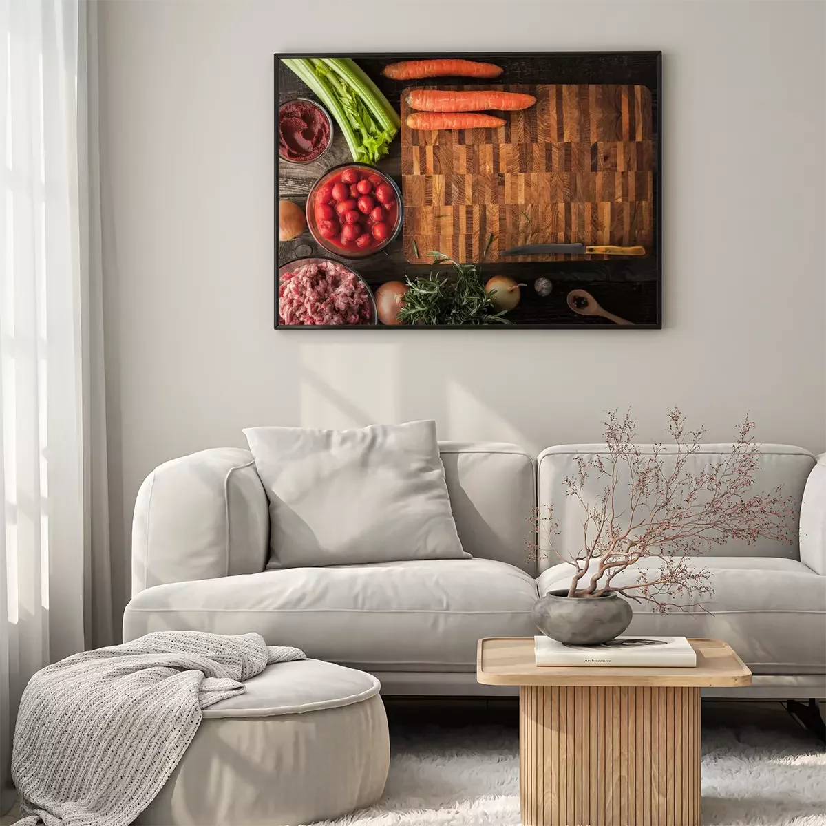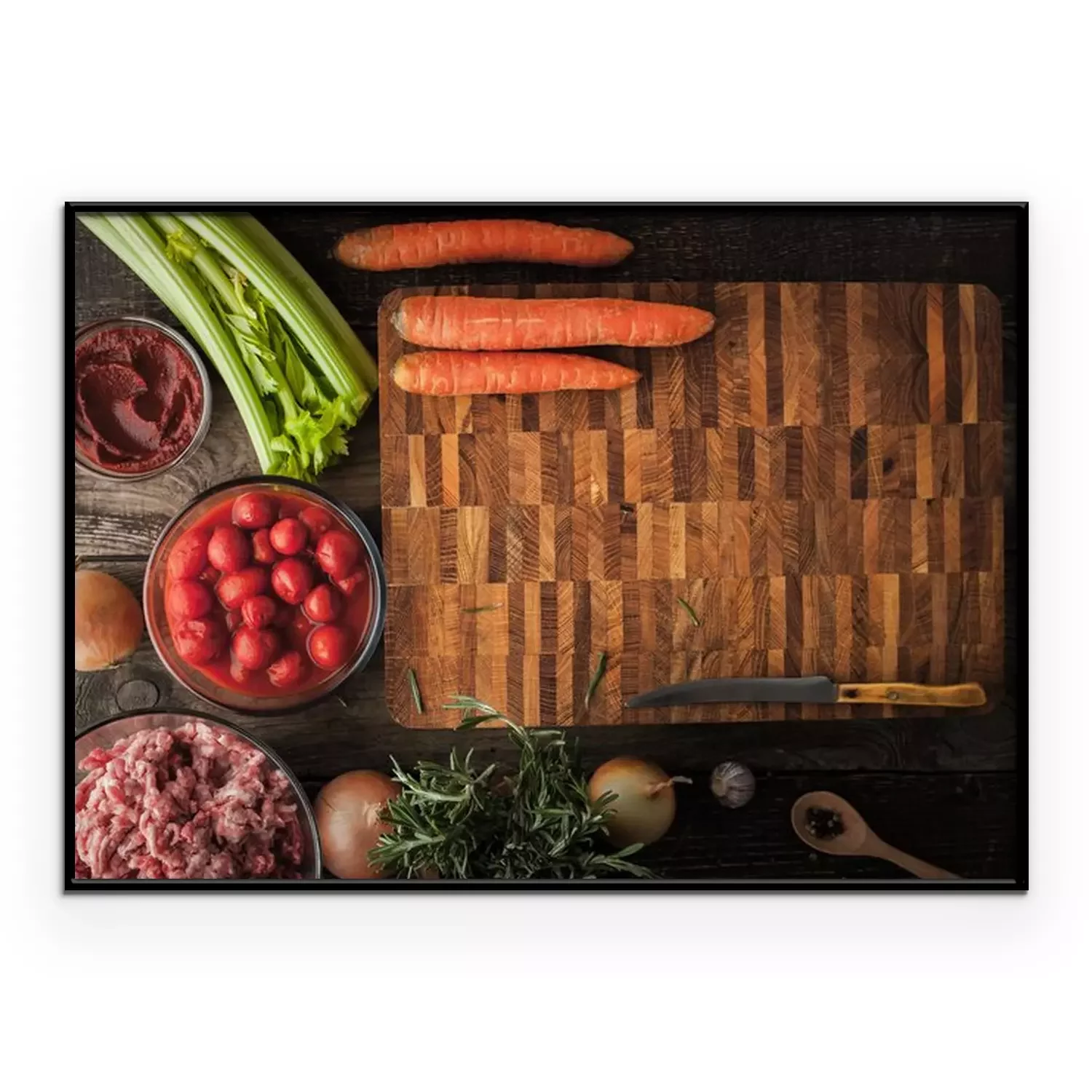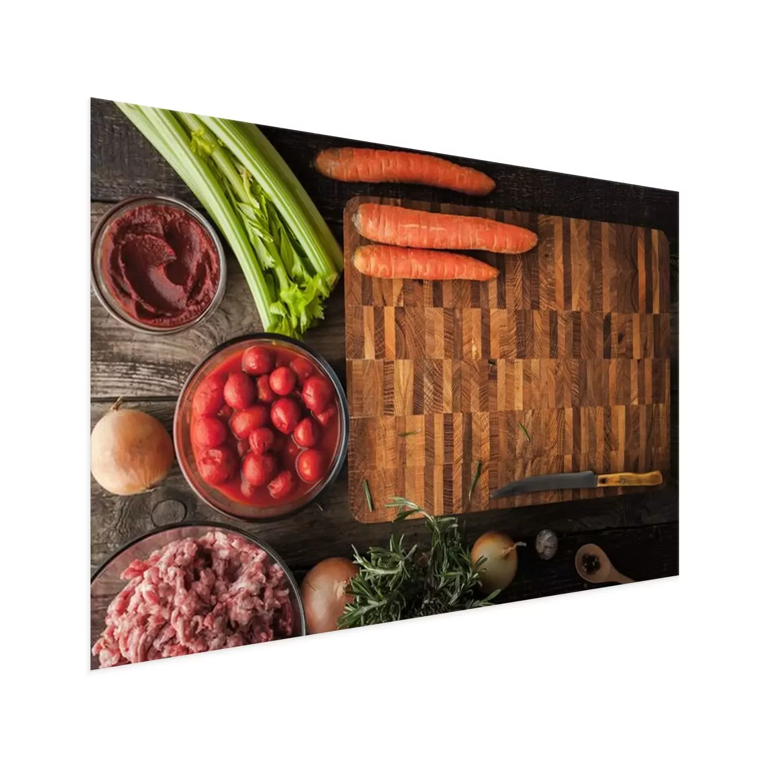 Poster: Gemüse und Fleisch in der Küche zubereitet