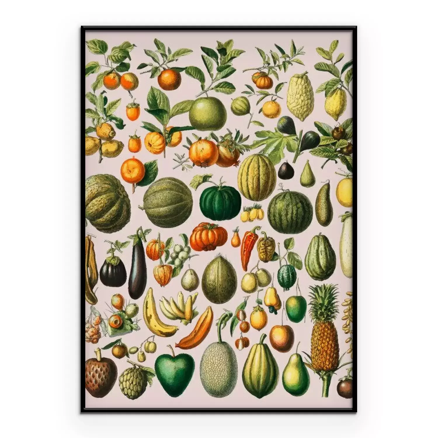 Poster: Gemüse und Früchte auf Vintage-Illustration
