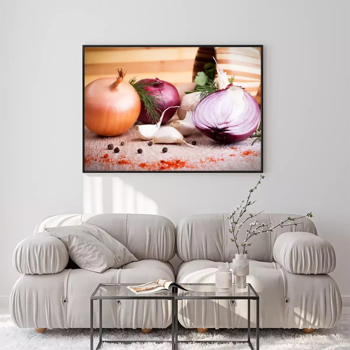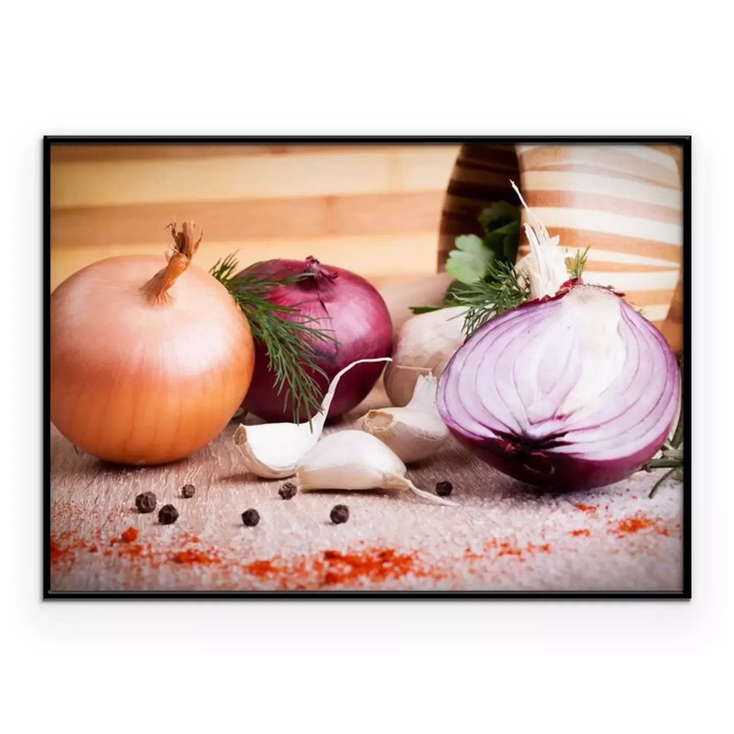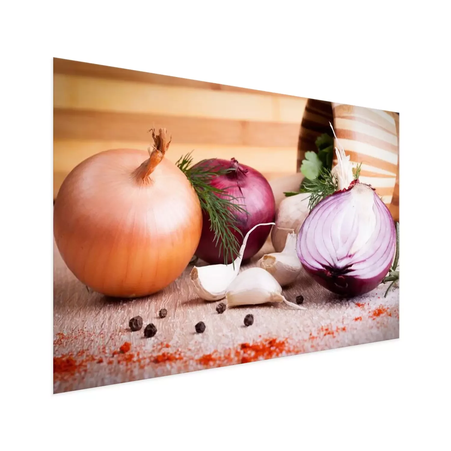 Poster Gemüse Zwiebel Knoblauch und Gewürze