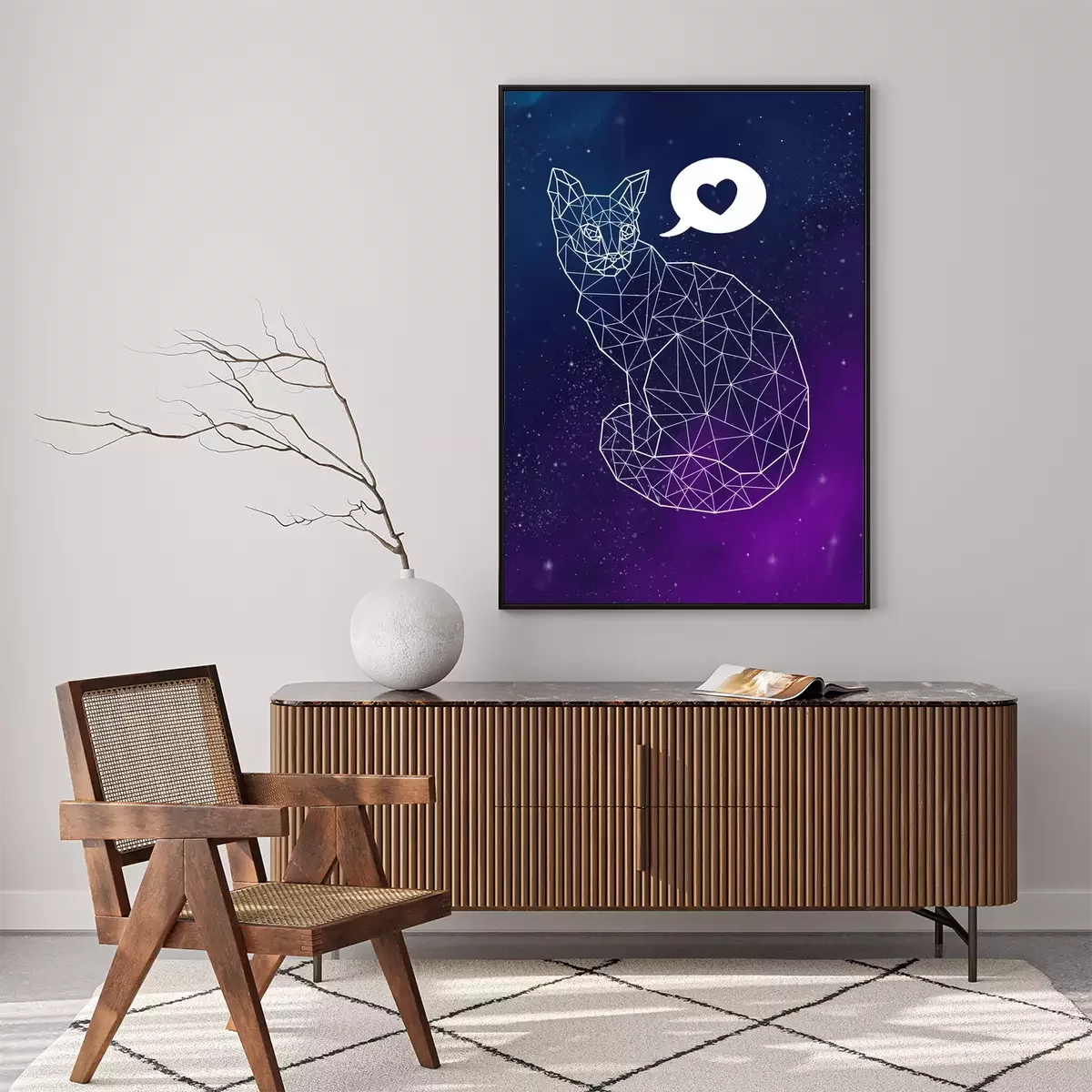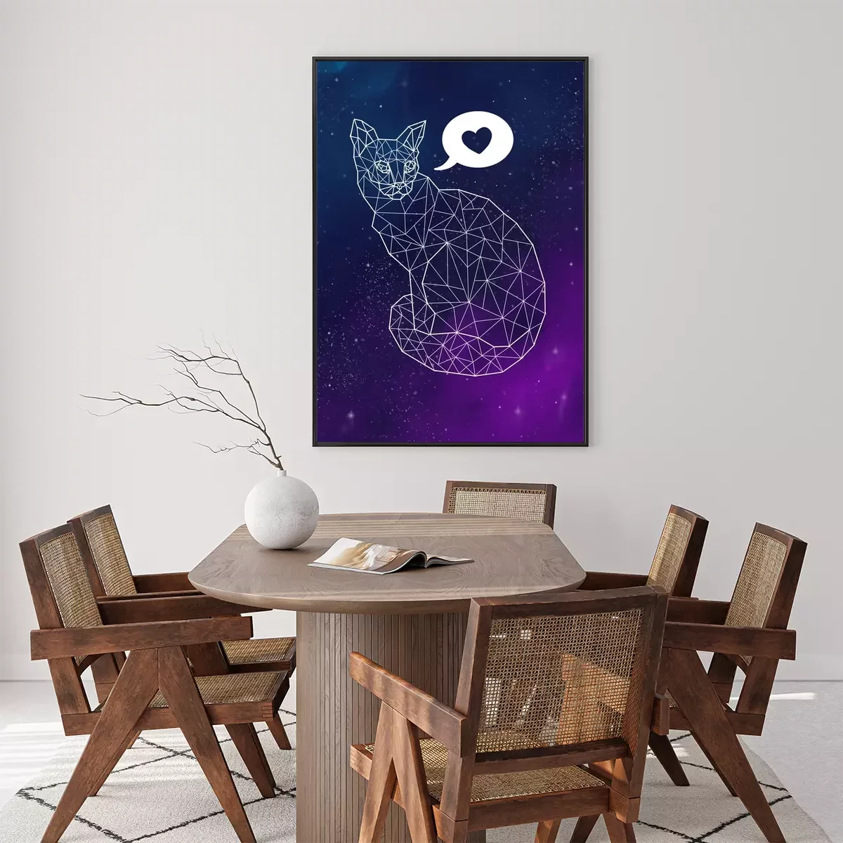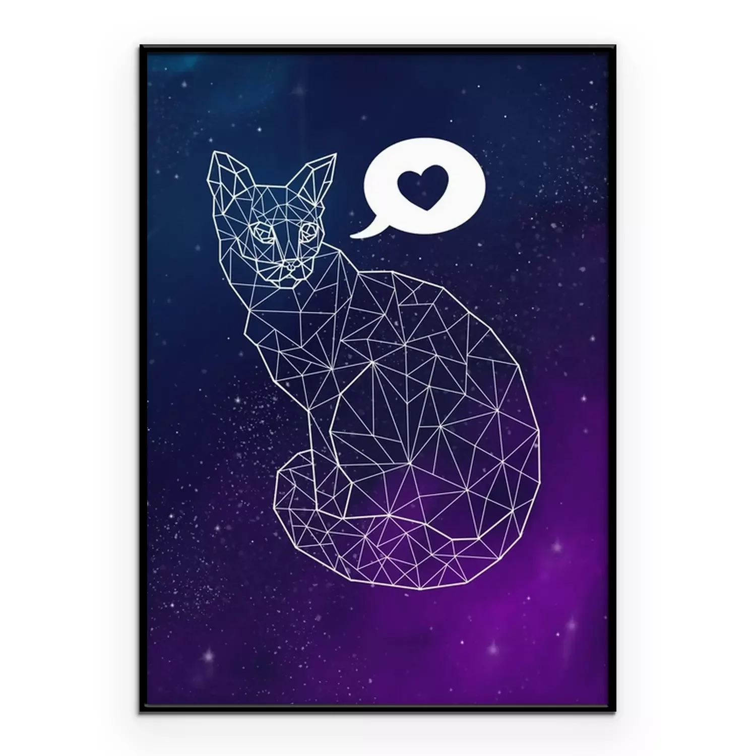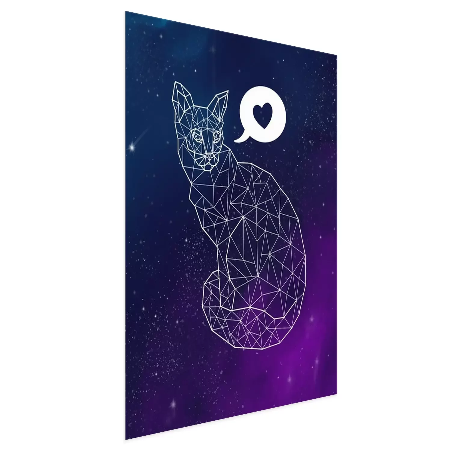 Poster: Geometrische Katze auf dem Hintergrund der Galaxie