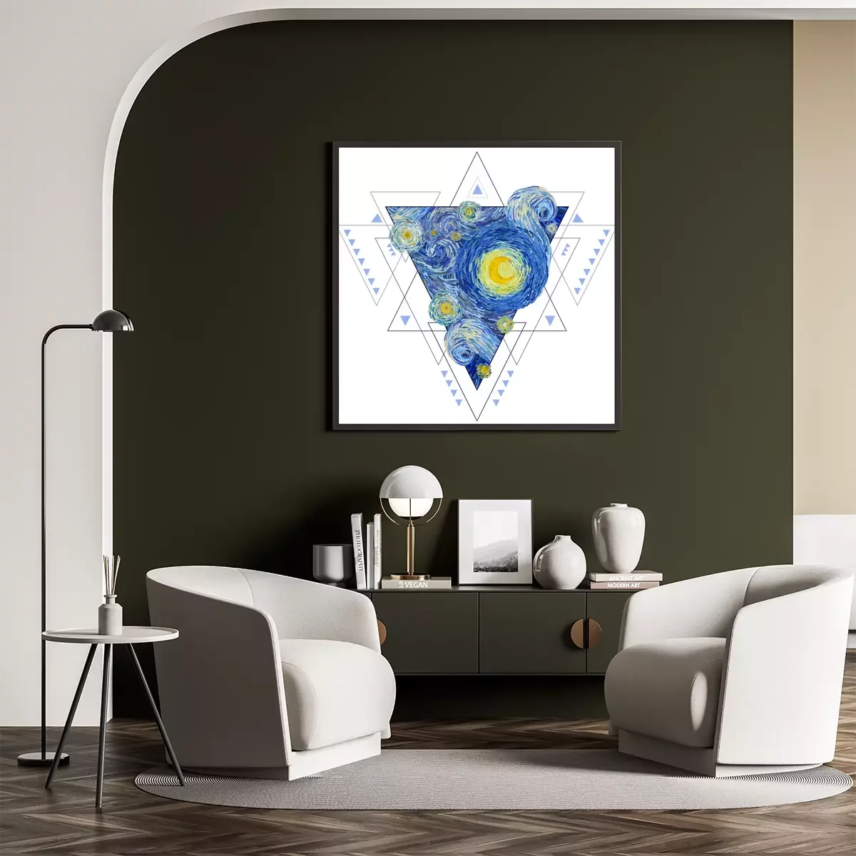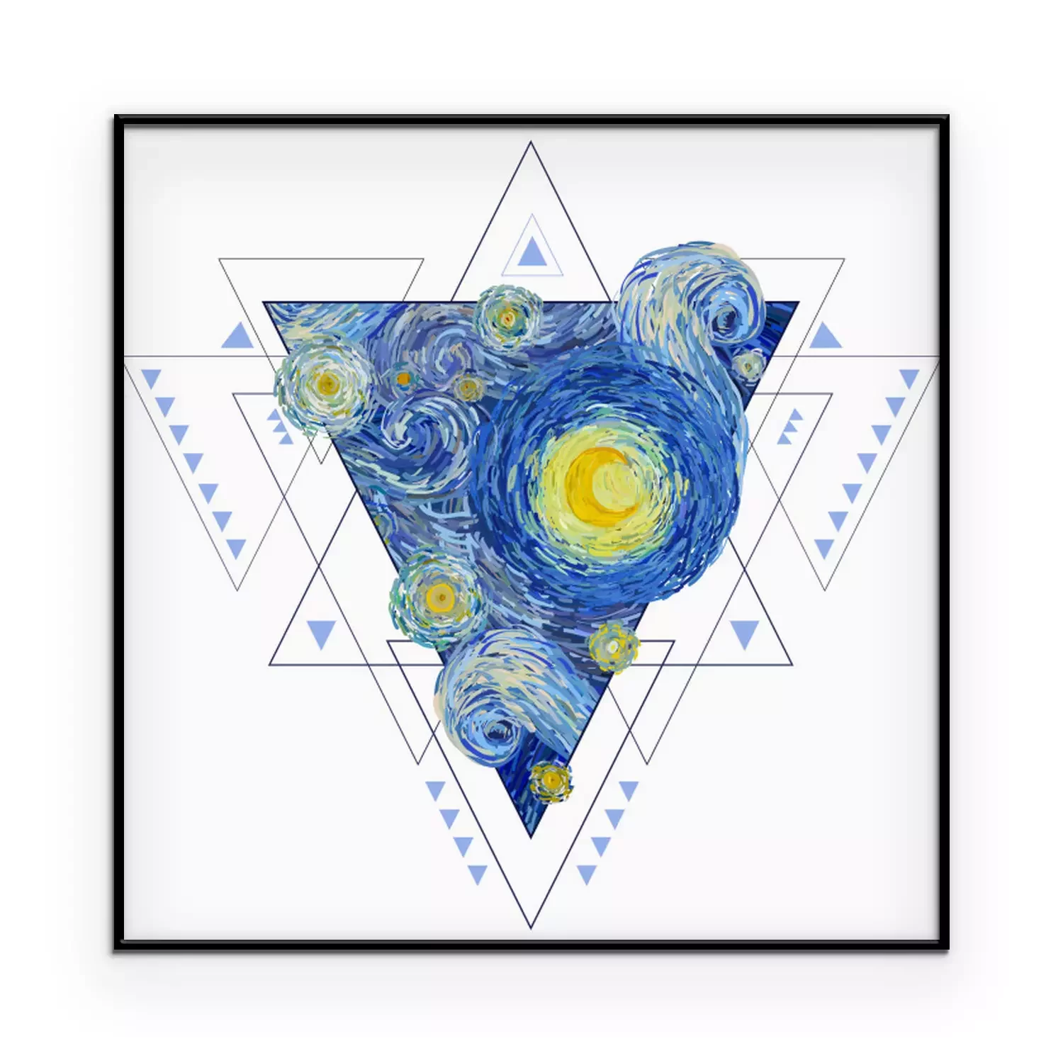 Poster: Geometrische Komposition mit Himmel im van Gogh-Stil