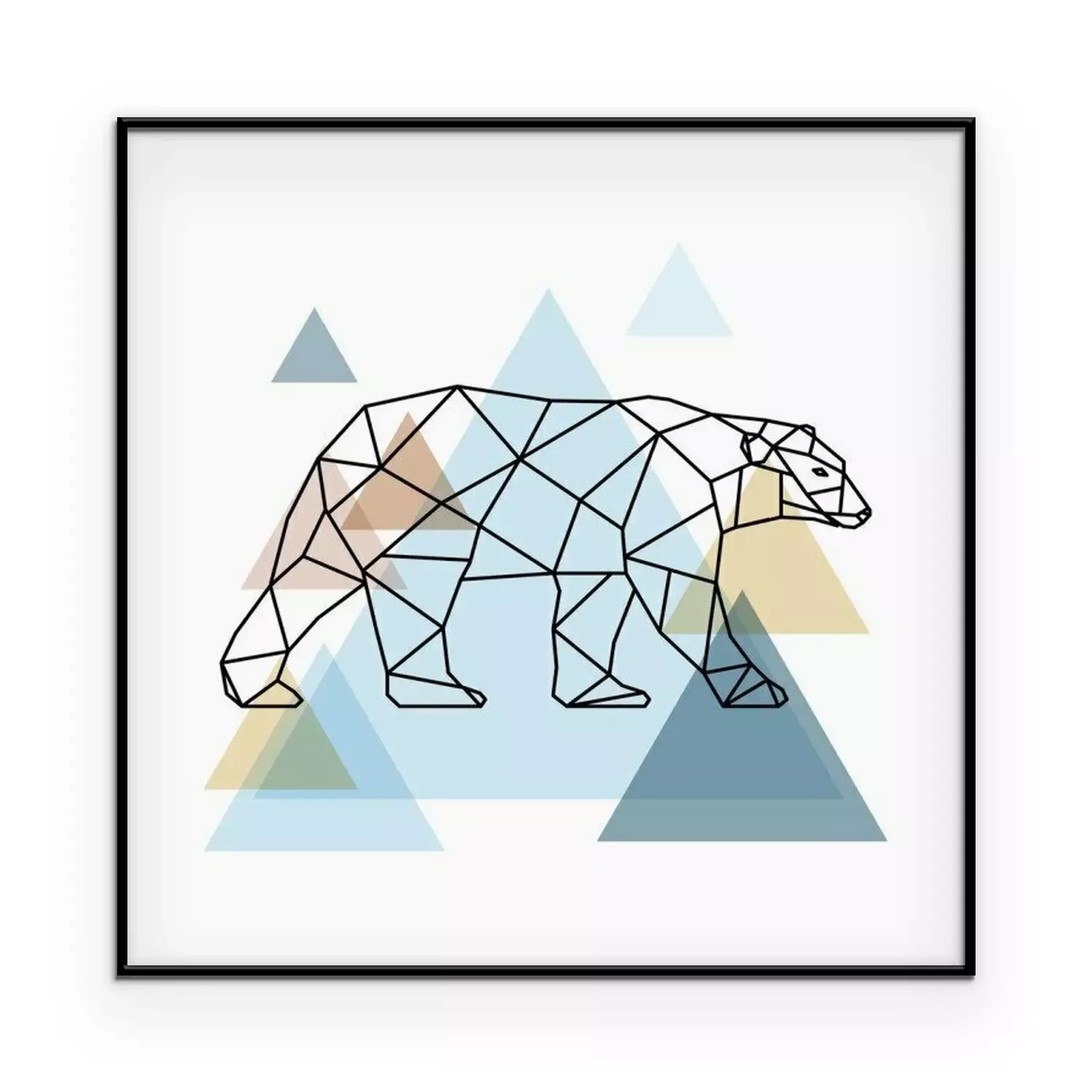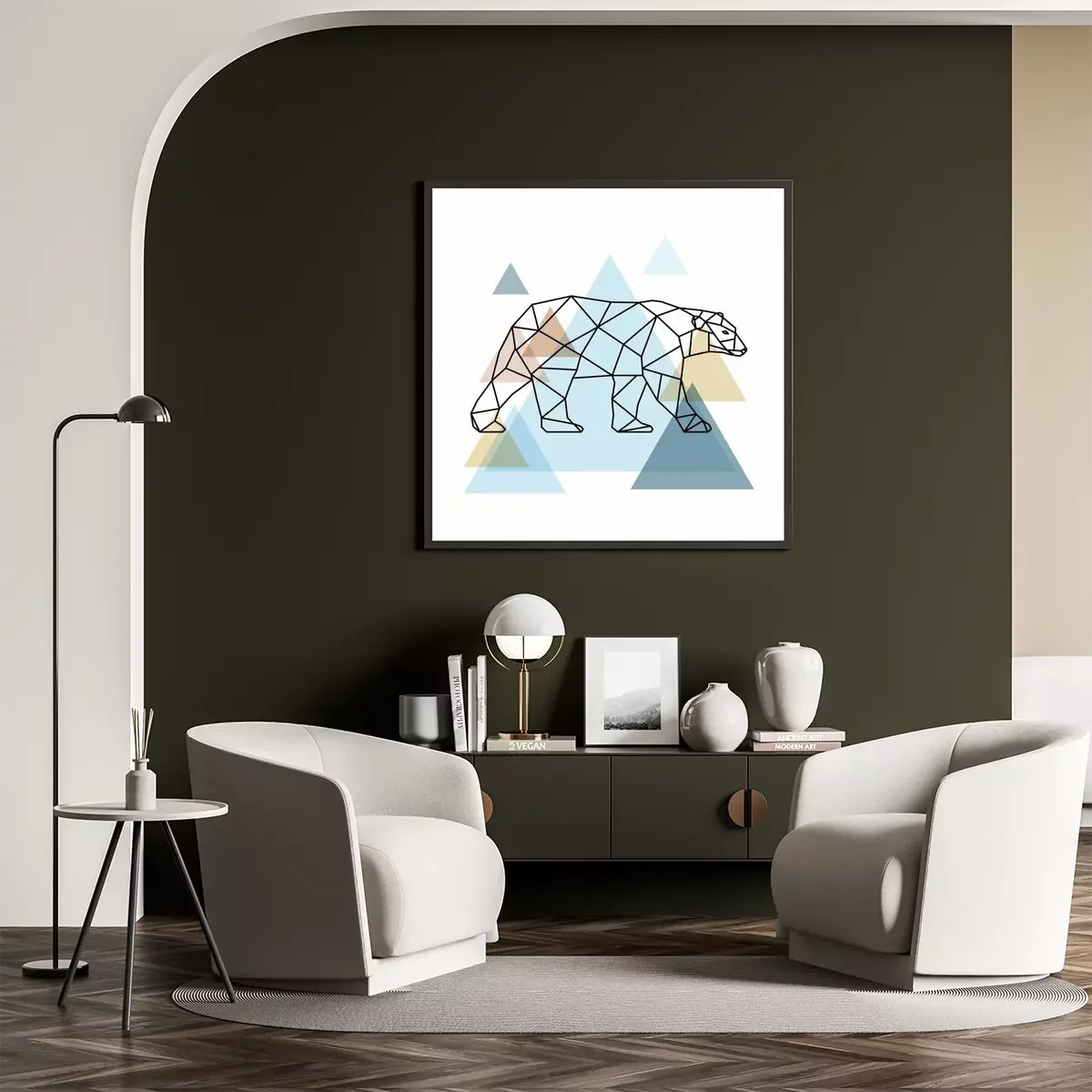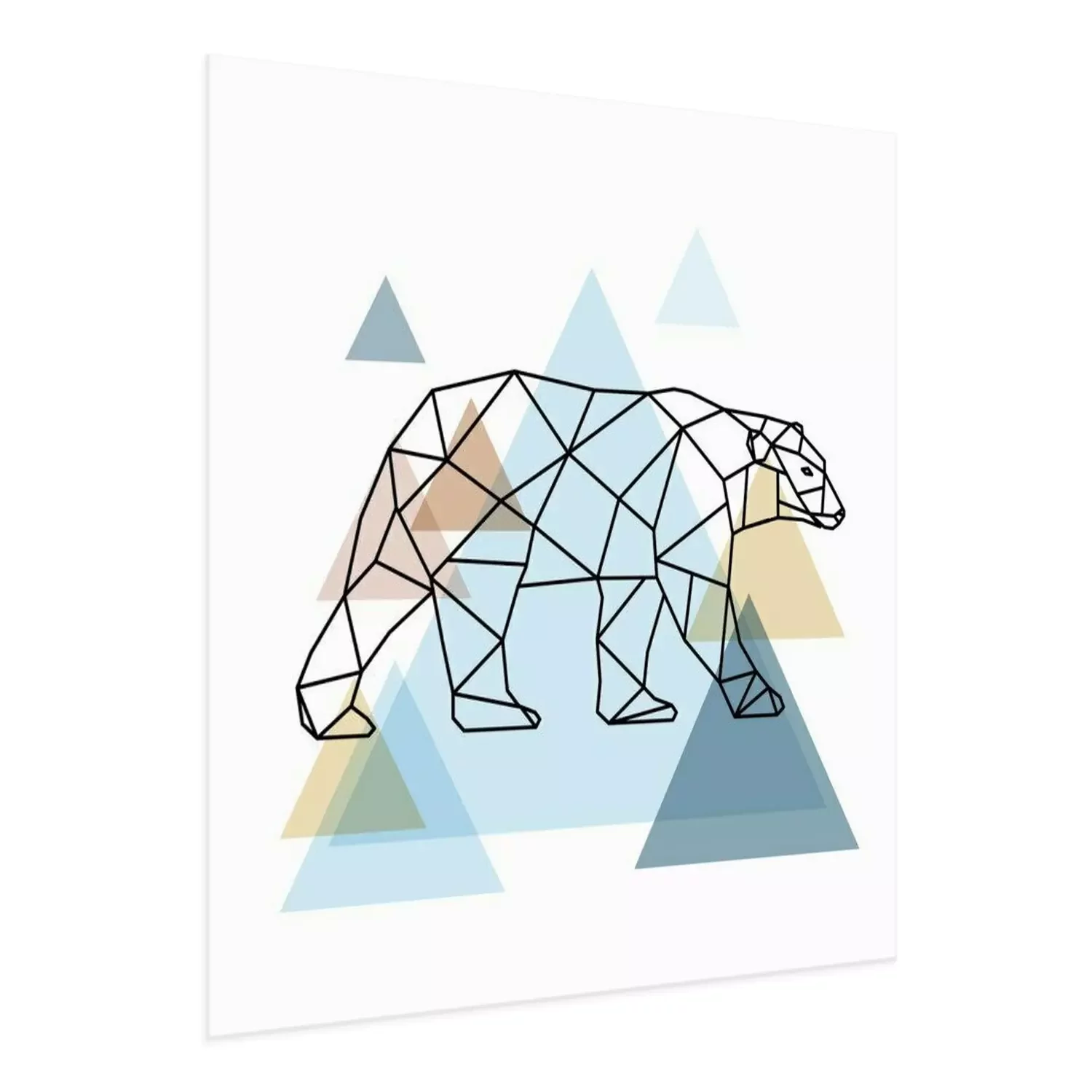Poster Geometrischer Bär vor dem Hintergrund der Dreiecke