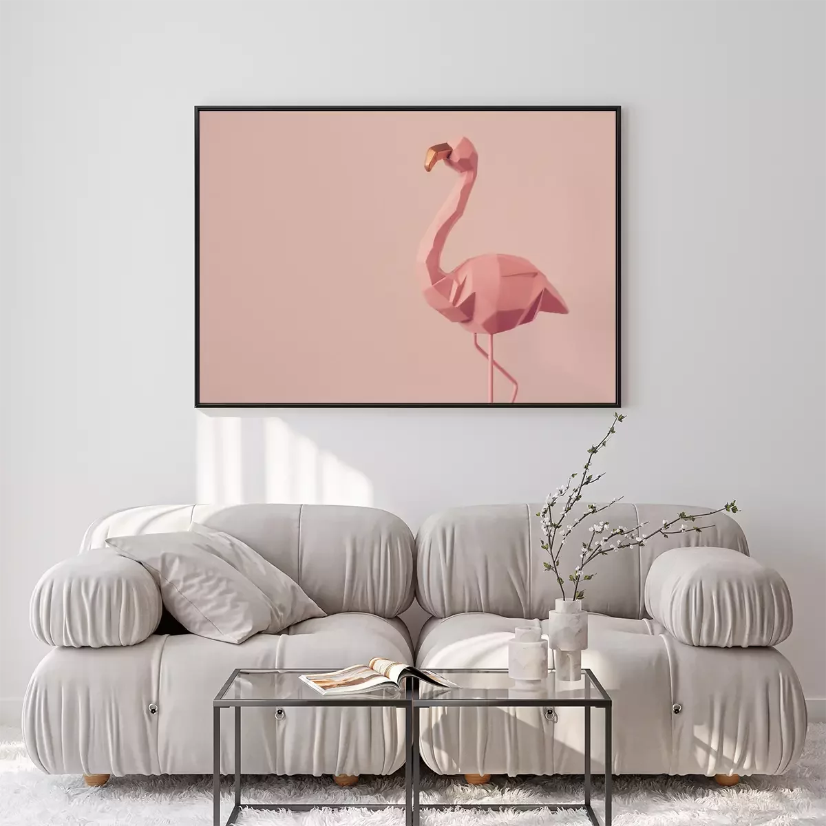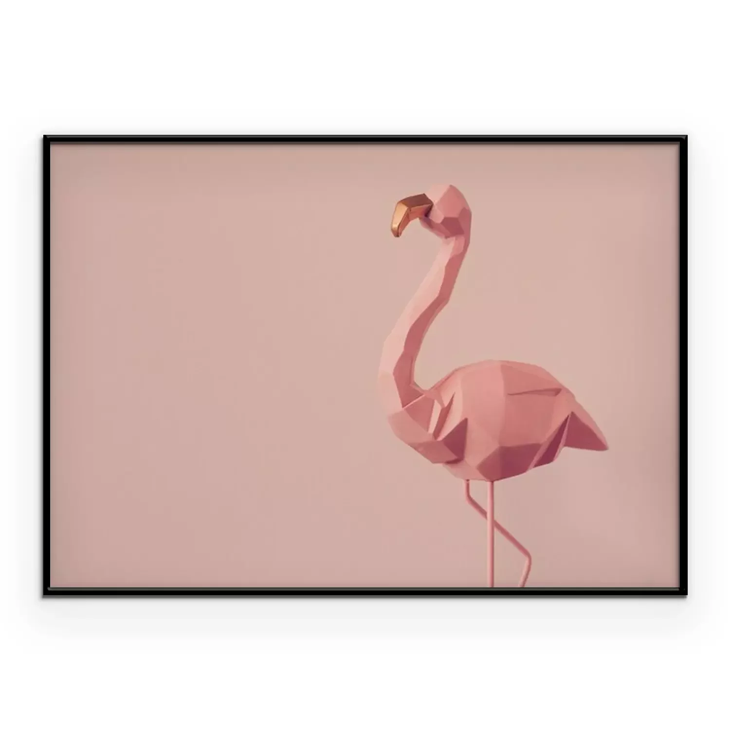 Poster: Geometrischer Flamingo auf rosa Hintergrund